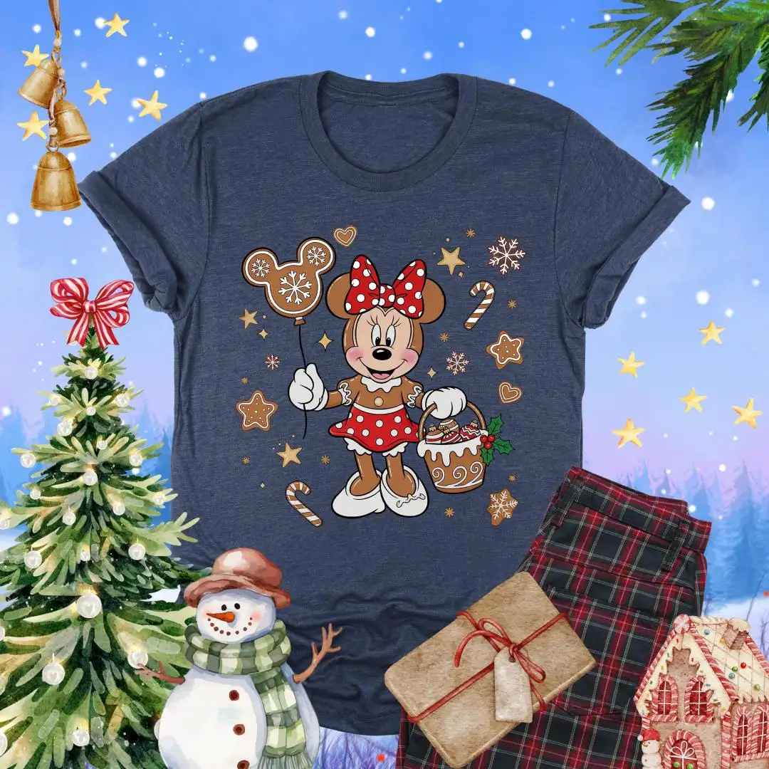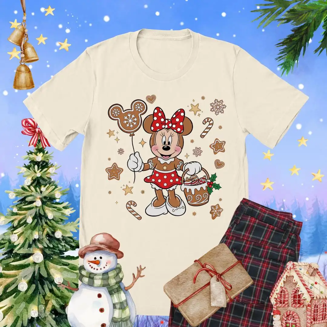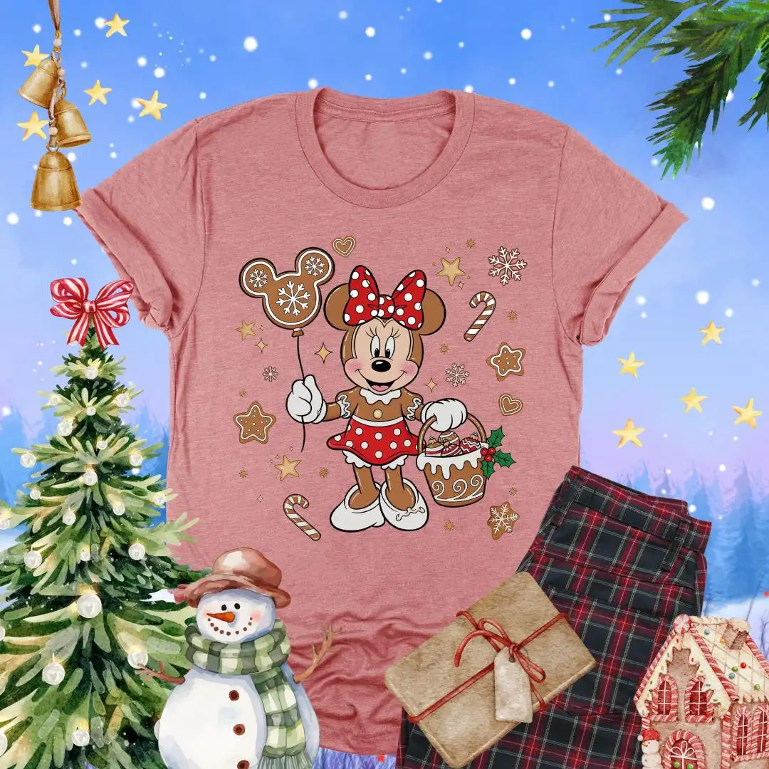 Christmas Minnie Mouse Gingerbread Shirt, Disneyland Tee, Girls Xmas Gift, Disney Holiday Tee, Candy Cane Mickey Balloon Cookie TShirt Women