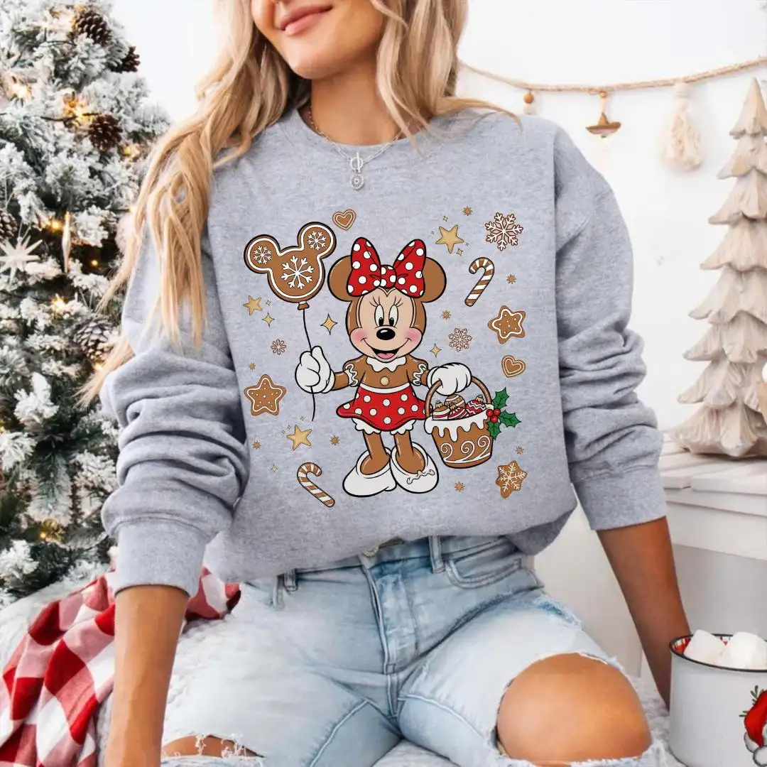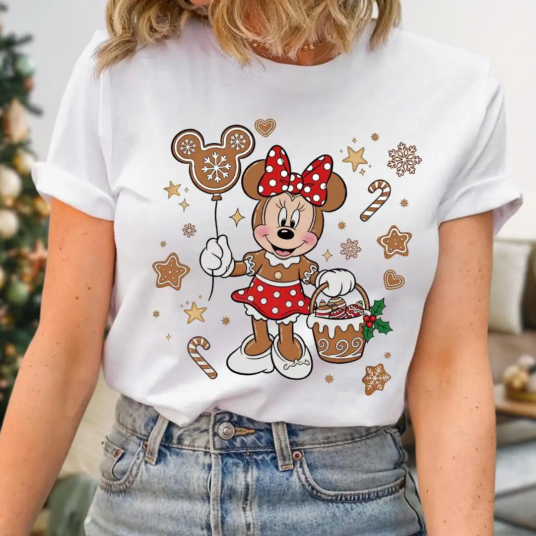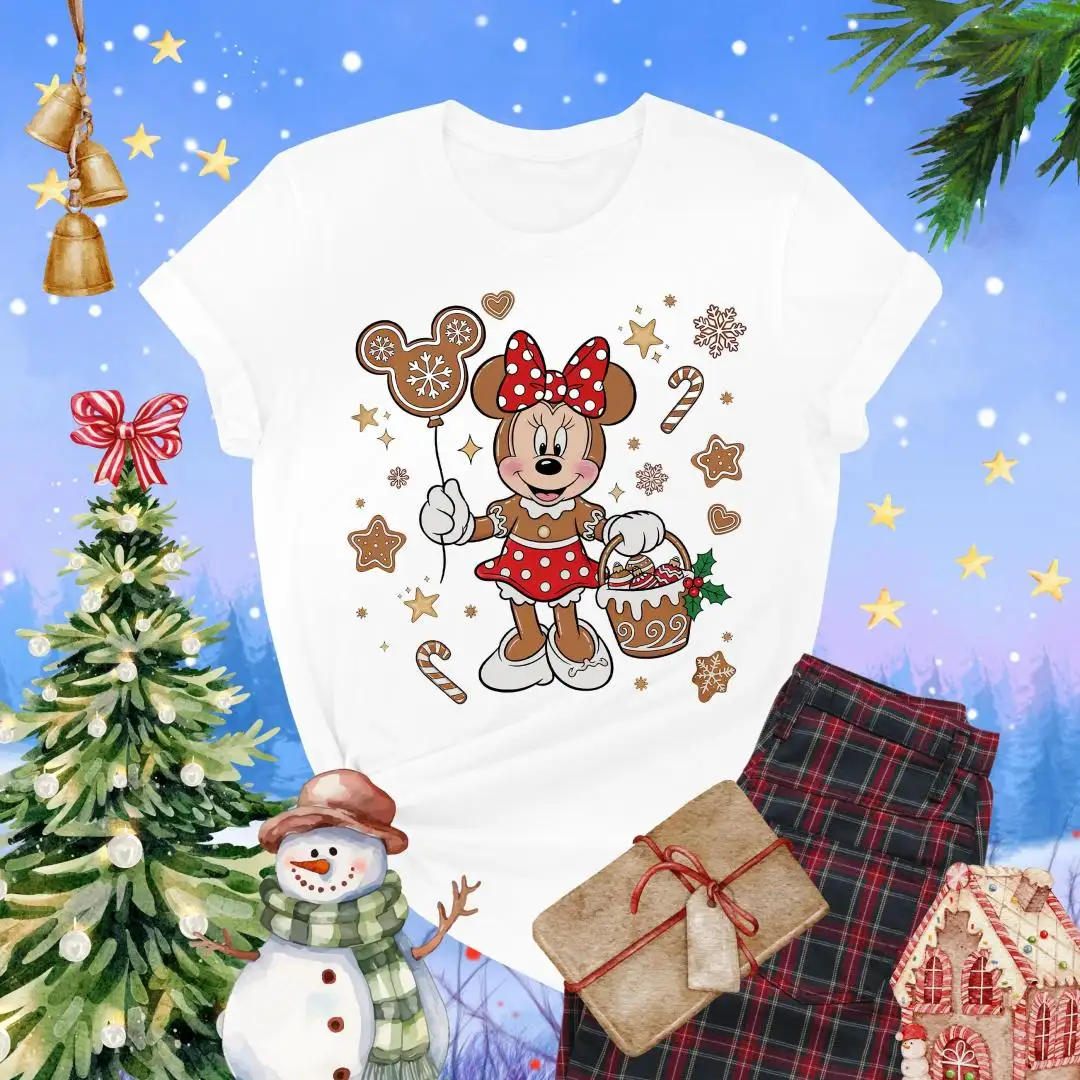 Christmas Minnie Mouse Gingerbread Shirt, Disneyland Tee, Girls Xmas Gift, Disney Holiday Tee, Candy Cane Mickey Balloon Cookie TShirt Women
