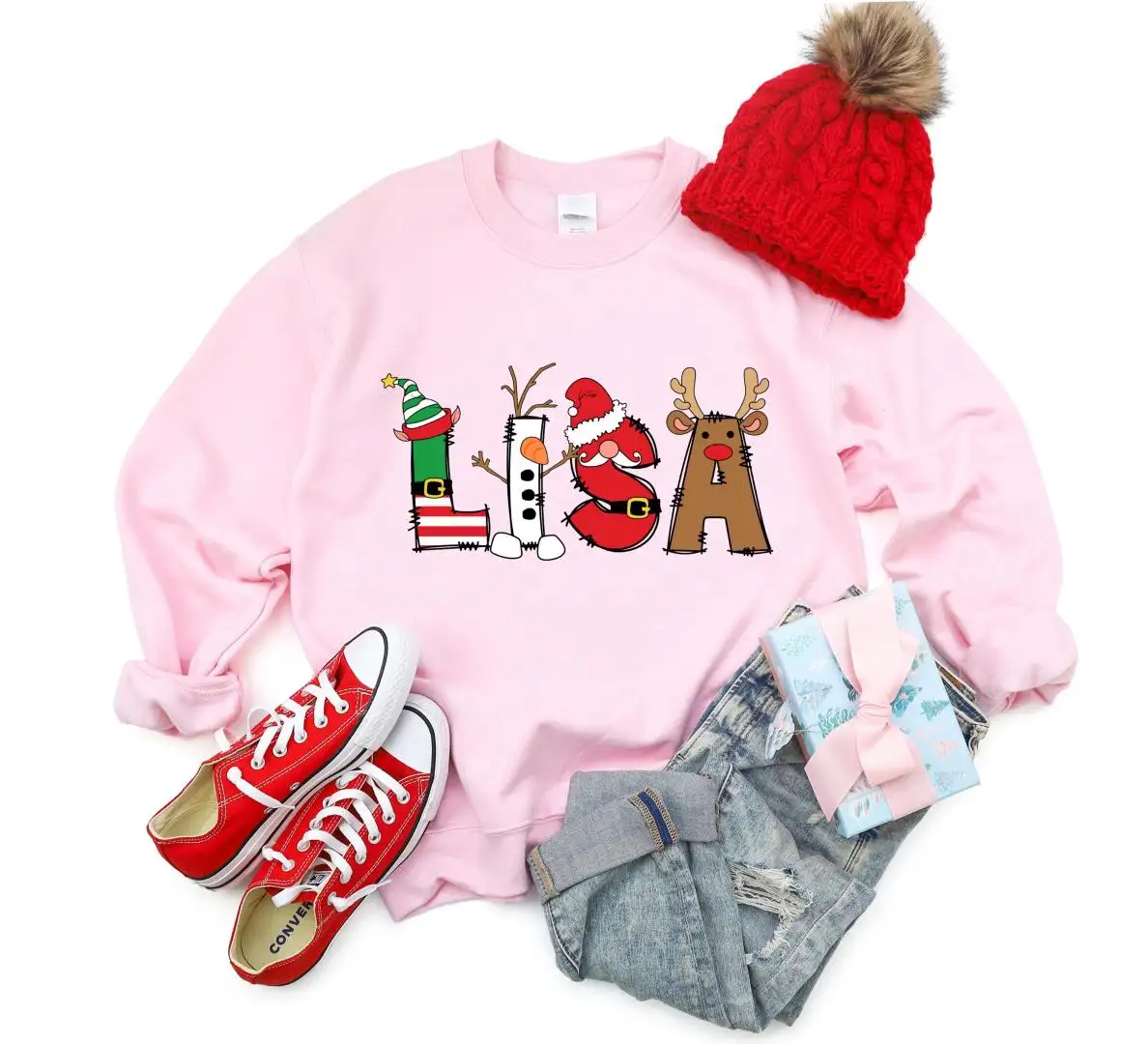 Christmas Name T-shirt, Christmas Mama Dada Sweatshirt, Custom Family Xmas Matching Tee, Personalized Christmas Party Gift
