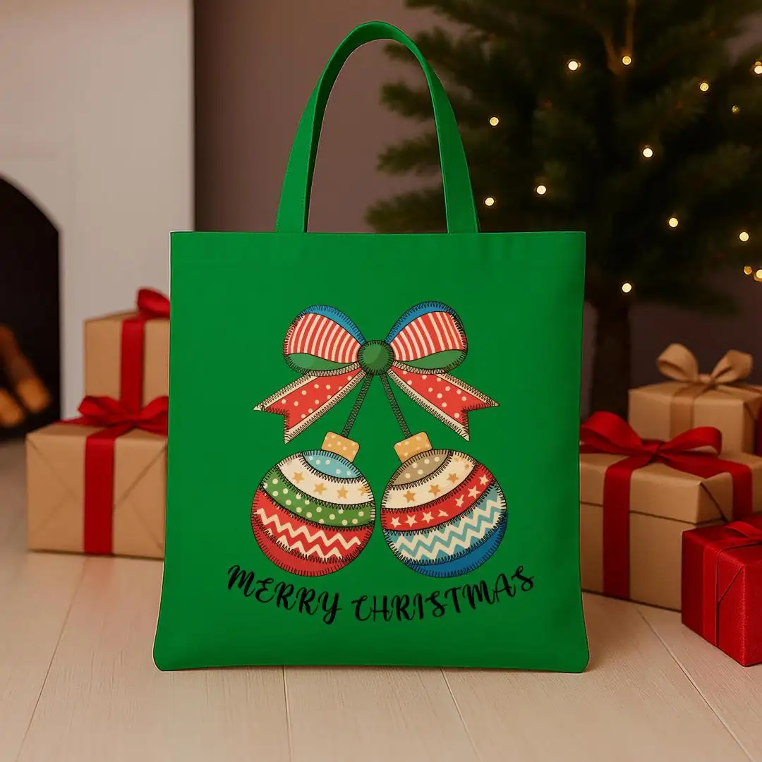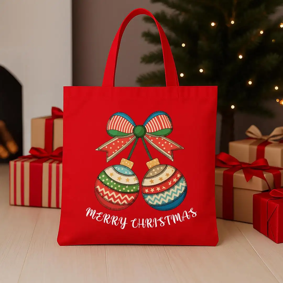Review Christmas Patchwork Tote Bag, XMAS Gift Tote, Merry Christmas Totes, Christmas Canvas Tote, Winter Season Present Tote