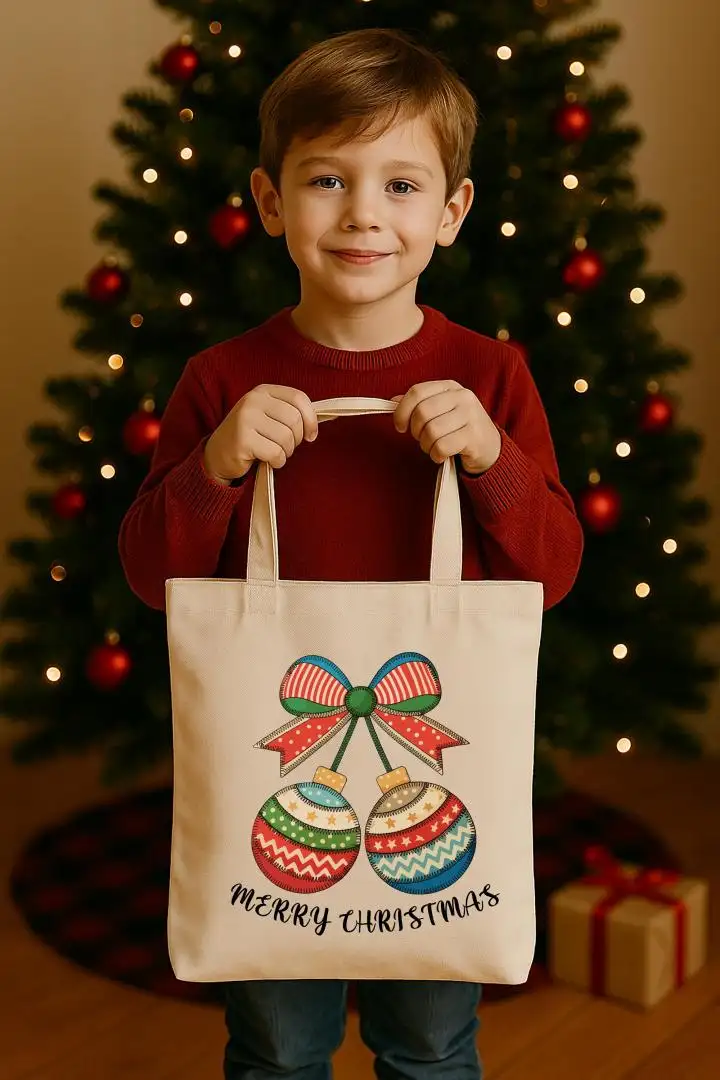 Christmas Patchwork Tote Bag, XMAS Gift Tote, Merry Christmas Totes, Christmas Canvas Tote, Winter Season Present Tote