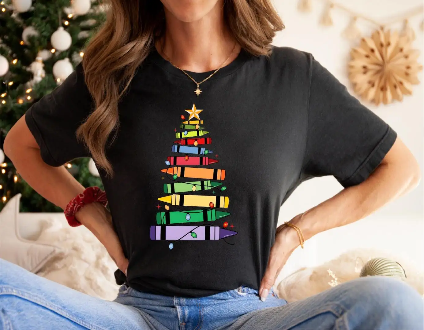 Christmas Pencil Tree Shirt, Teacher Xmas Holiday Sweater, Teacher Christmas T-Shirts, Christmas Lights Tee, Merry Christmas 2025 Gift