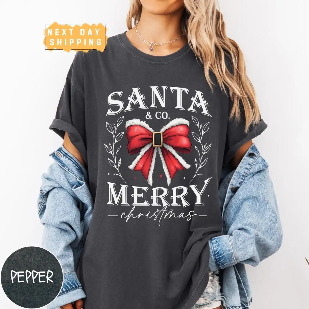 Christmas Santa Holiday Shirt with Festive Red Bow Design