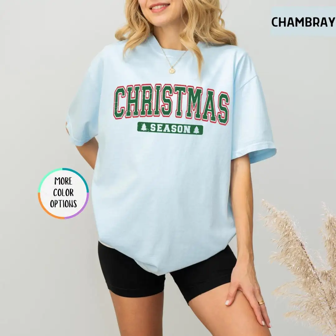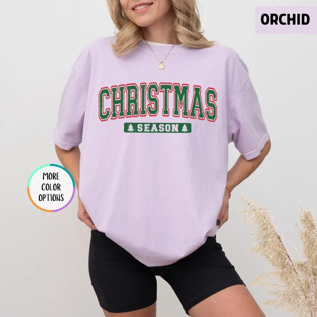Christmas Season Comfort Colors Shirt, Holiday Season Shirt, Merry Xmas Tee, Womens Christmas Shirts, Christmas Season Varsity Shirt, Winter