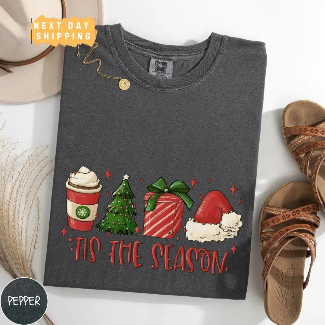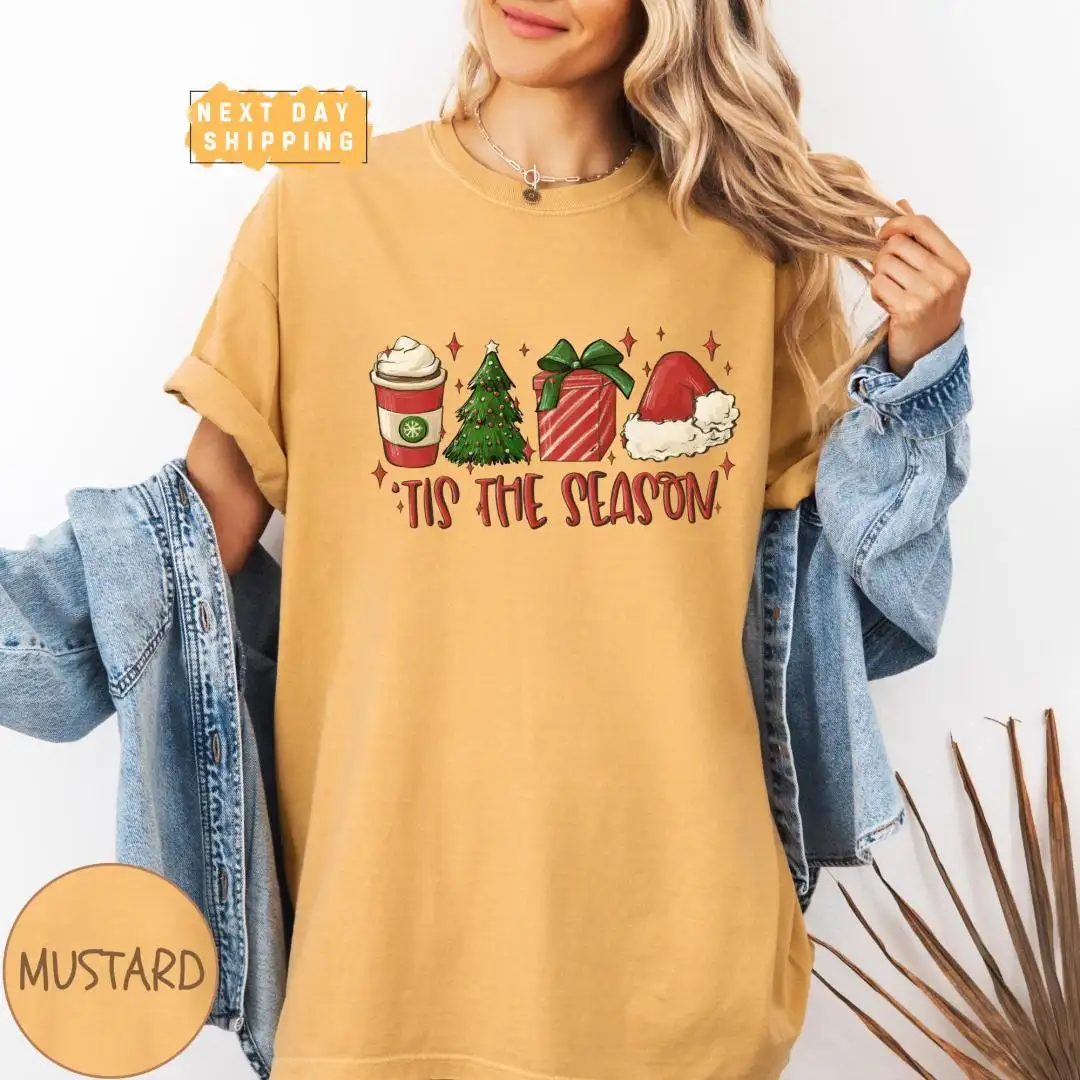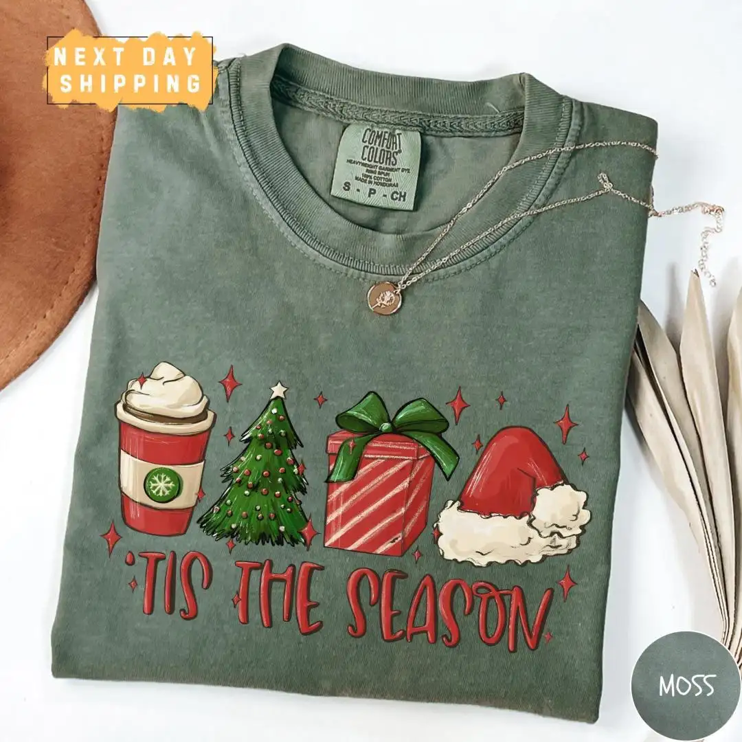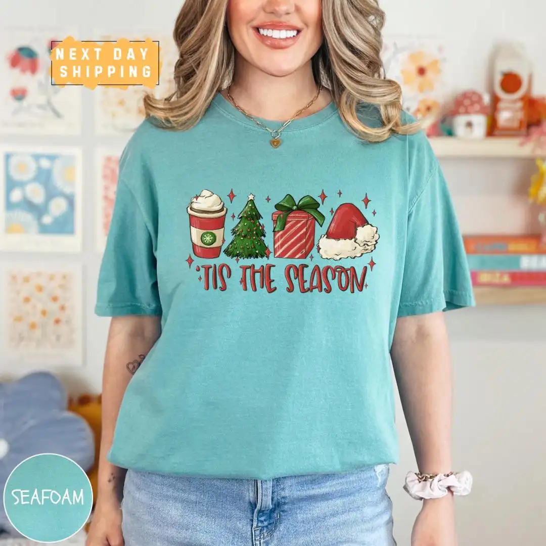 Christmas Shirt for Women with Santa and Tree Holiday Design