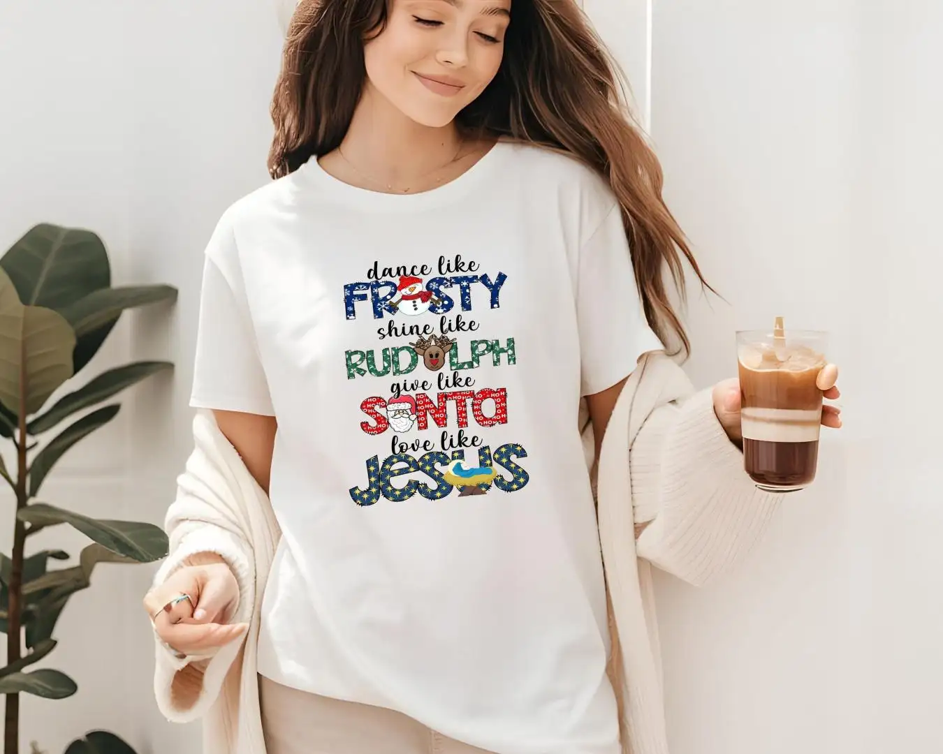 Christmas Snowman Shirt, Love Like Jesus Shirt, Shine Like Rudolph Sweatshirt, Santa Christmas Shirt, Christmas Party Shirts