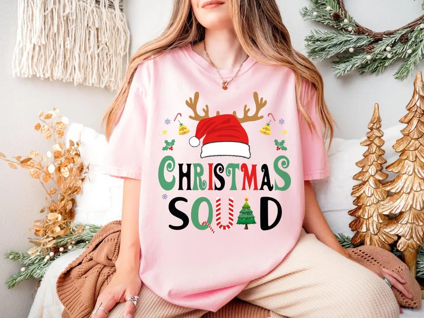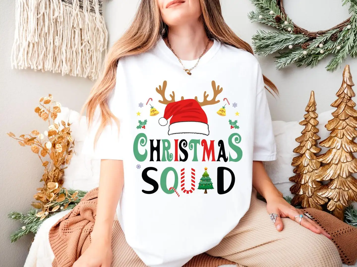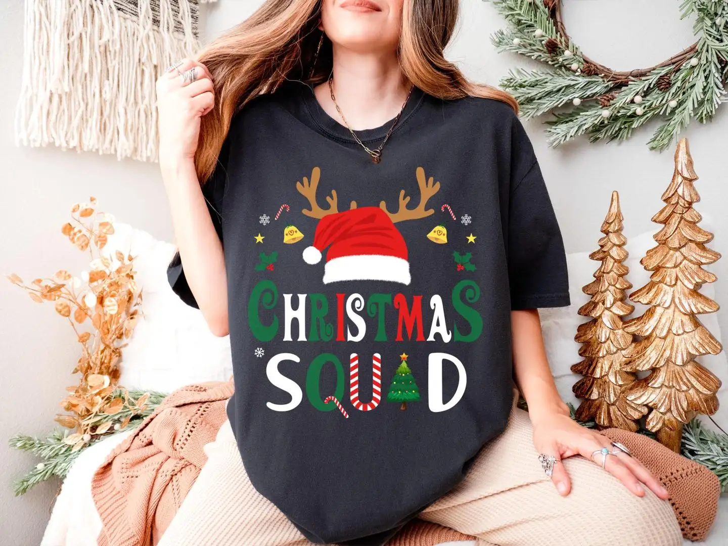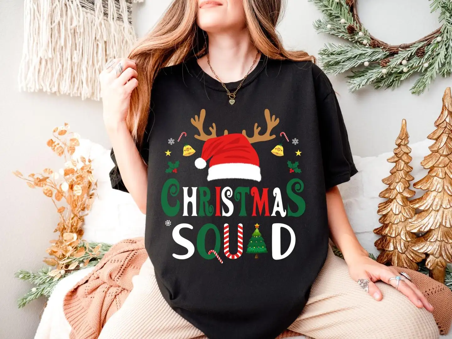 Christmas Squad Shirt, Santa Hat Xmas Party Tee, Christmas Reindeer Sweatshirt, Christmas Tree Holiday Hoodie, Family Christmas Group Shirts