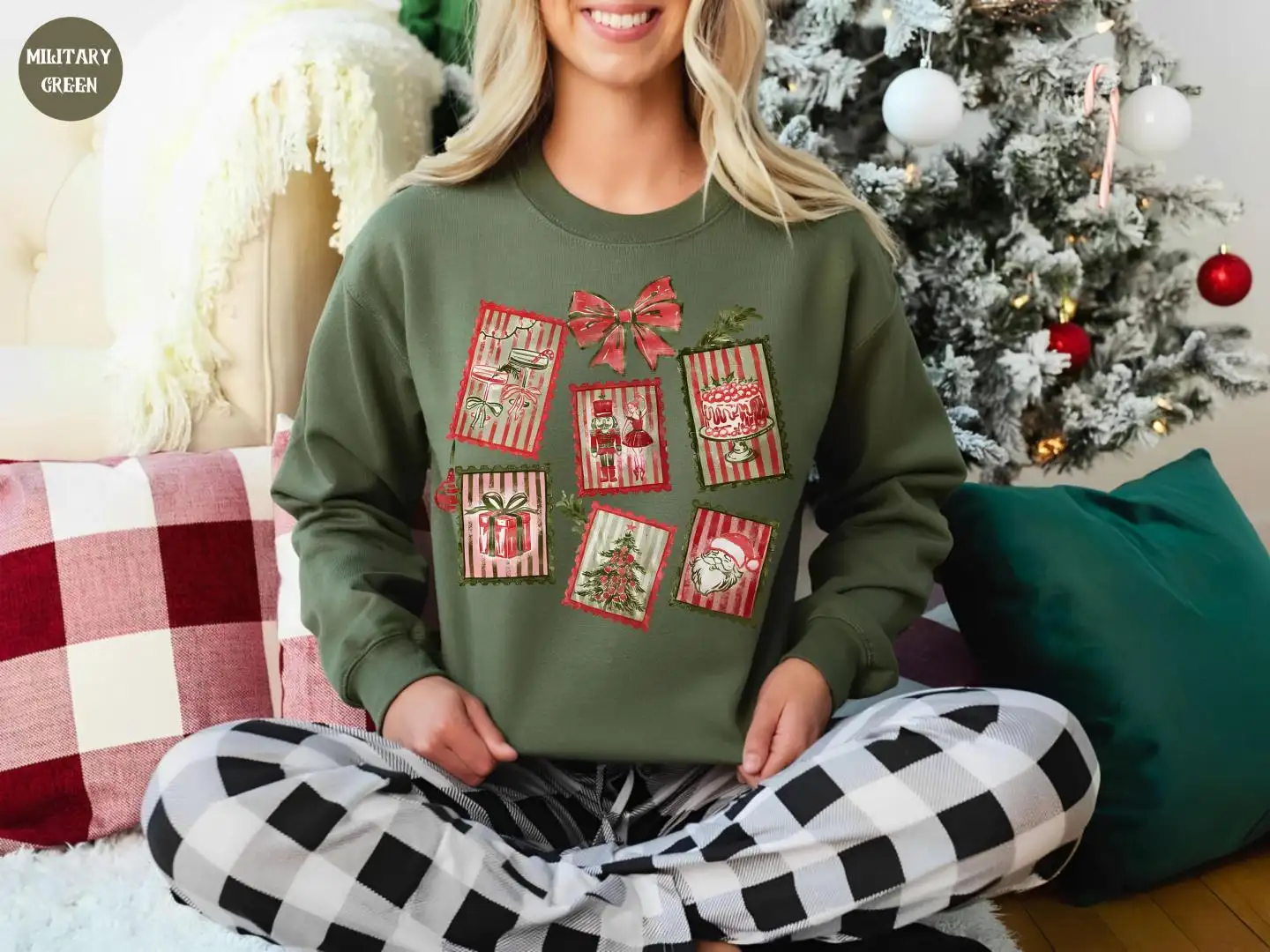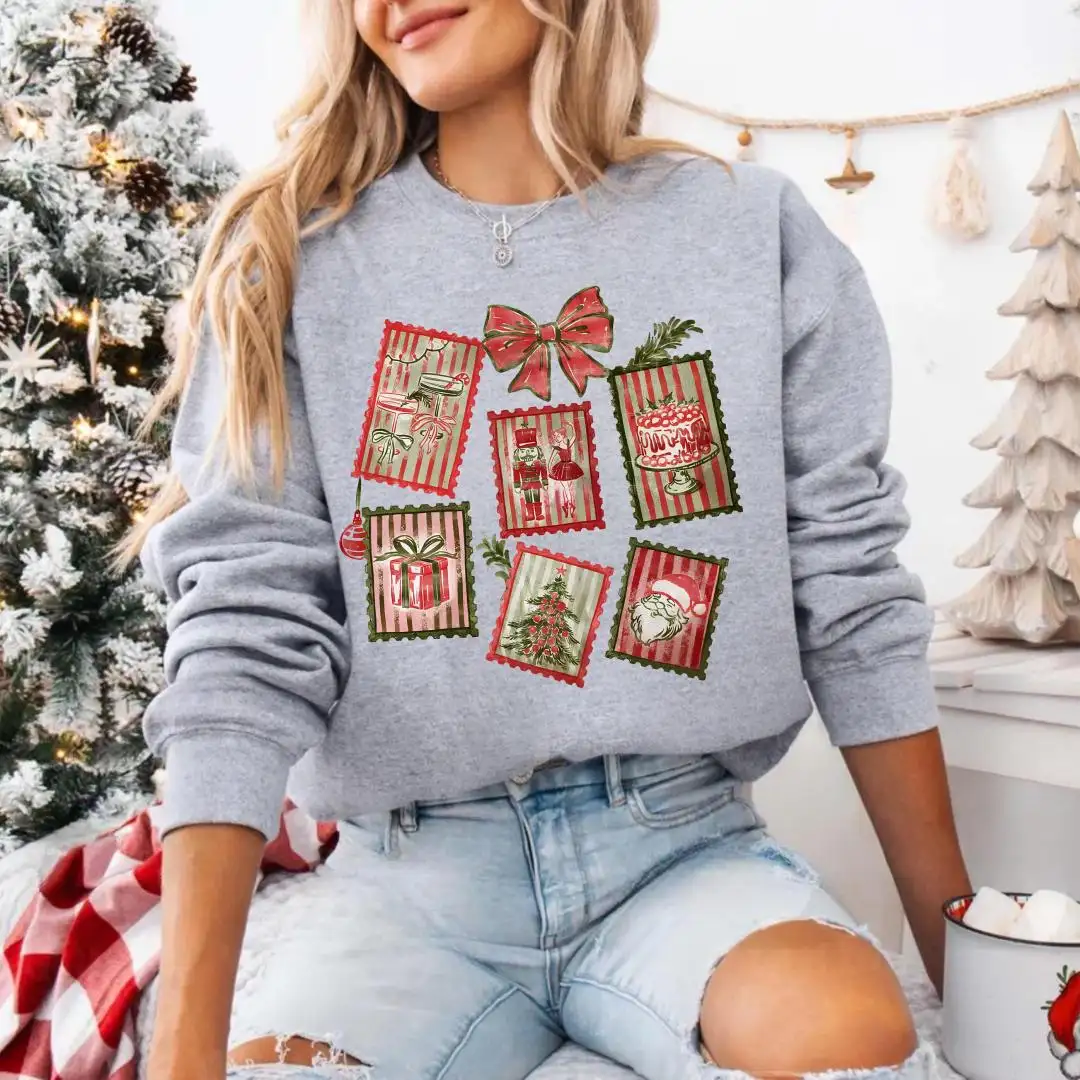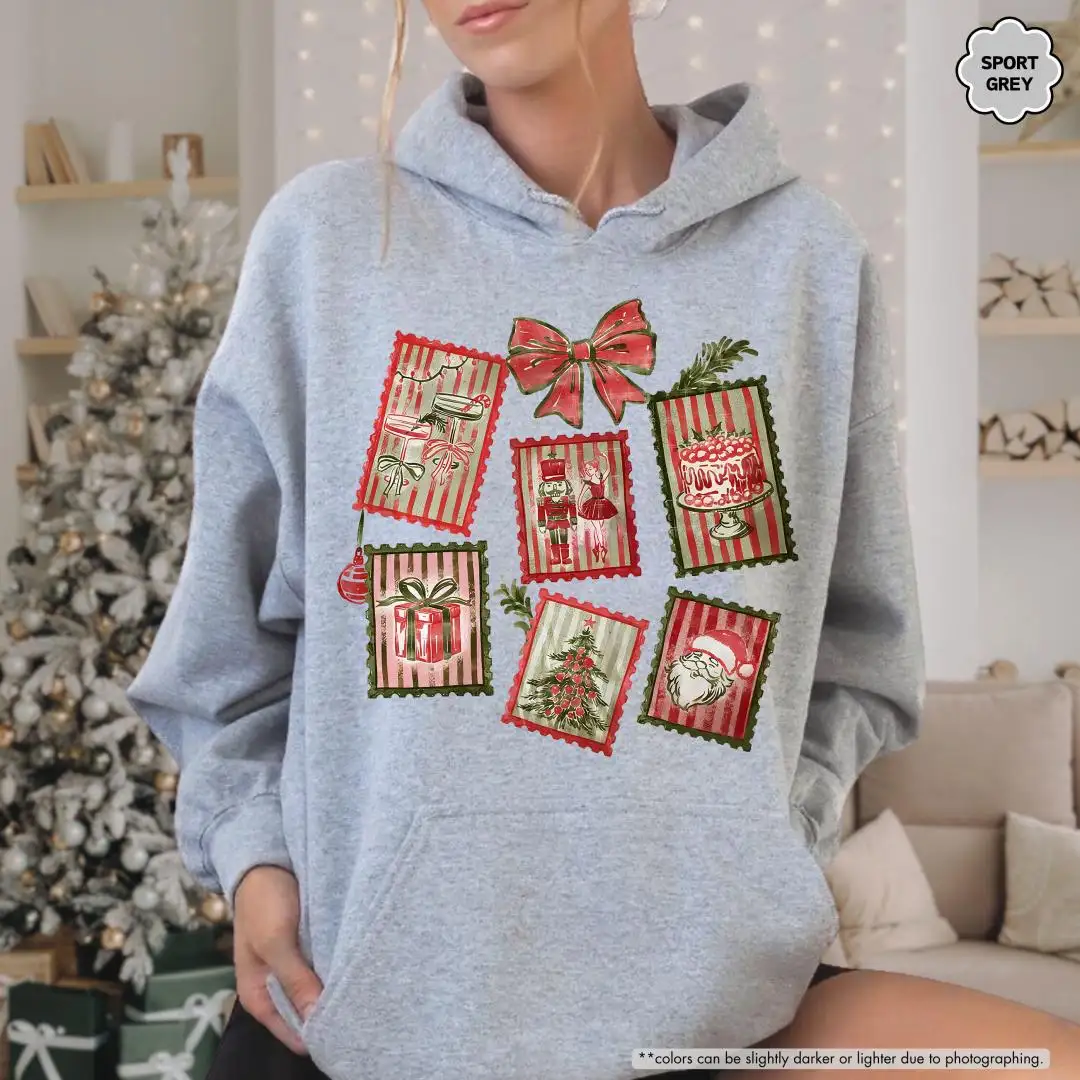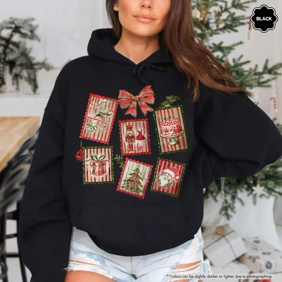 Christmas Stamp Sweatshirt, Cute Festive Winter Graphic, Womens Christmas Gift, Trendy Christmas Hoodie, Holiday Postage Collage Hoodie