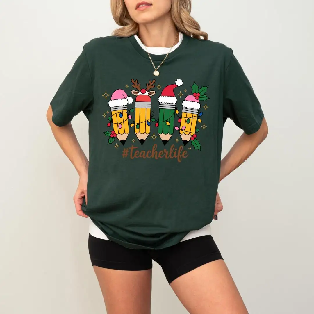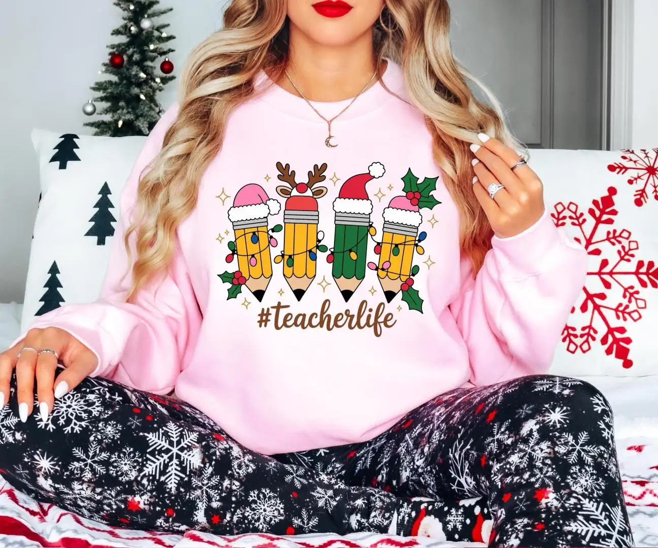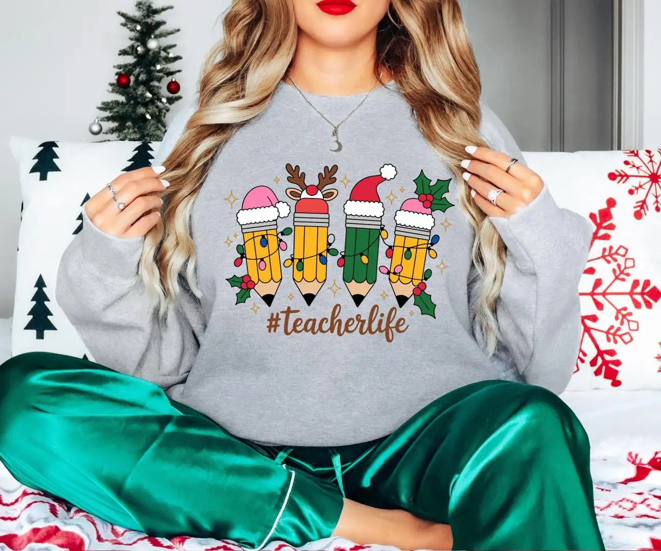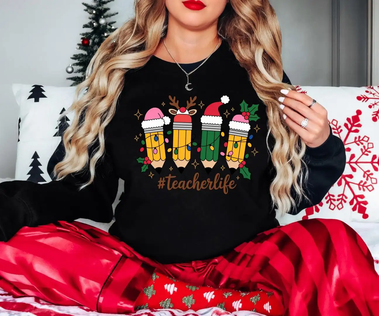 Christmas Teacher Life Shirt, Pencil Teacher Xmas Sweatshirt, Reindeer Matching Teacher Xmas Tee, Christmas School Party Teacher Shirt