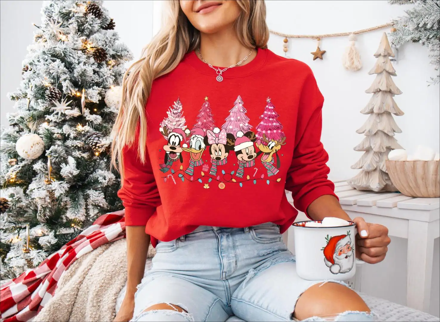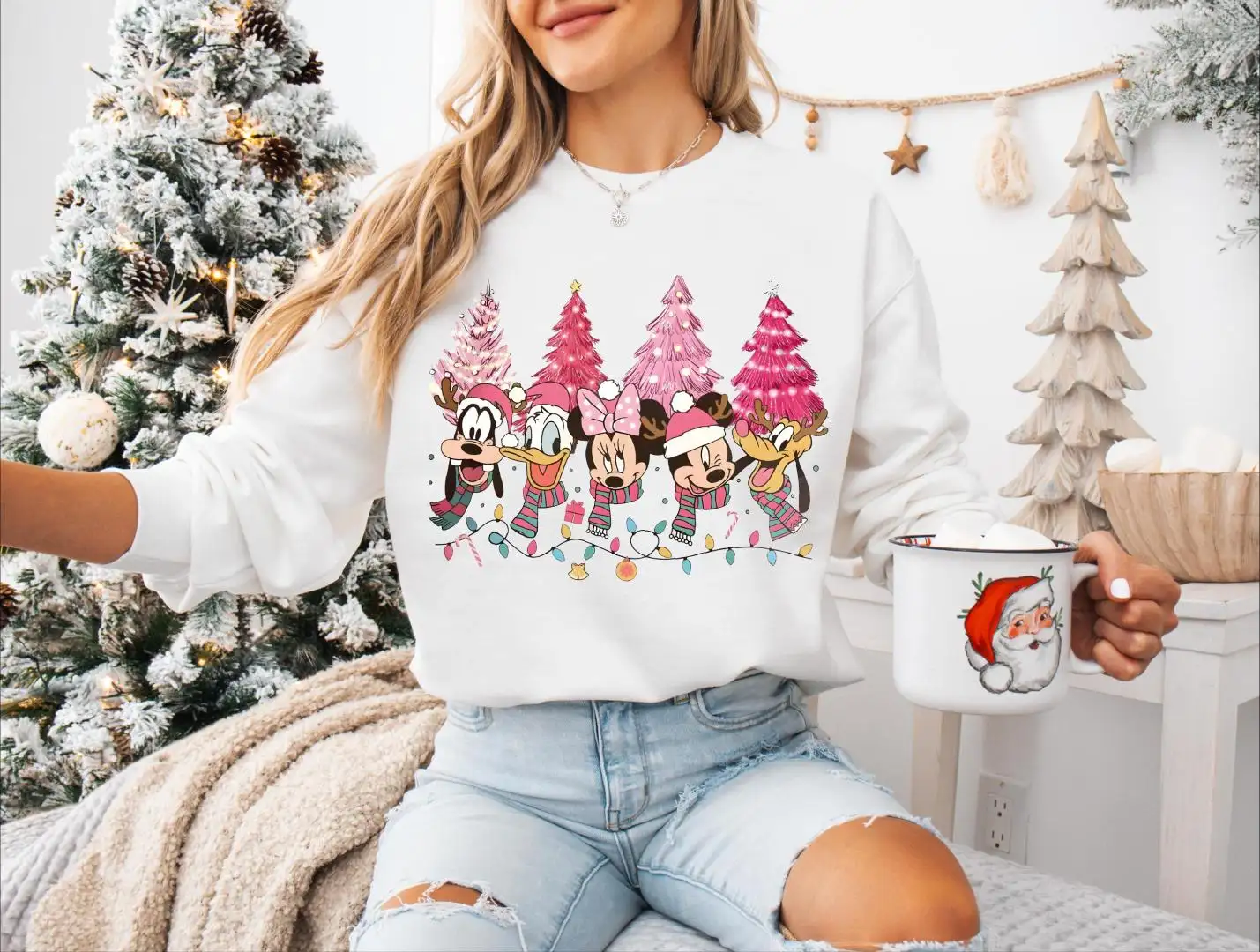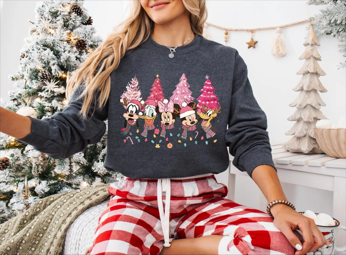 Review Christmas Trees Disney Mickey And Friends Pink Shirt, Holiday Season Tee, Disney Family Vacation Christmas Sweatshirt, Christmas Lights Tee