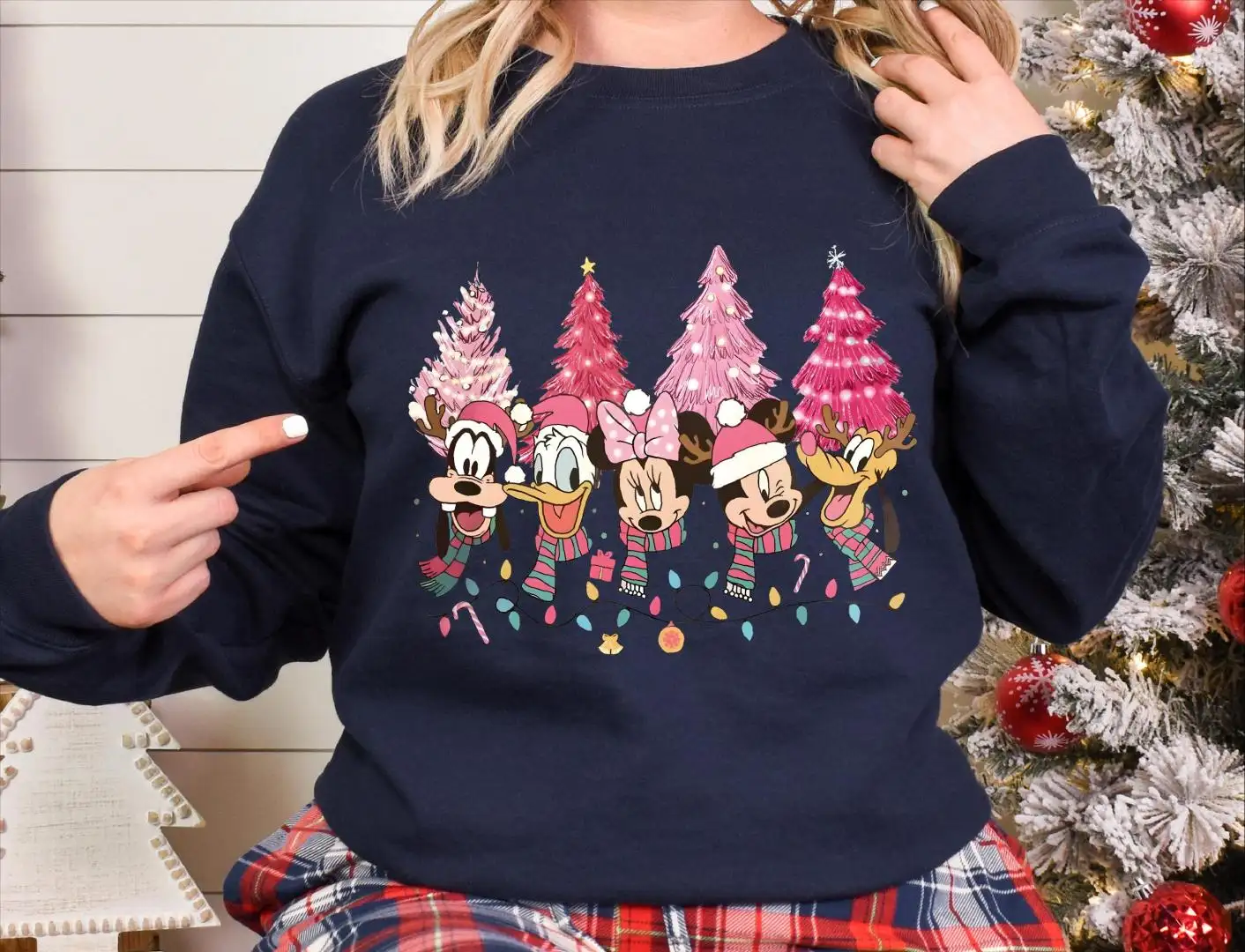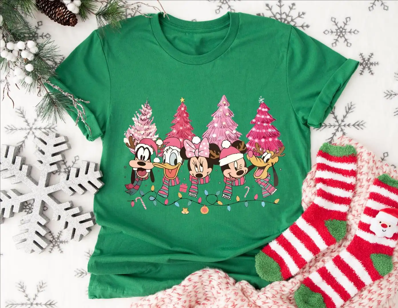 Christmas Trees Disney Mickey And Friends Pink Shirt, Holiday Season Tee, Disney Family Vacation Christmas Sweatshirt, Christmas Lights Tee