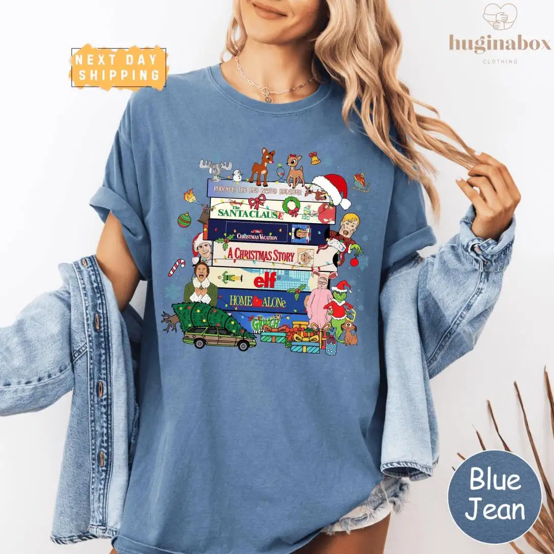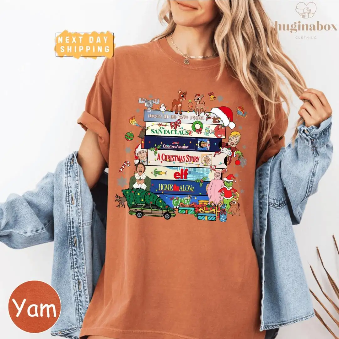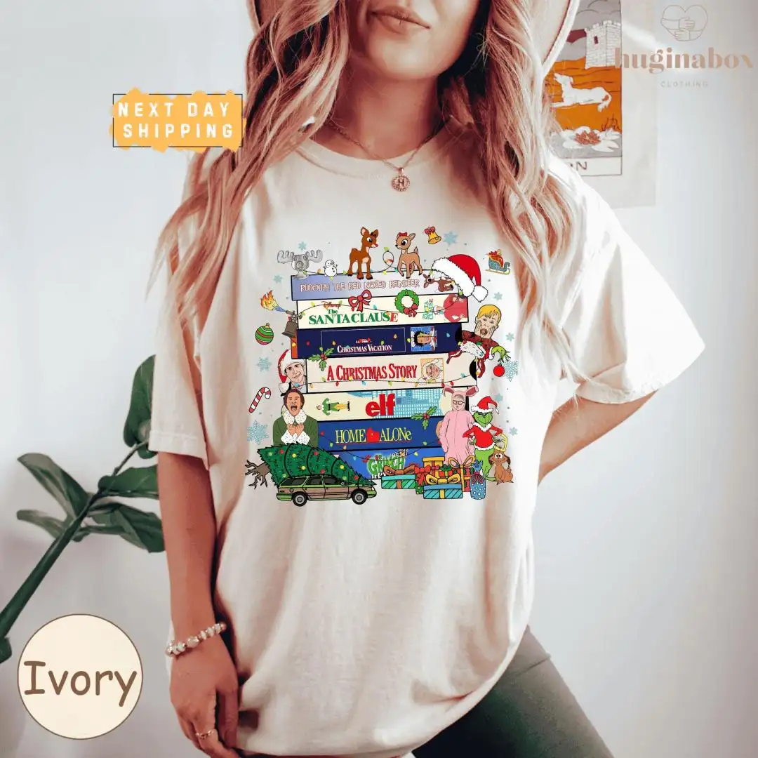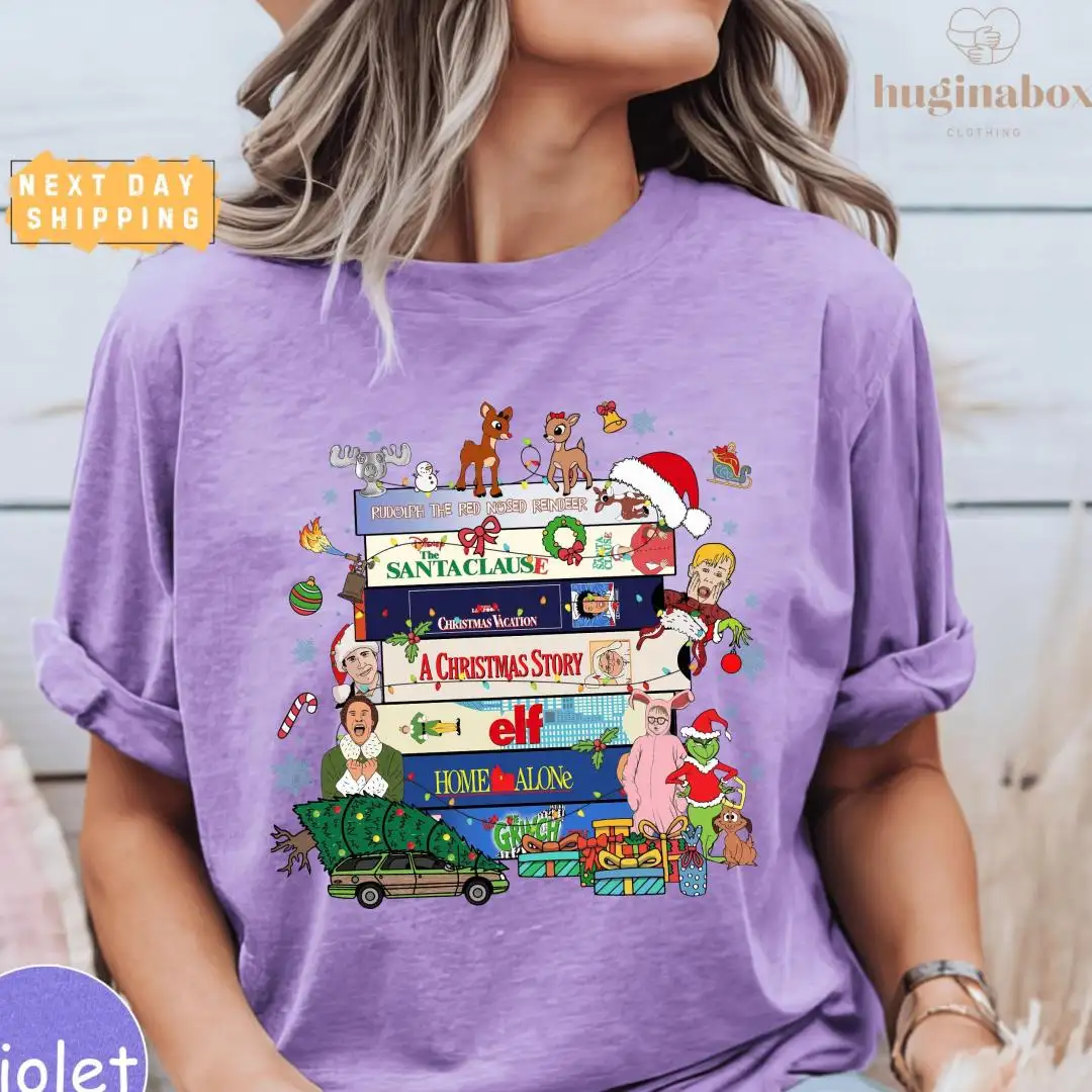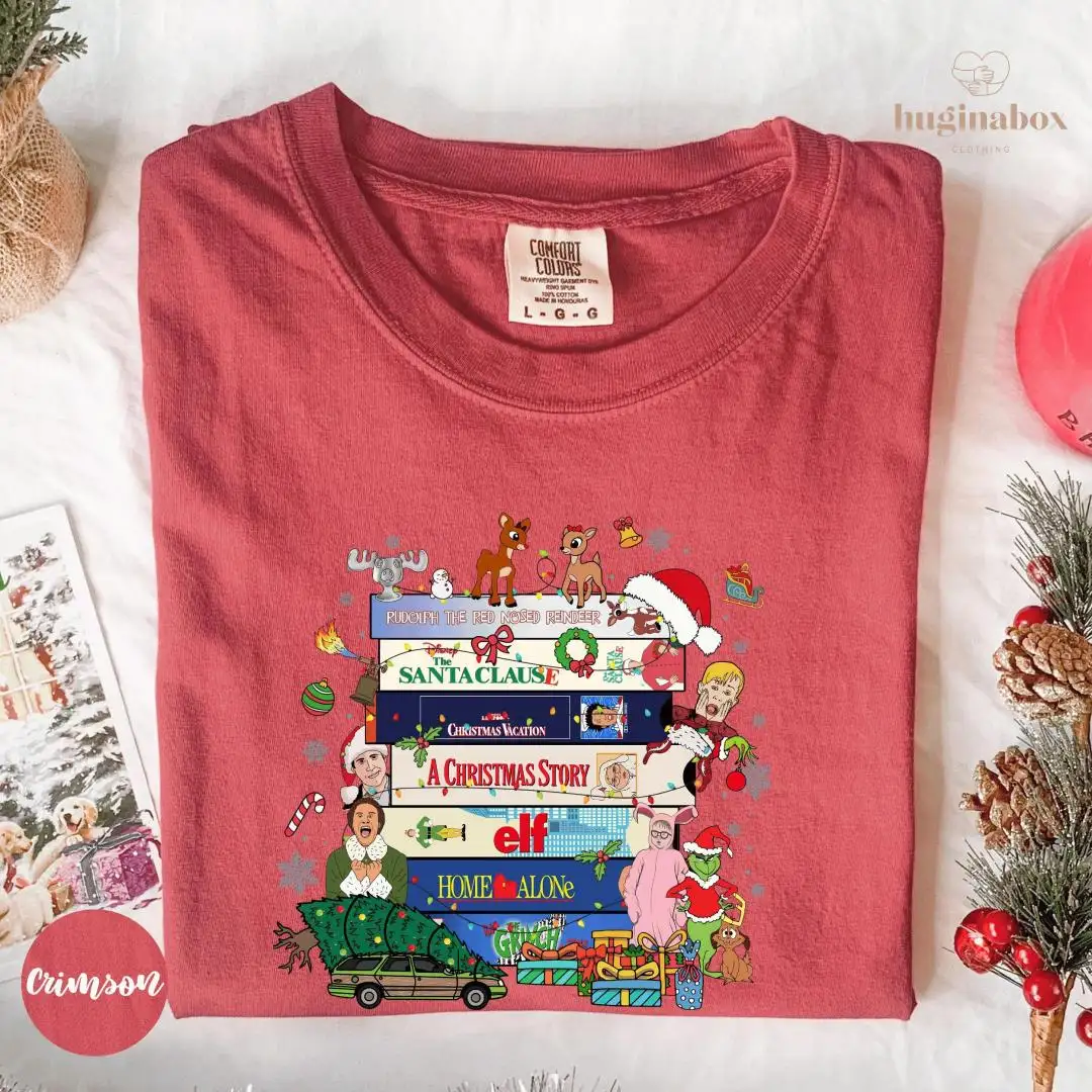 Classic Christmas Movie Stack Shirt for Family Movie Night