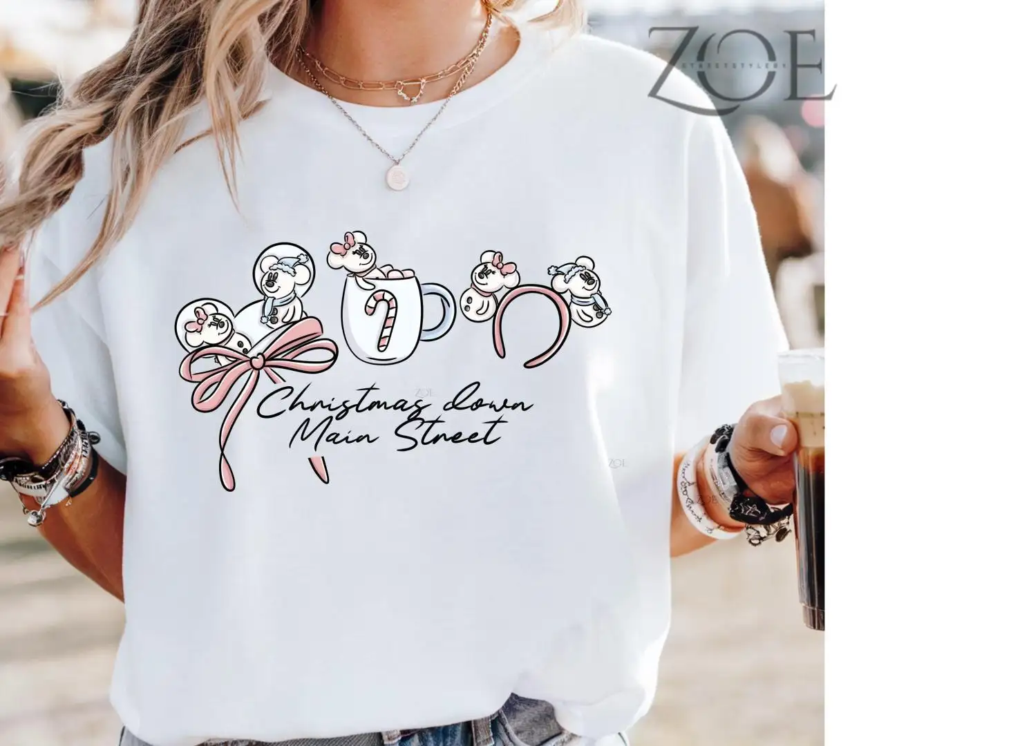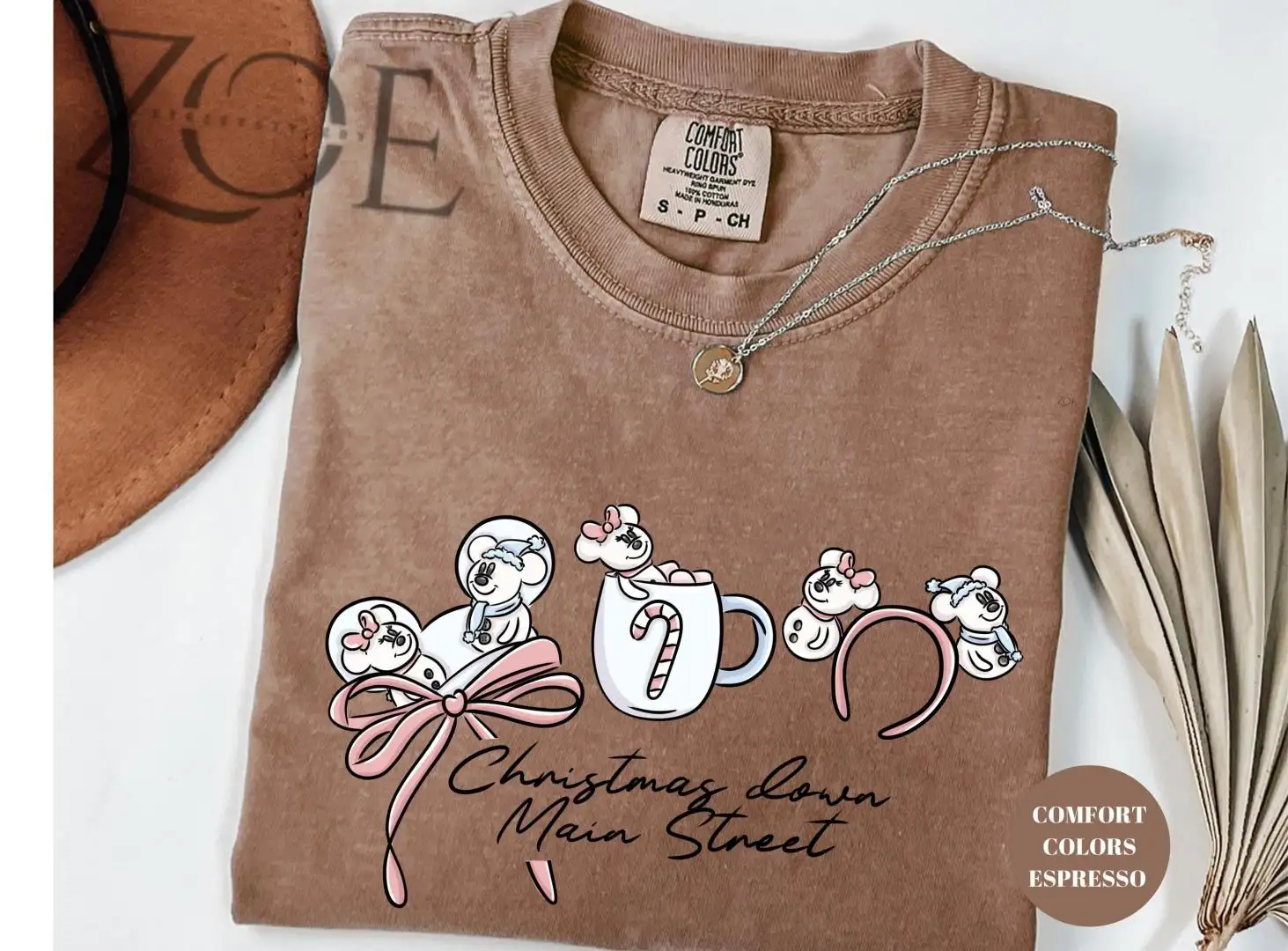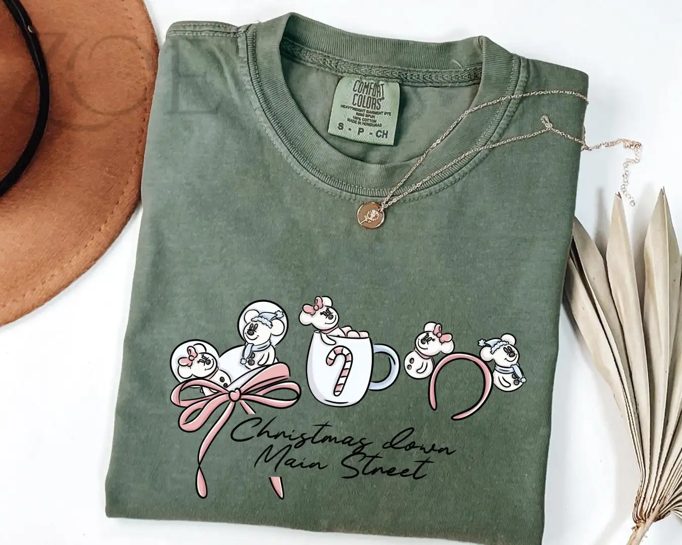 Comfort Color® Disney Christmas Down Main Street Shirt, Disney Christmas Vibes Magic Mouse Snowman, Mickey Minnie Very Merry Christmas Tee