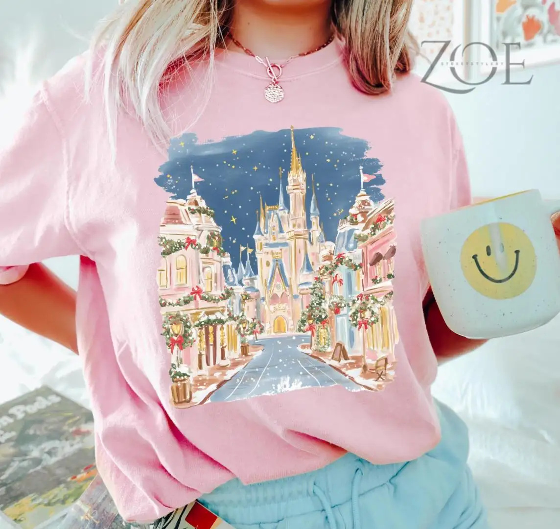 Comfort Color® Disney Christmas Magic Castle Shirt Main St Christmas Shirt Disney Princess Castle Tee Coquette Bow Disney ChristmasTrip