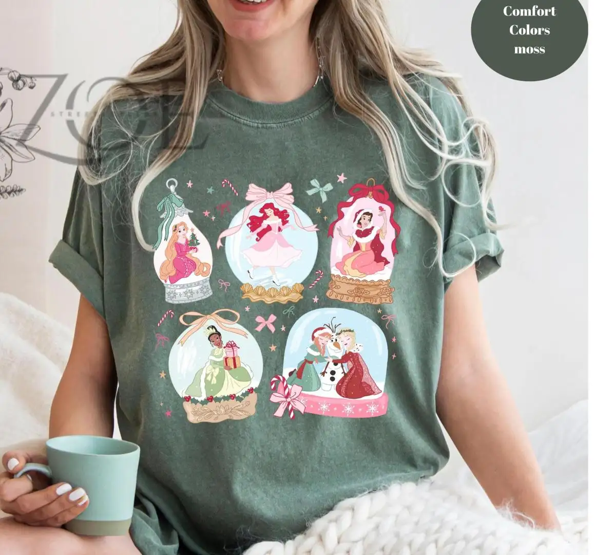 Review Comfort Color Disney Christmas Princess Coquette Tee, Snow Globe Rapunzel Tiana Ariel Snow White Anna Elsa Princess Tee Coquette Disney Trip
