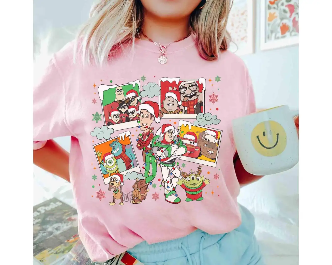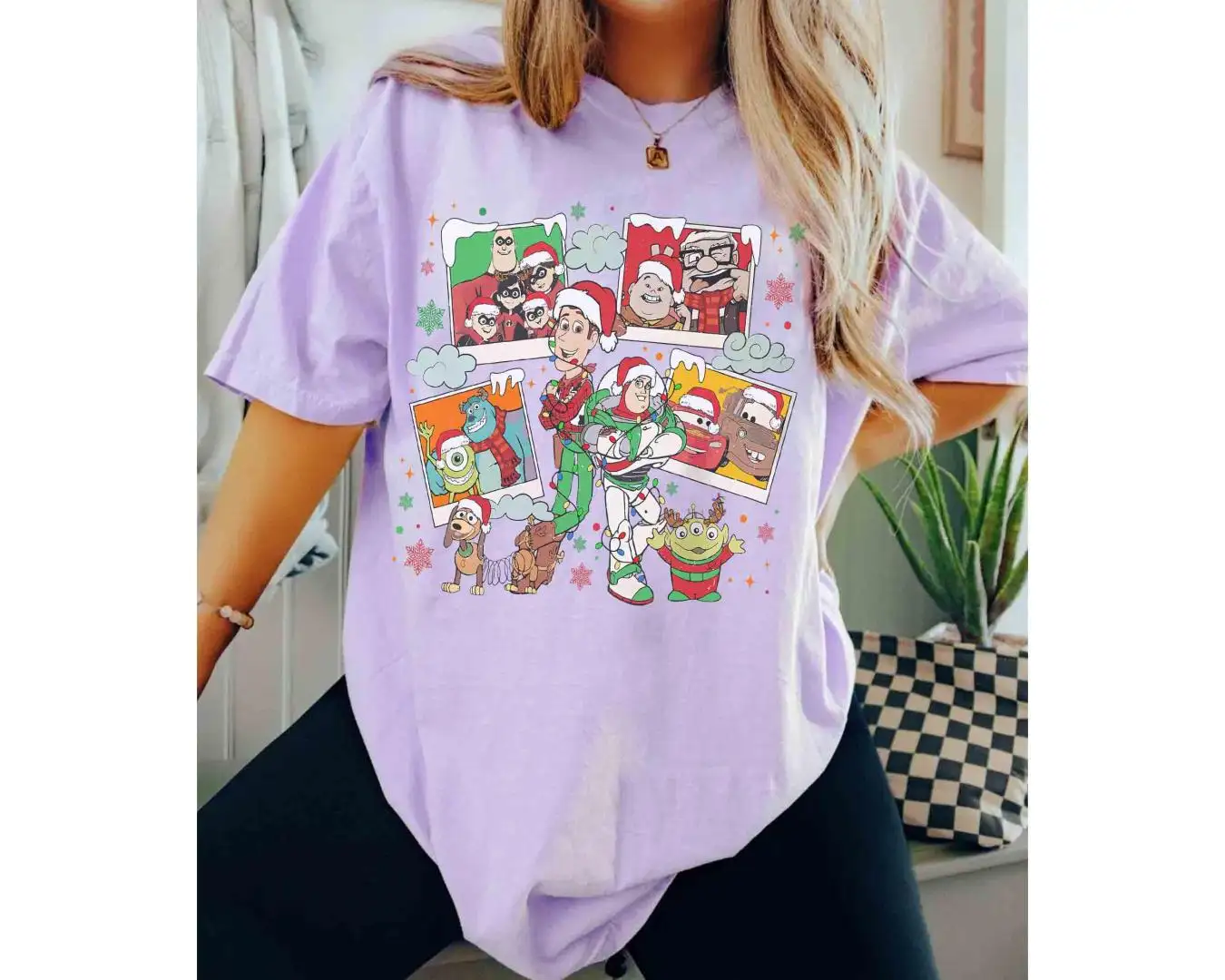 Review Comfort Color Disney Pixar Characters Christmas Photos Shirt, Monster Inc Tee, Toy Story Lights, Mickey's Very Merry Xmas Party, Cars Snow