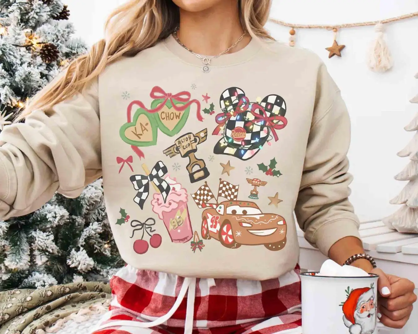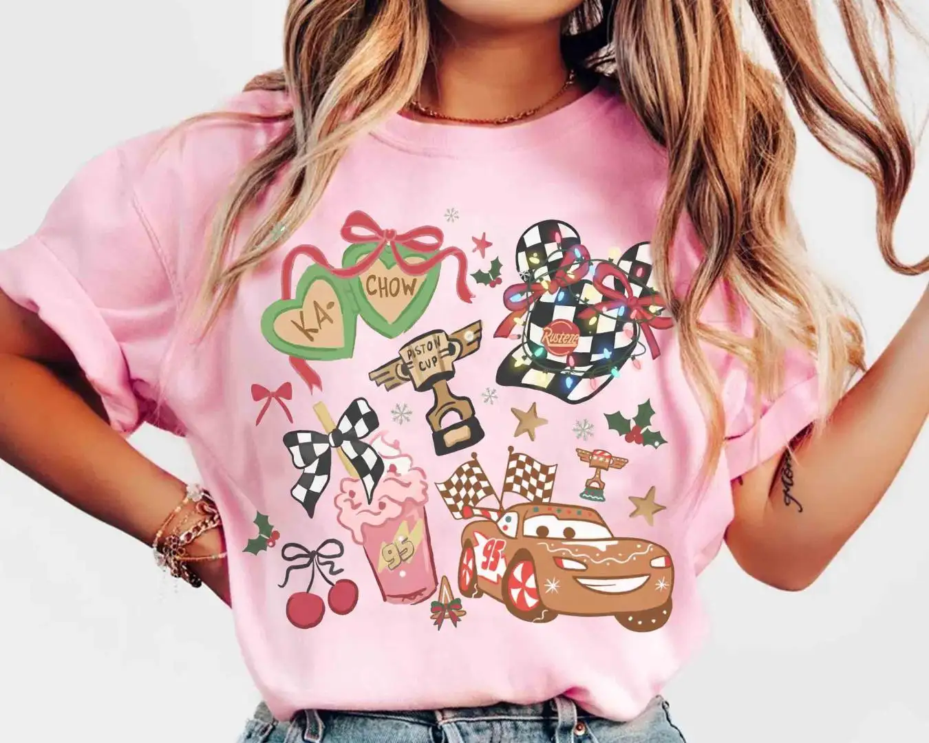 Comfort Color Lightning McQueen Ka Chow Gingerbread Christmas Shirt, Disney Pixar Cars Very Merry Xmas Party, Disneyland Family Trip Gift