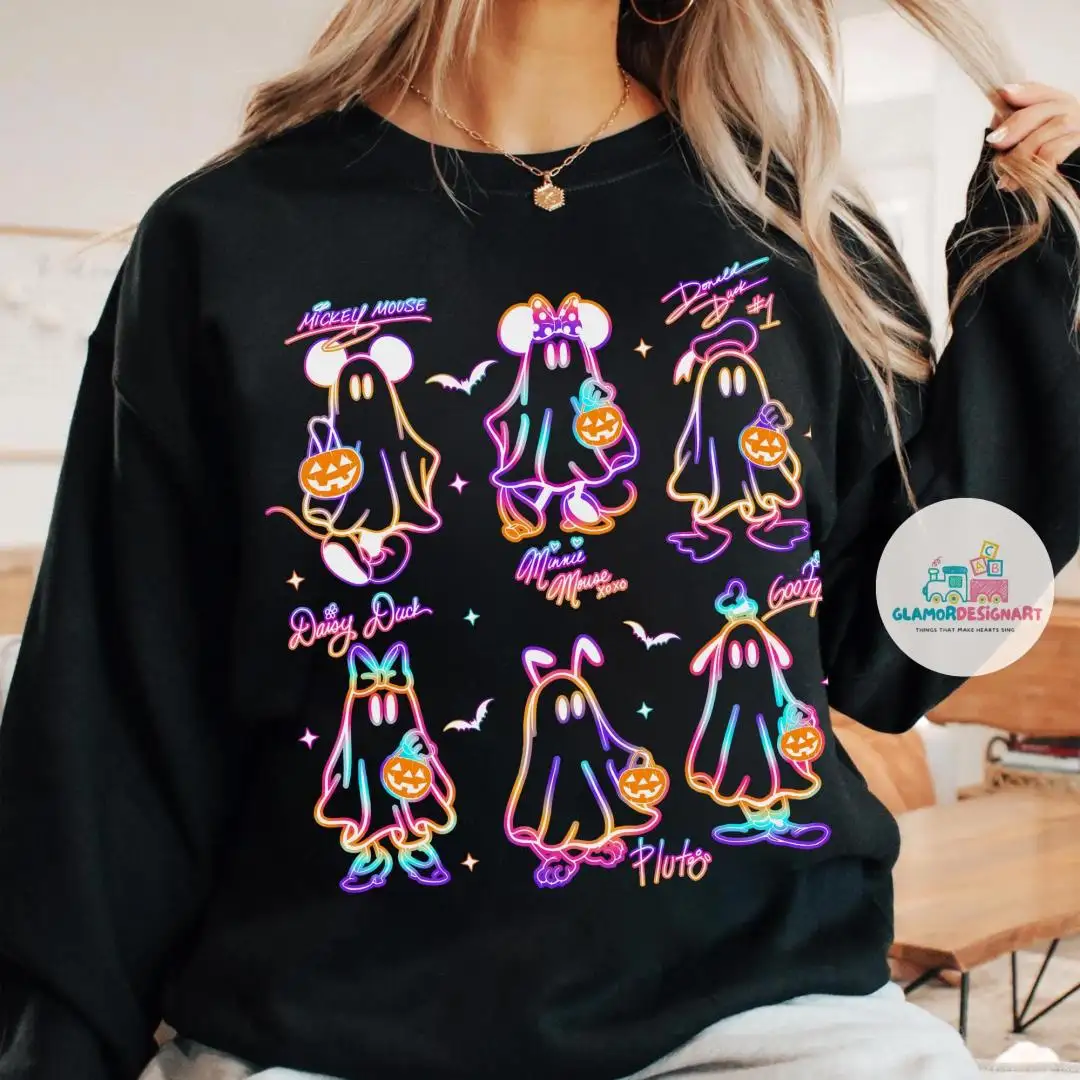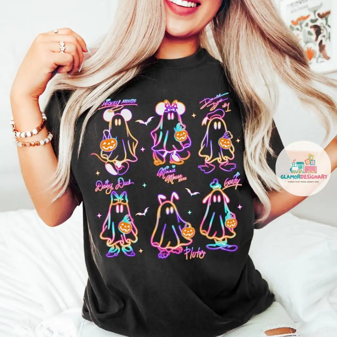 Comfort Color Neon Spooky Mickey And Friends Disney Signatures Halloween Shirt, Disney Trip Halloween 2025 Tee, Mickey's Not So Scary Shirts