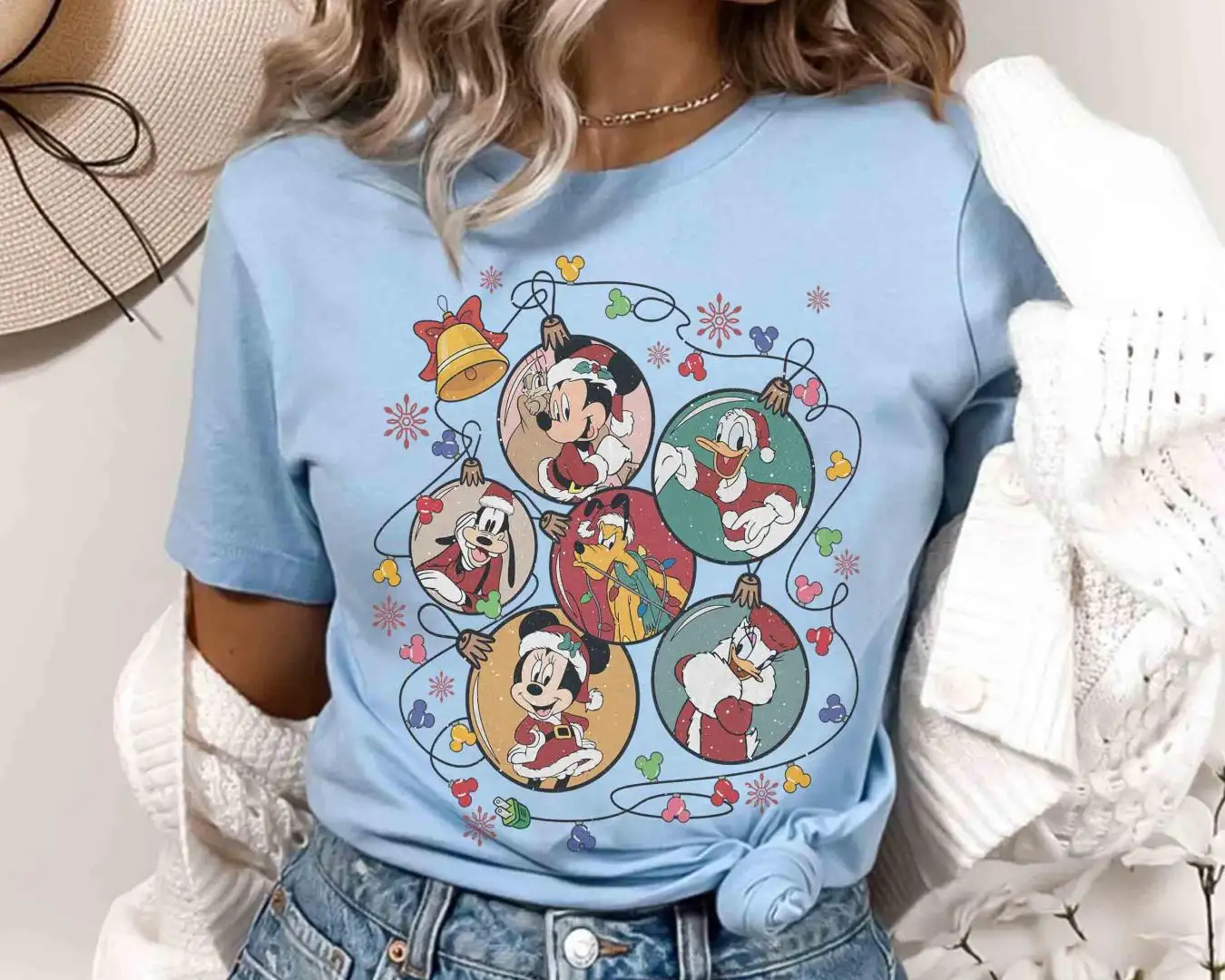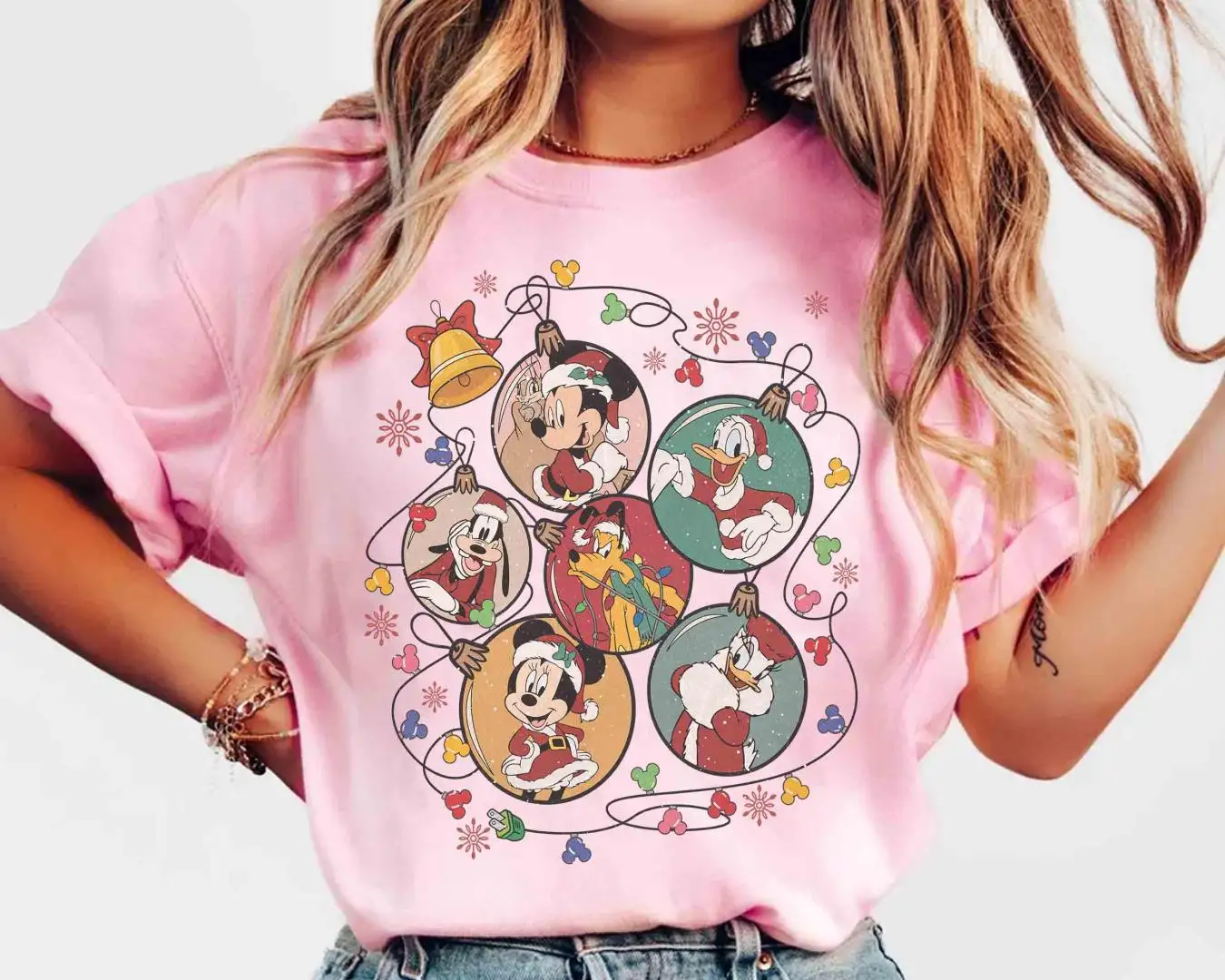 Comfort Color Vintage Mickey And Friends Disney Christmas Shirt, Disney Ornament Christmas T-shirt, Mickey Xmas, Magic Kingdom, Disney Trip