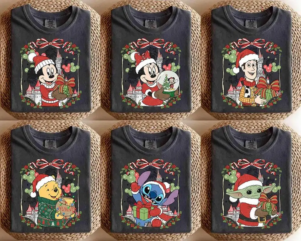 Comfort Colors All Characters Disneyland Magical Castle Christmas Shirts, Mickey & Friends Xmas Party Shirts, Family Christmas Matching Tees