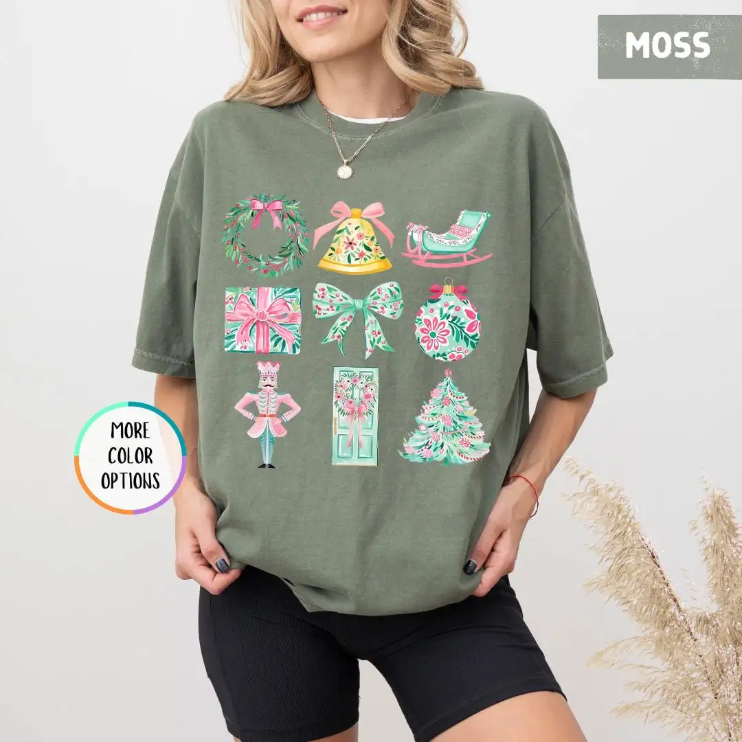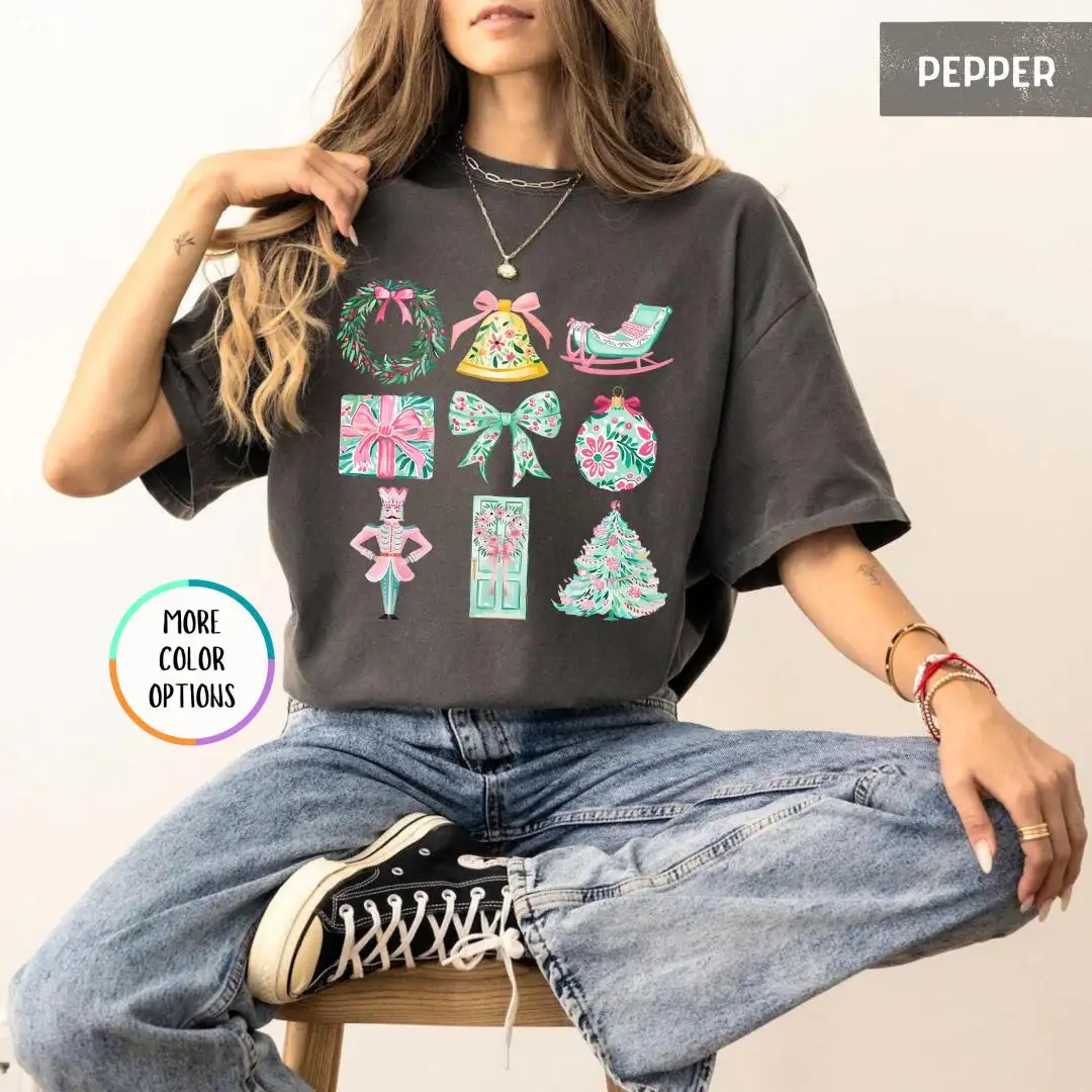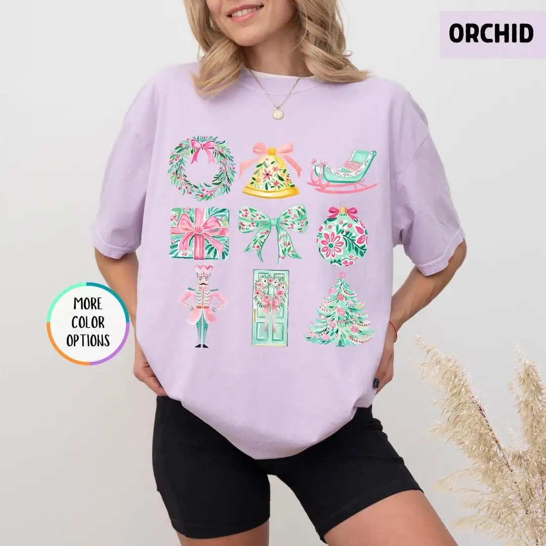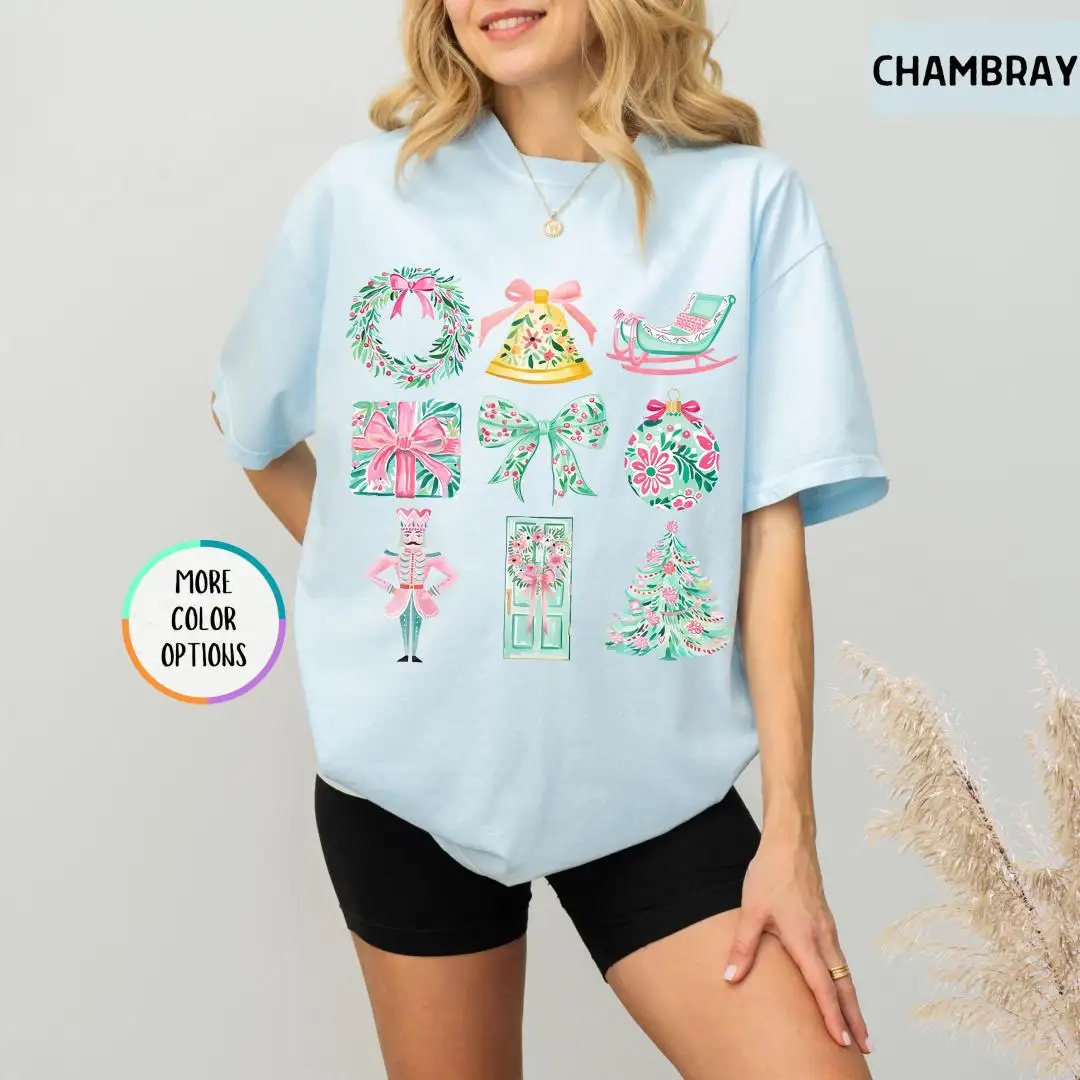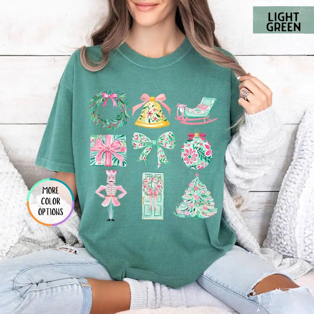 Review Comfort Colors® Chrismas Shirt, Xmas Gift For Girls, Pink Christmas, Preppy Christmas Shirt, Coquette Christmas Shirt, Womens Christmas Gifts