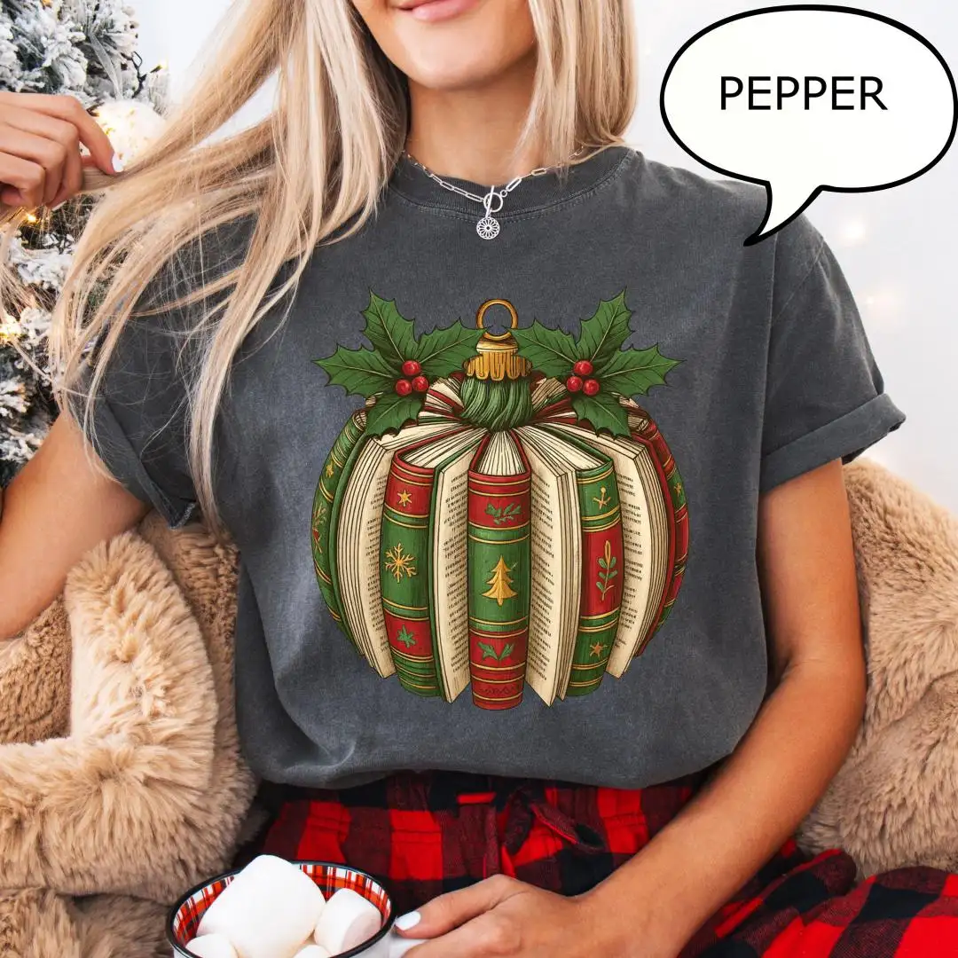 Comfort Colors Christmas Book Pumpkin Shirt for Teachers