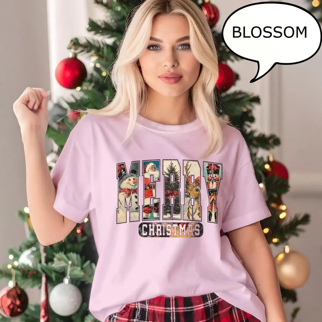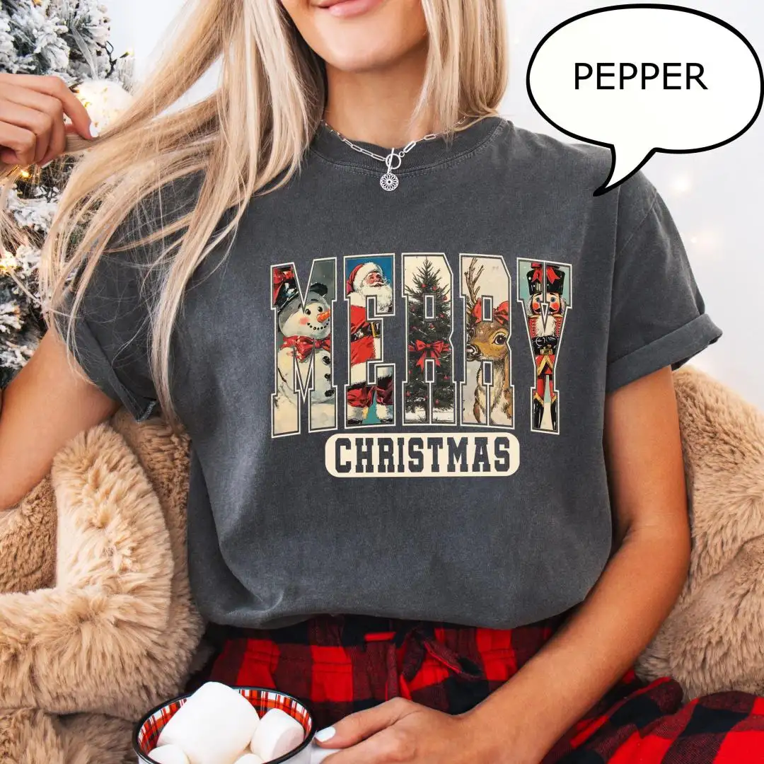 Comfort Colors Christmas Shirt with Cute Snowman Design