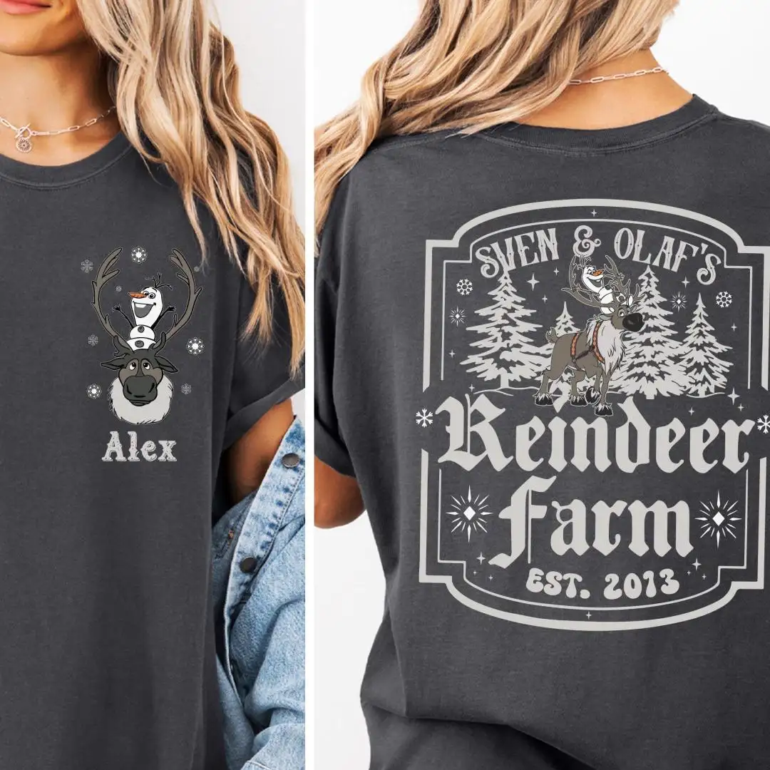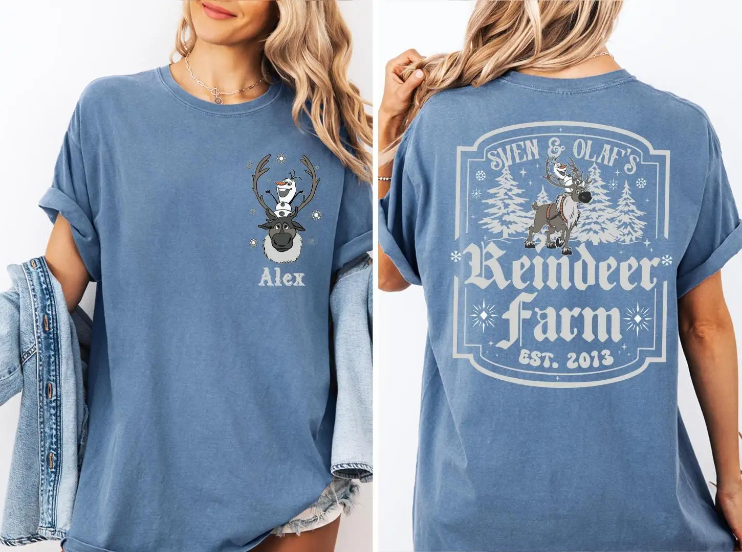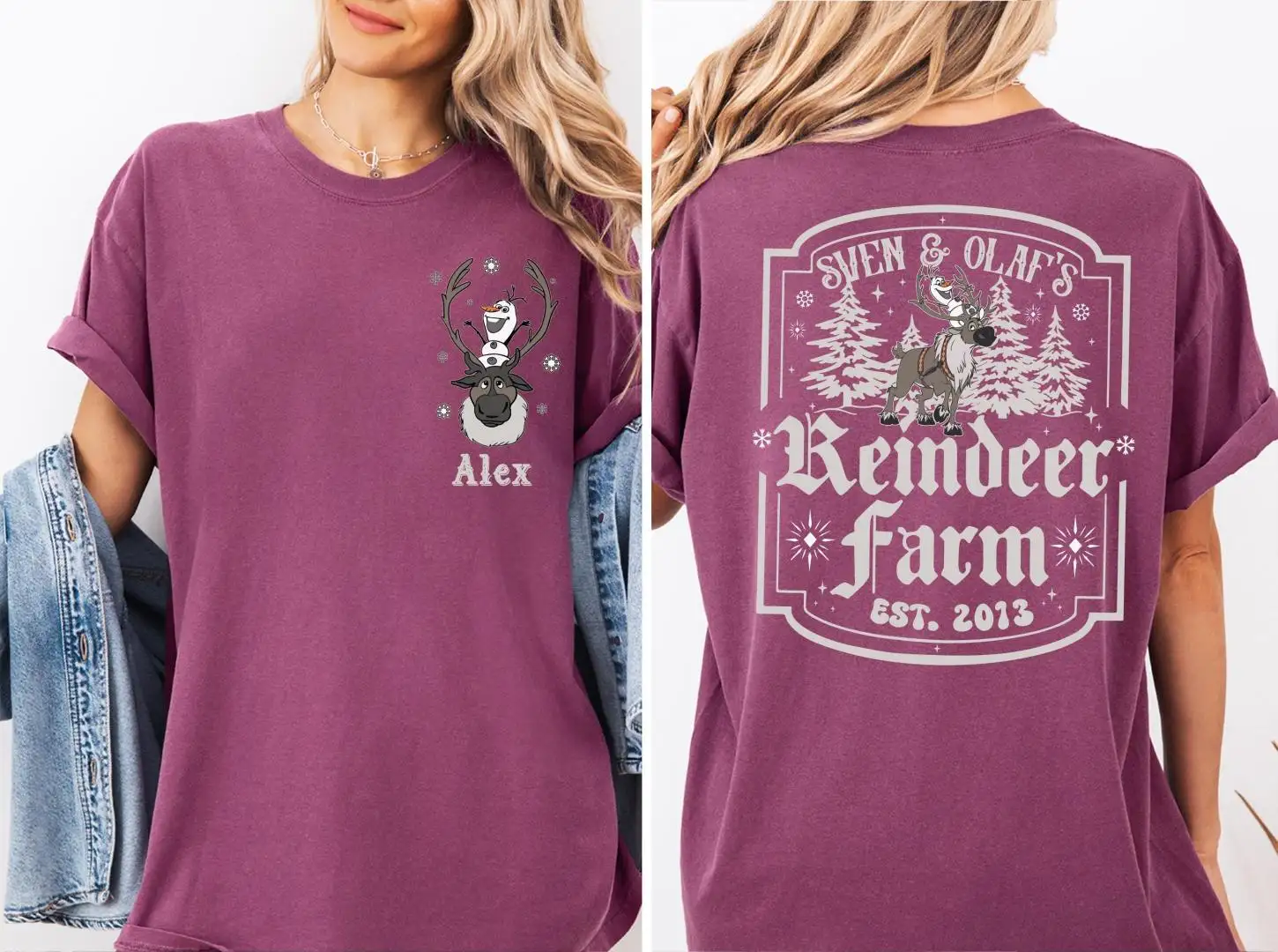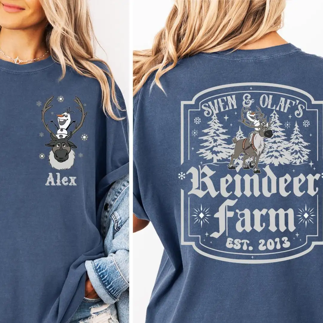 Comfort Colors® Christmas Sven & Olaf Custom Shirt, Frozen Merry Christmas Sven Olaf T-Shirt, Disney Retro Custom Name Christmas Tee