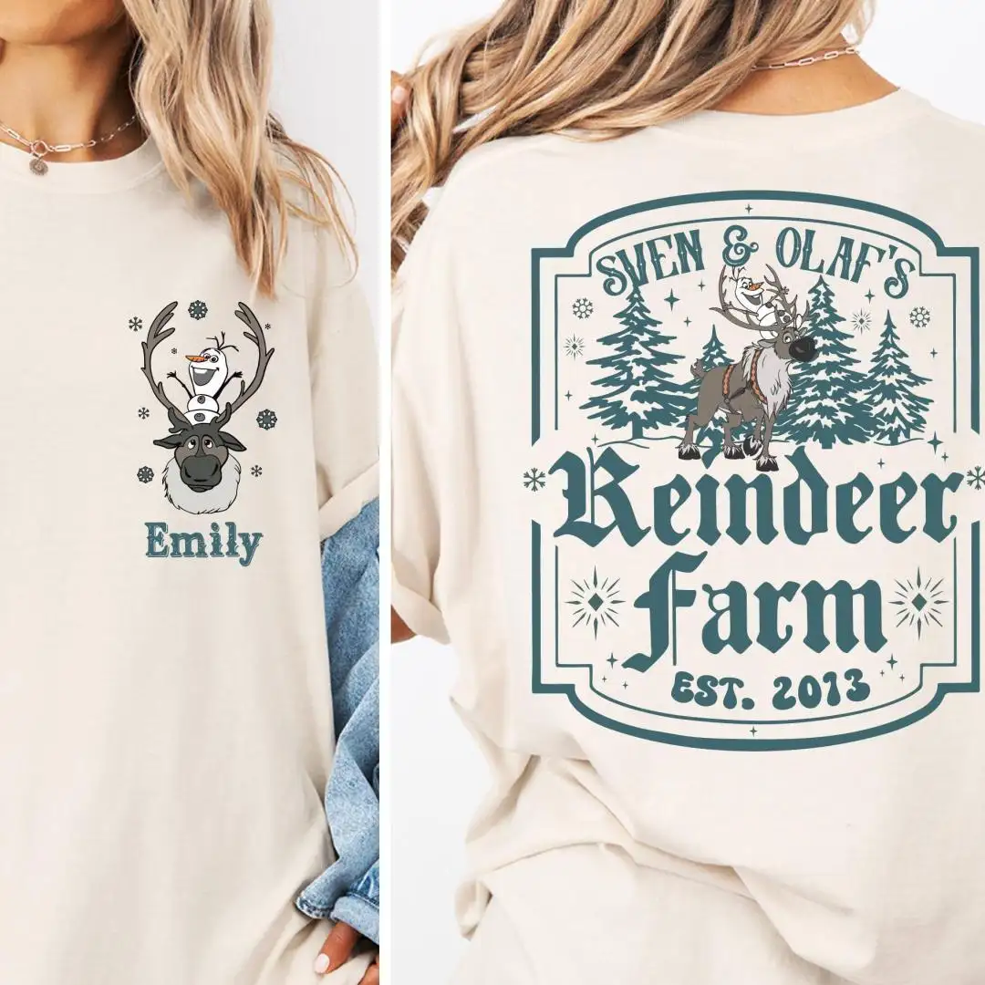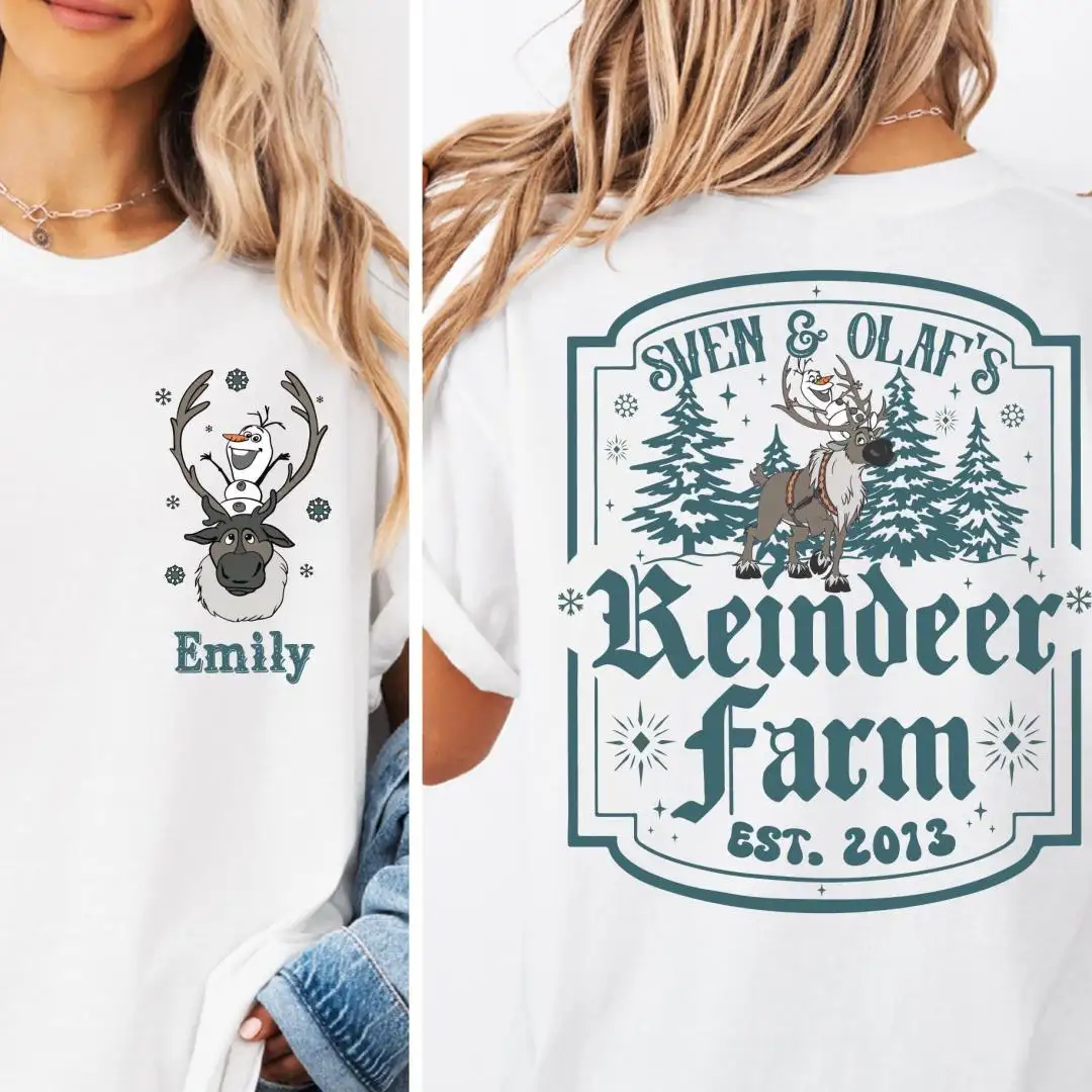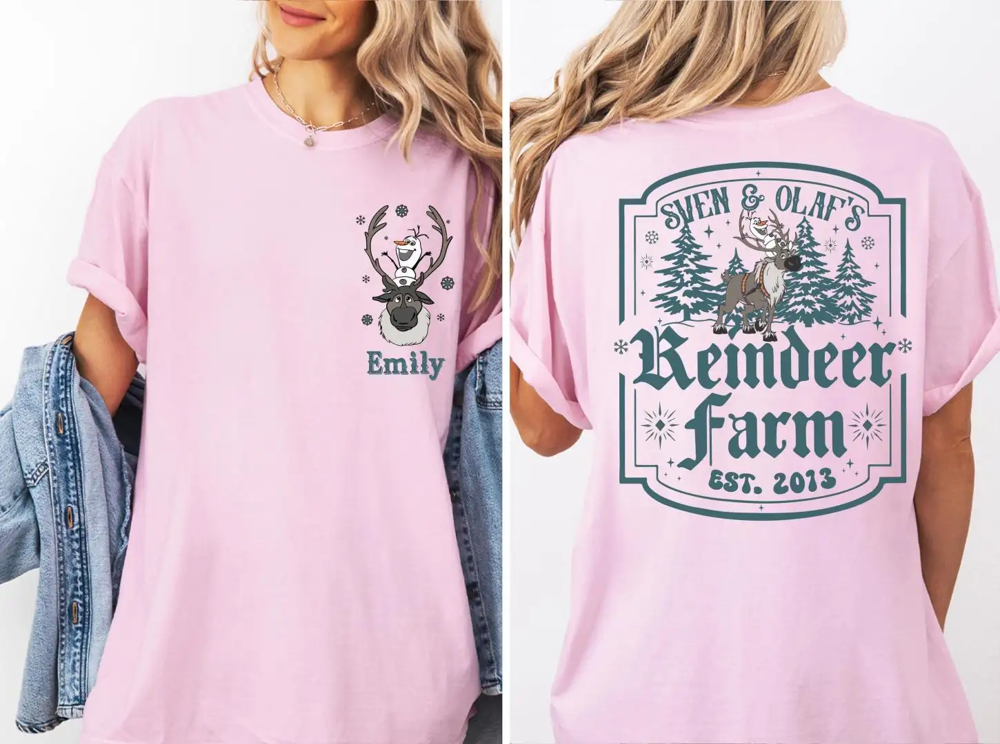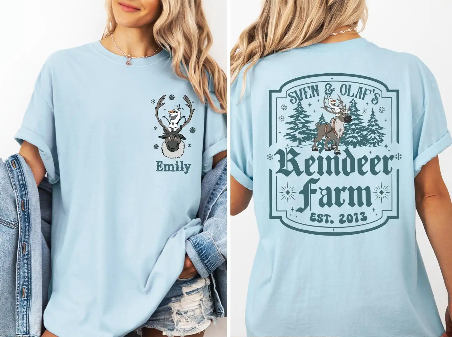 Comfort Colors® Christmas Sven & Olaf Custom Shirt, Frozen Merry Christmas Sven Olaf T-Shirt, Disney Retro Custom Name Christmas Tee