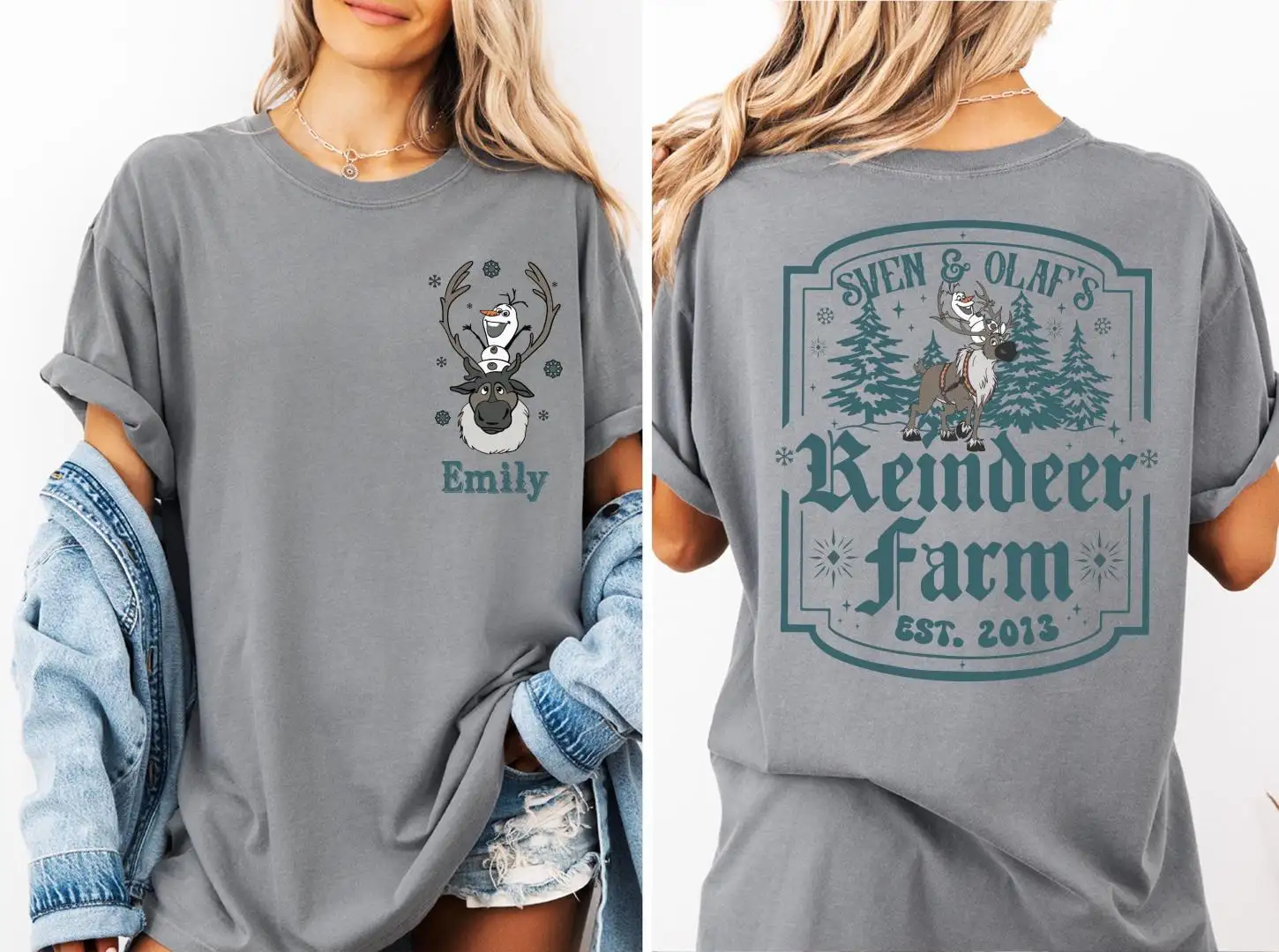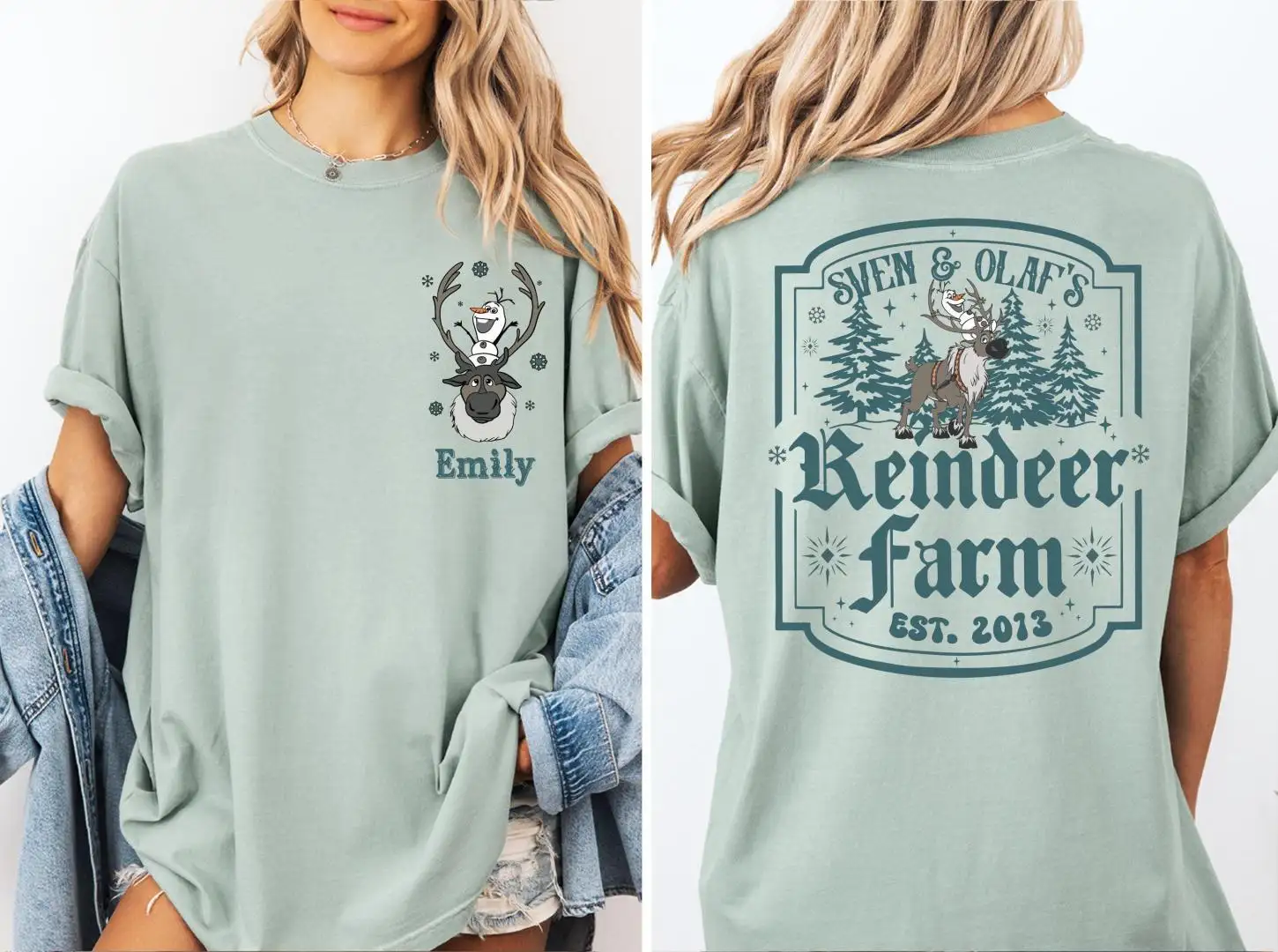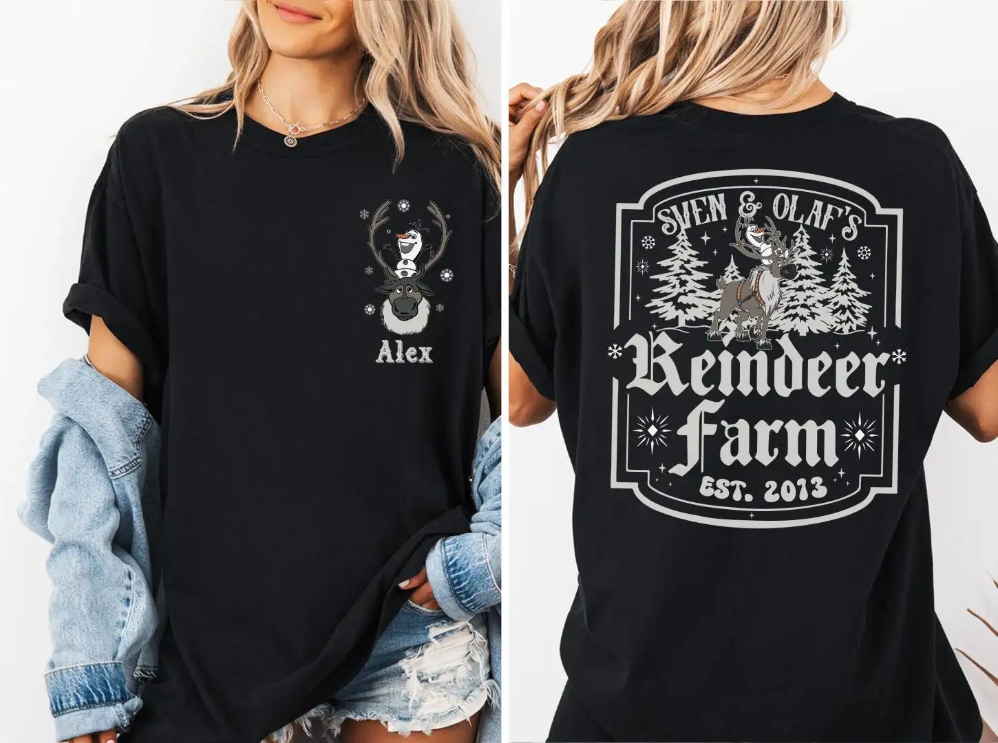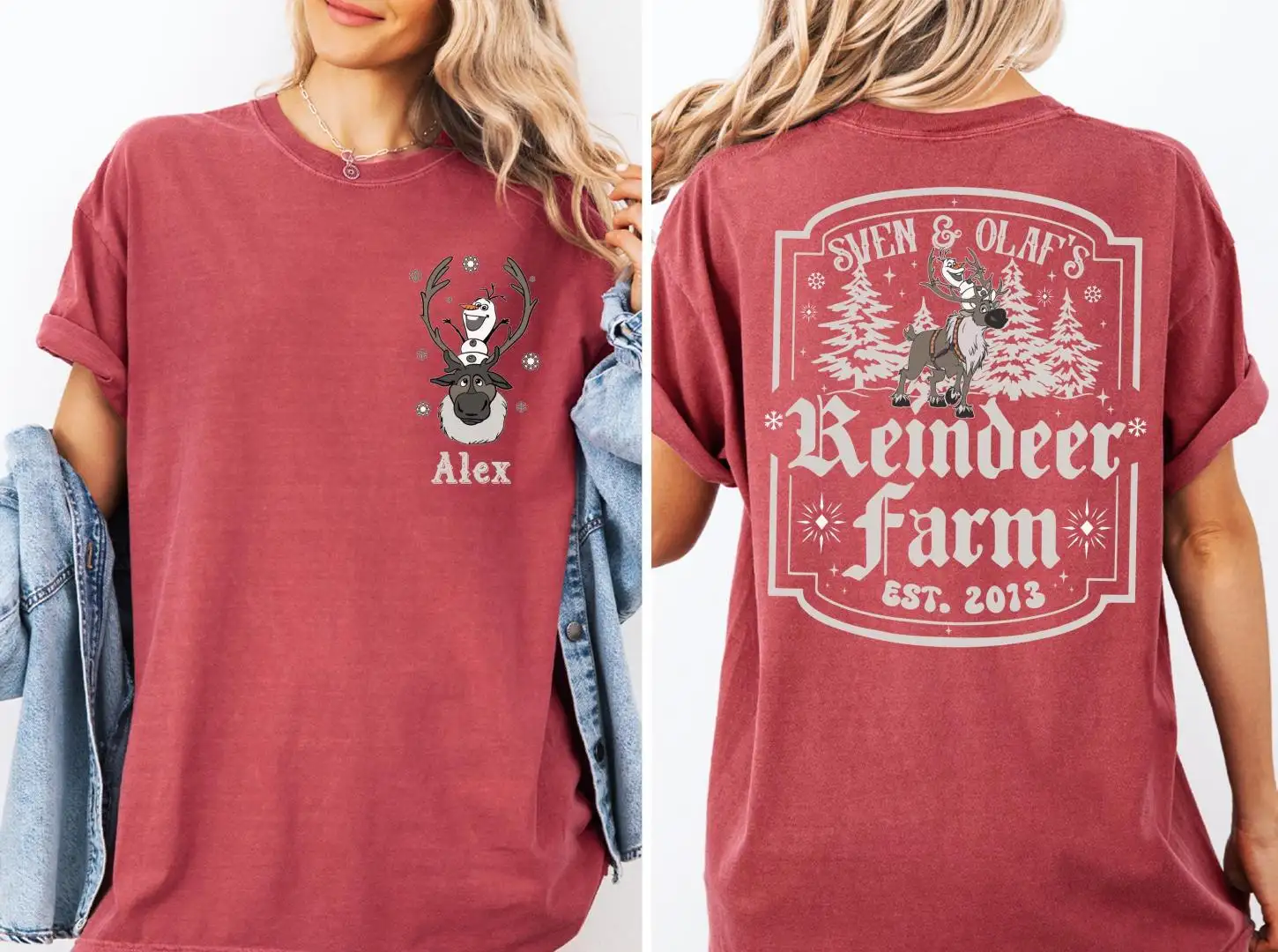 Review Comfort Colors® Christmas Sven & Olaf Custom Shirt, Frozen Merry Christmas Sven Olaf T-Shirt, Disney Retro Custom Name Christmas Tee
