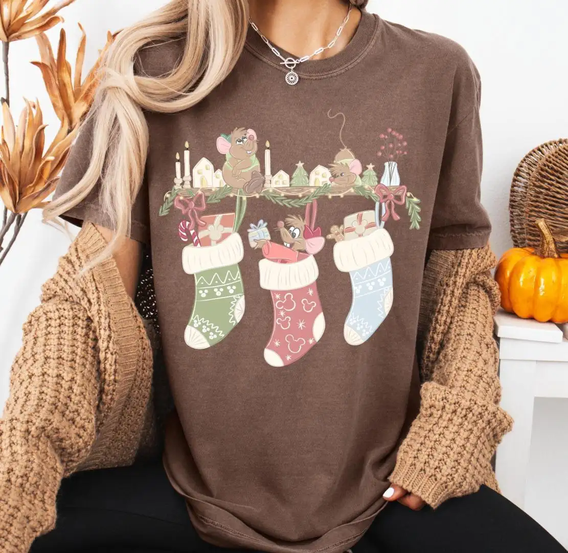 Review Comfort Colors Christmas Vintage Cinderella Stocking Shirt Gus Gus Cinderella Shirt Princess Shirt, Disney Girl Trip Gus Gus Christmas Shirt