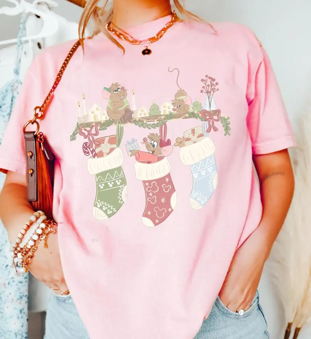 Comfort Colors Christmas Vintage Cinderella Stocking Shirt Gus Gus Cinderella Shirt Princess Shirt, Disney Girl Trip Gus Gus Christmas Shirt