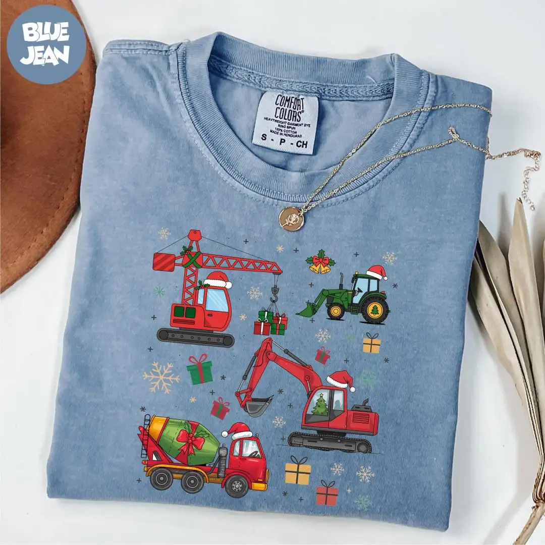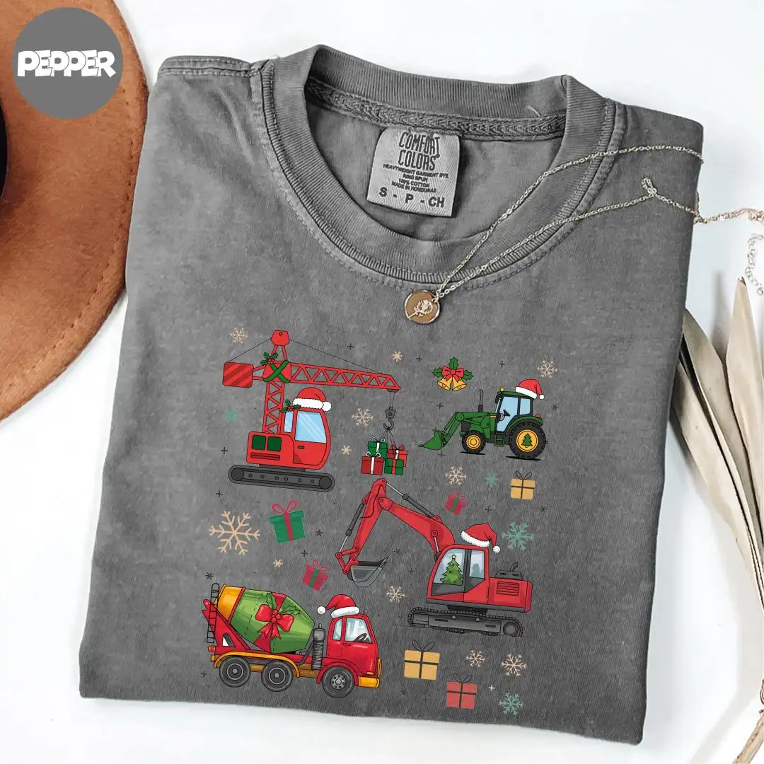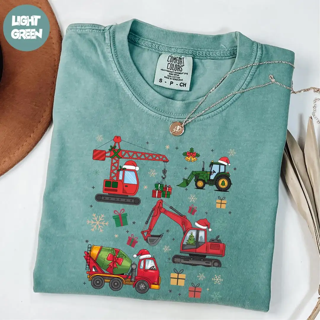 Comfort Colors® Construction Trucks Christmas Shirt, Boys Christmas Shirt, Kids Trucks Shirt, Xmas Holiday Gift for Kids, Christmas Gift