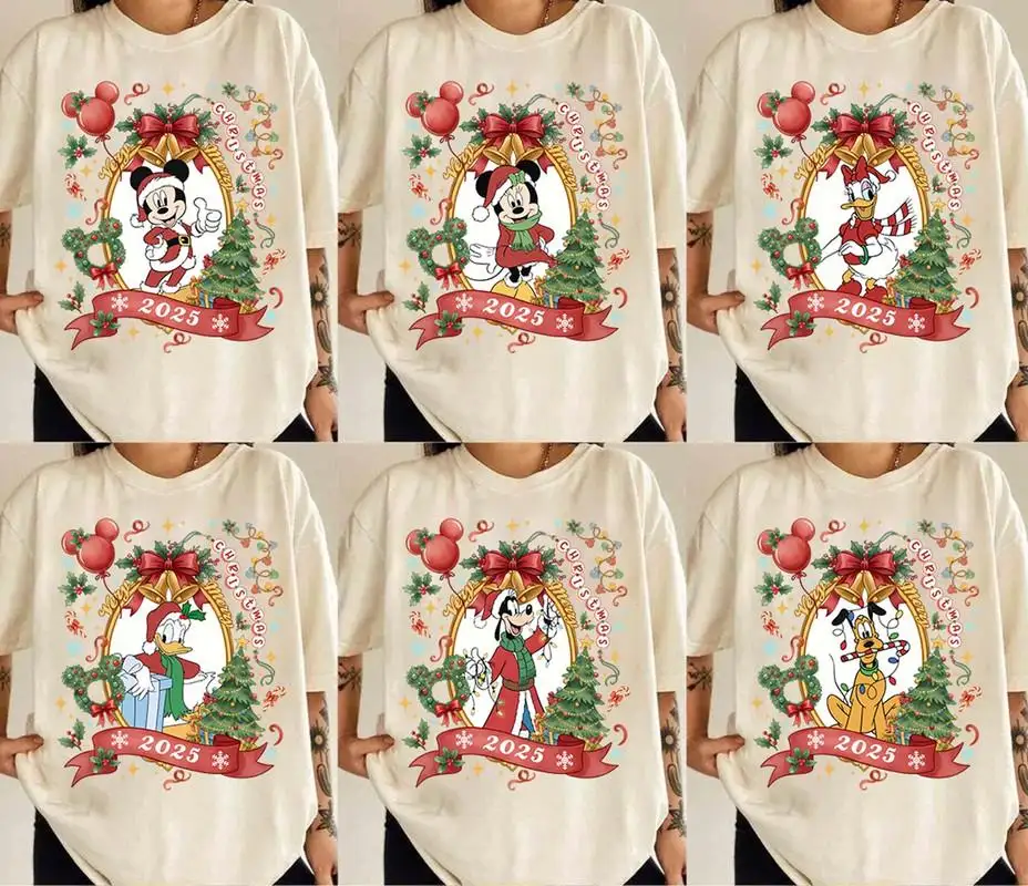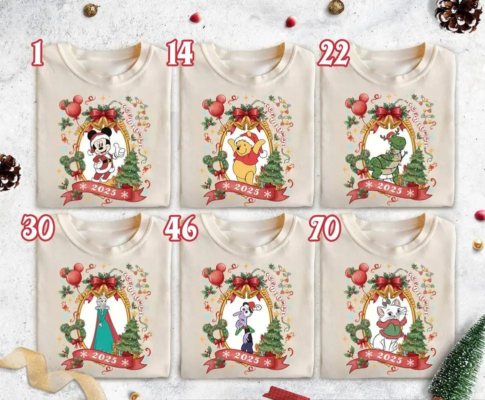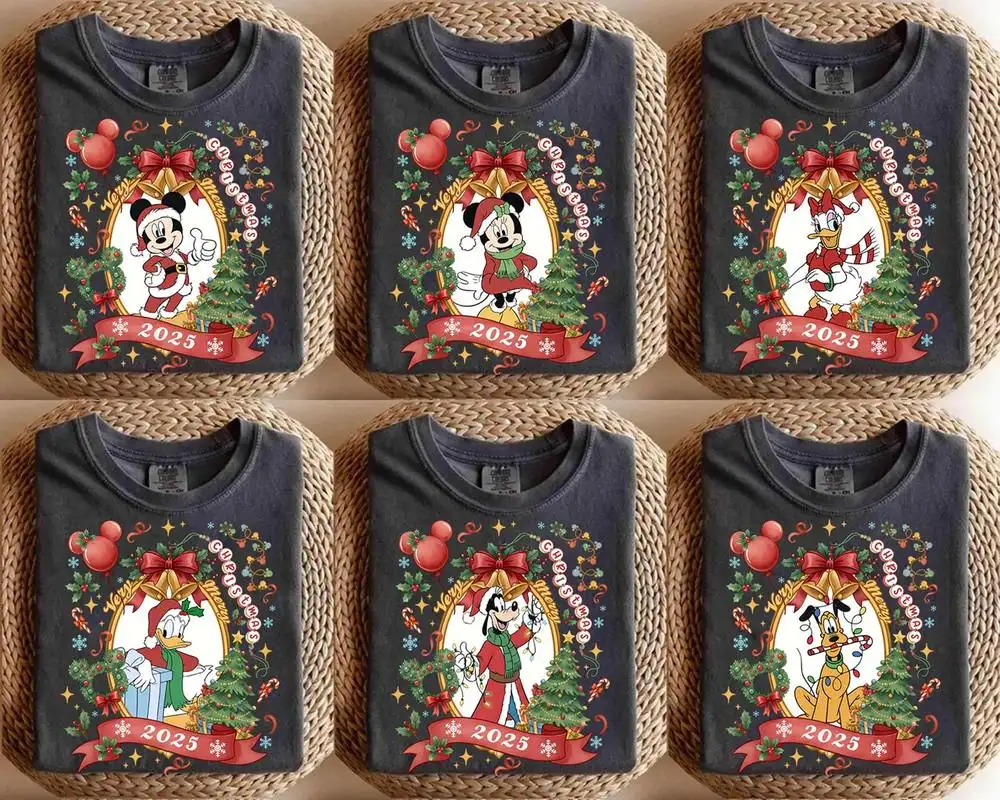 Comfort Colors Custom Disneyland Christmas All Characters Shirts, Disneyland Very Merry Christmas Party, Family Christmas Coquette Shirts