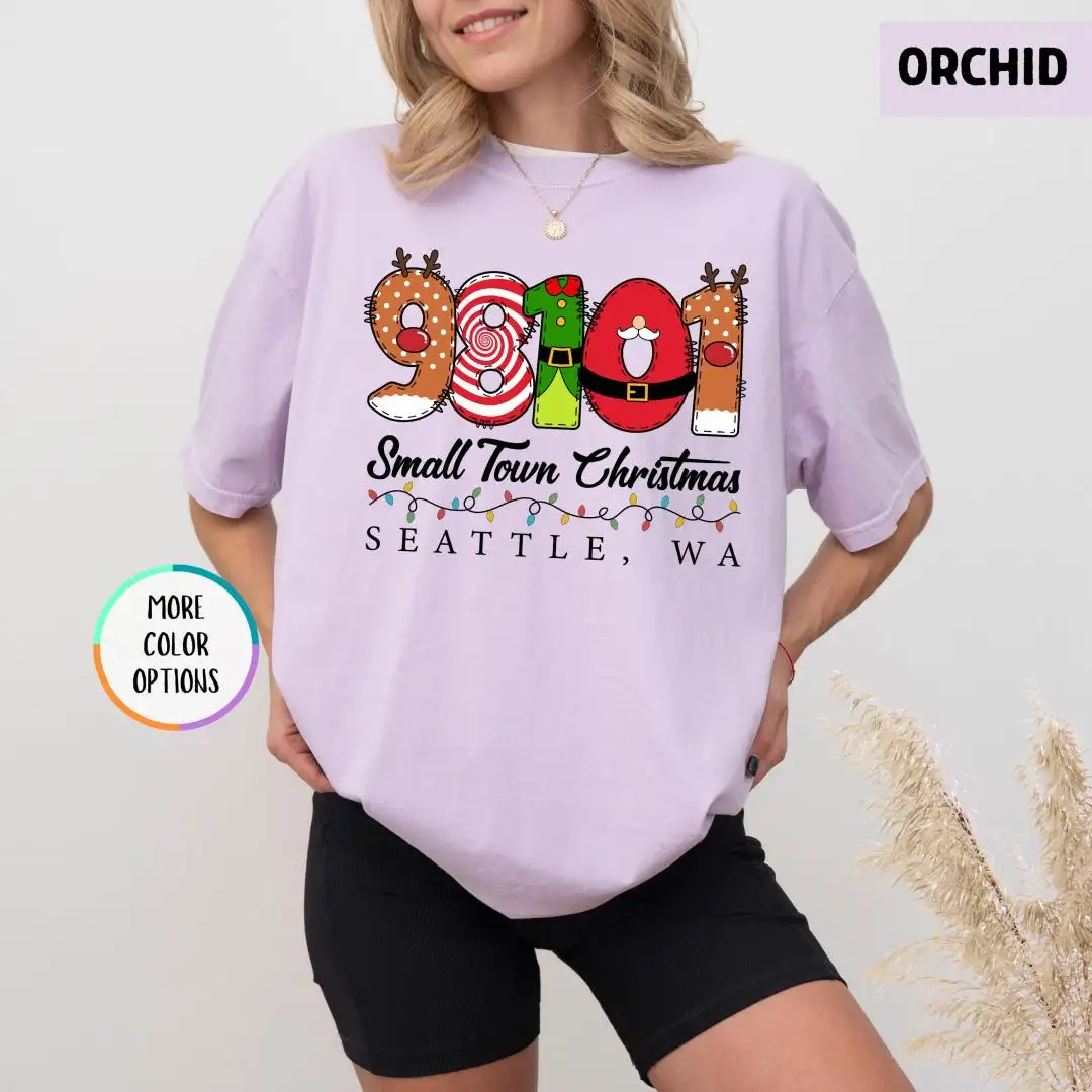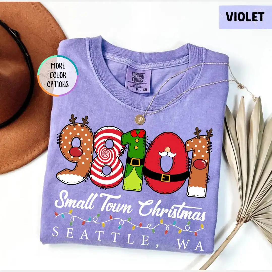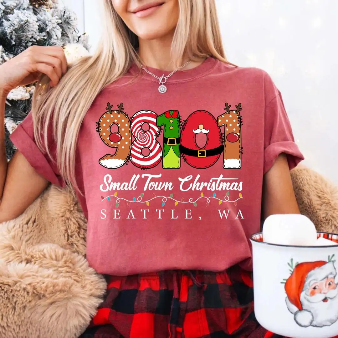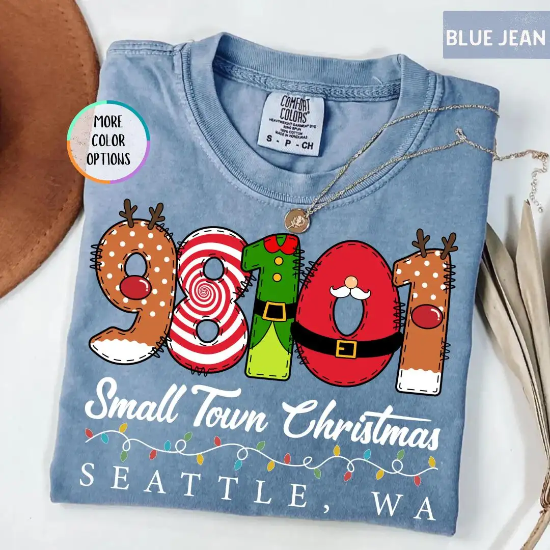 Comfort Colors Custom Small Town Christmas Shirt, Holiday Matching, Country Christmas Shirt, Personalized Zip Code Shirt, Farmer Xmas Shirt