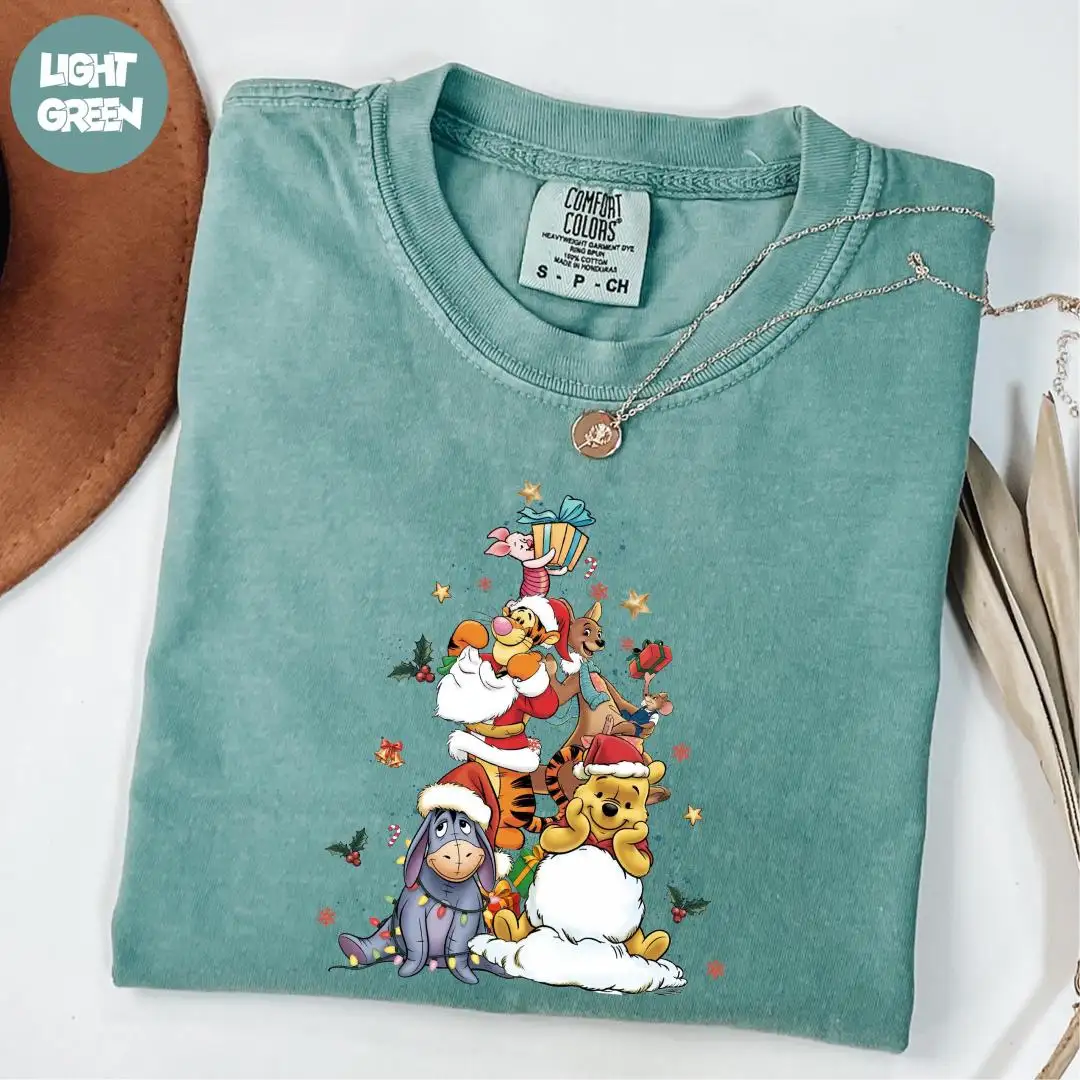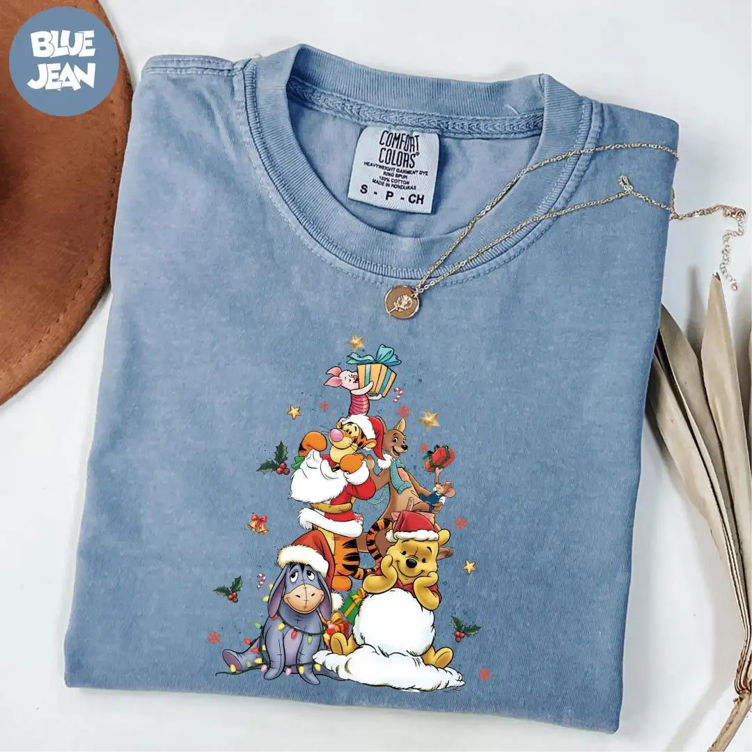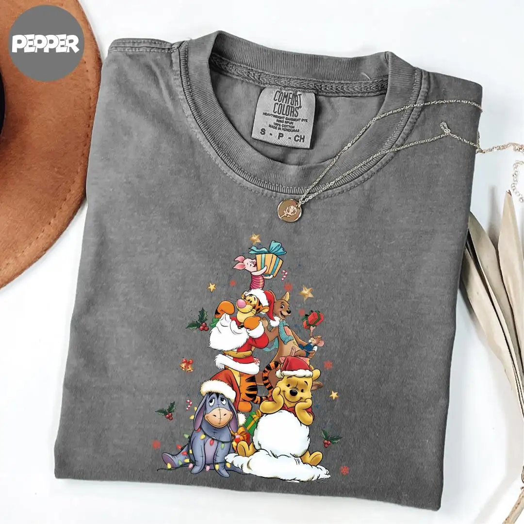 Comfort Colors® Disney Pooh Bear Christmas Shirt, Winnie The Pooh and Friends Christmas Gift, Disney Christmas Shirt, Christmas Holiday Tee