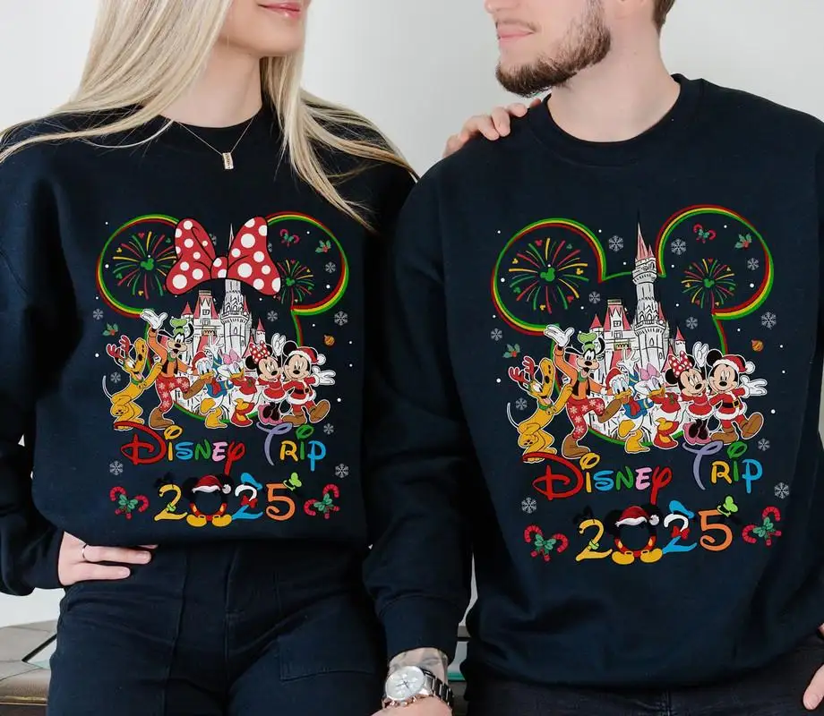 Comfort Colors DisneyTrip Christmas Family 2025 Shirt, Disneyland Christmas, Mickey And Friends Magical Castle Shirt, Christmas Family Trip
