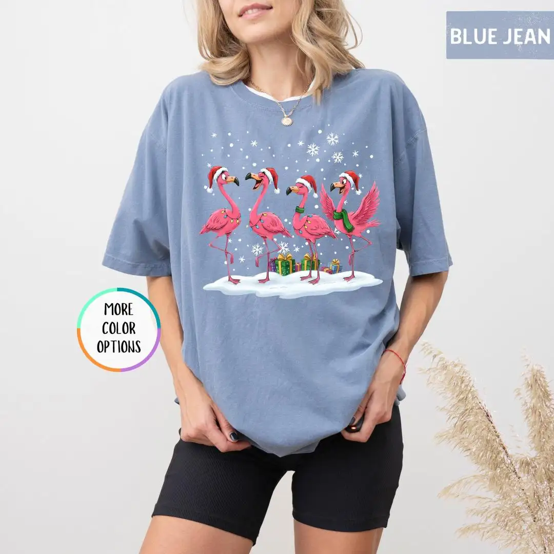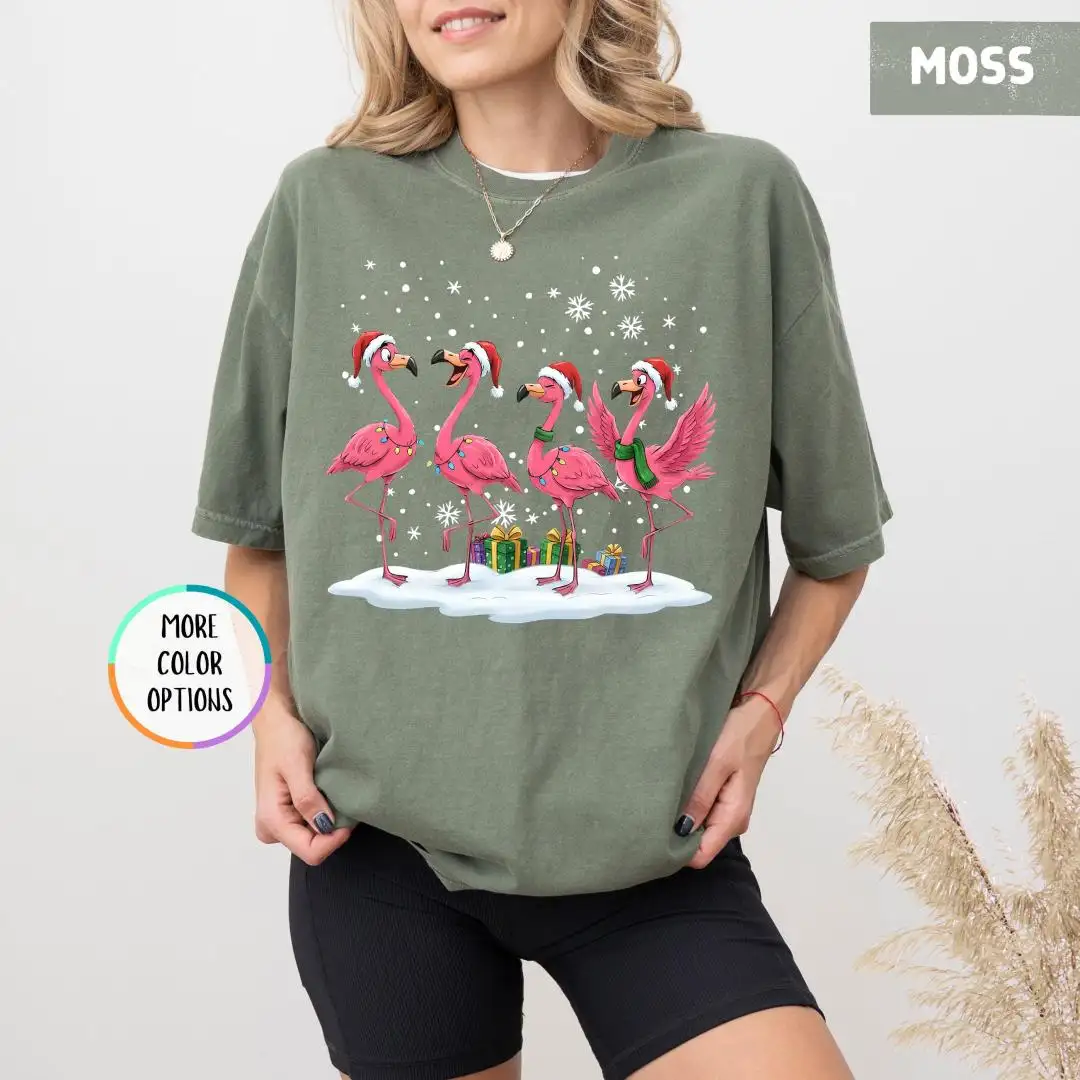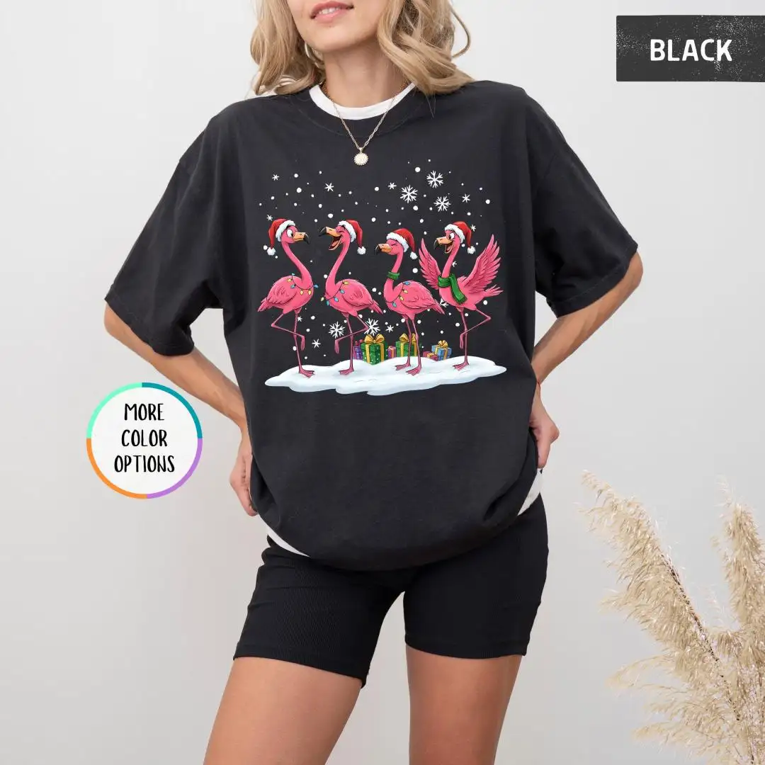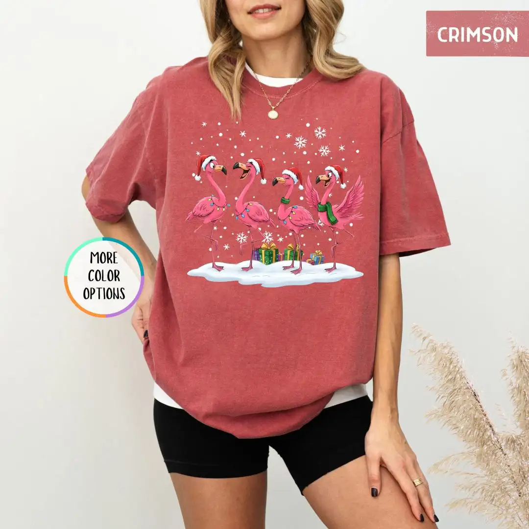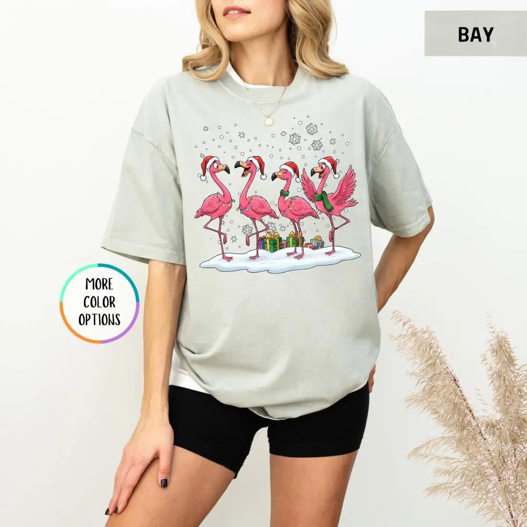 Comfort Colors Flamingo Santa Shirt, Tropical Xmas Shirt, Santa Beach Shirt, Funny Holiday Gift Shirt For Women, Christmas Flamingo Shirt