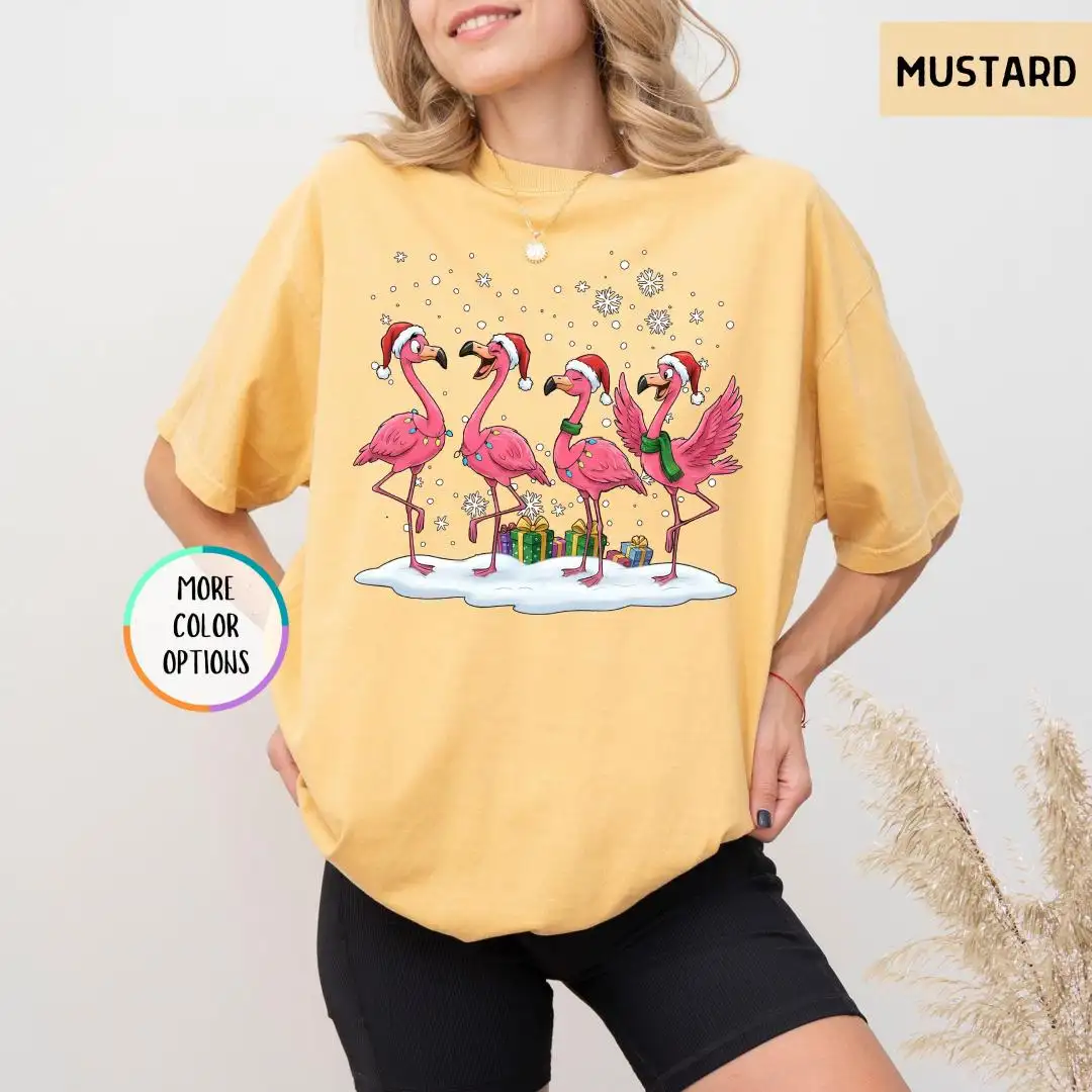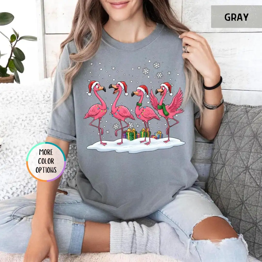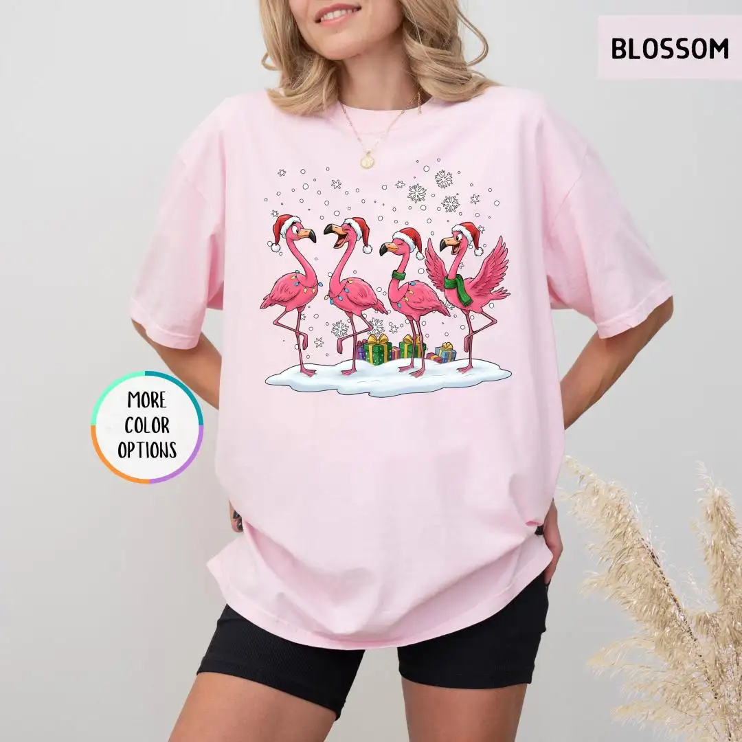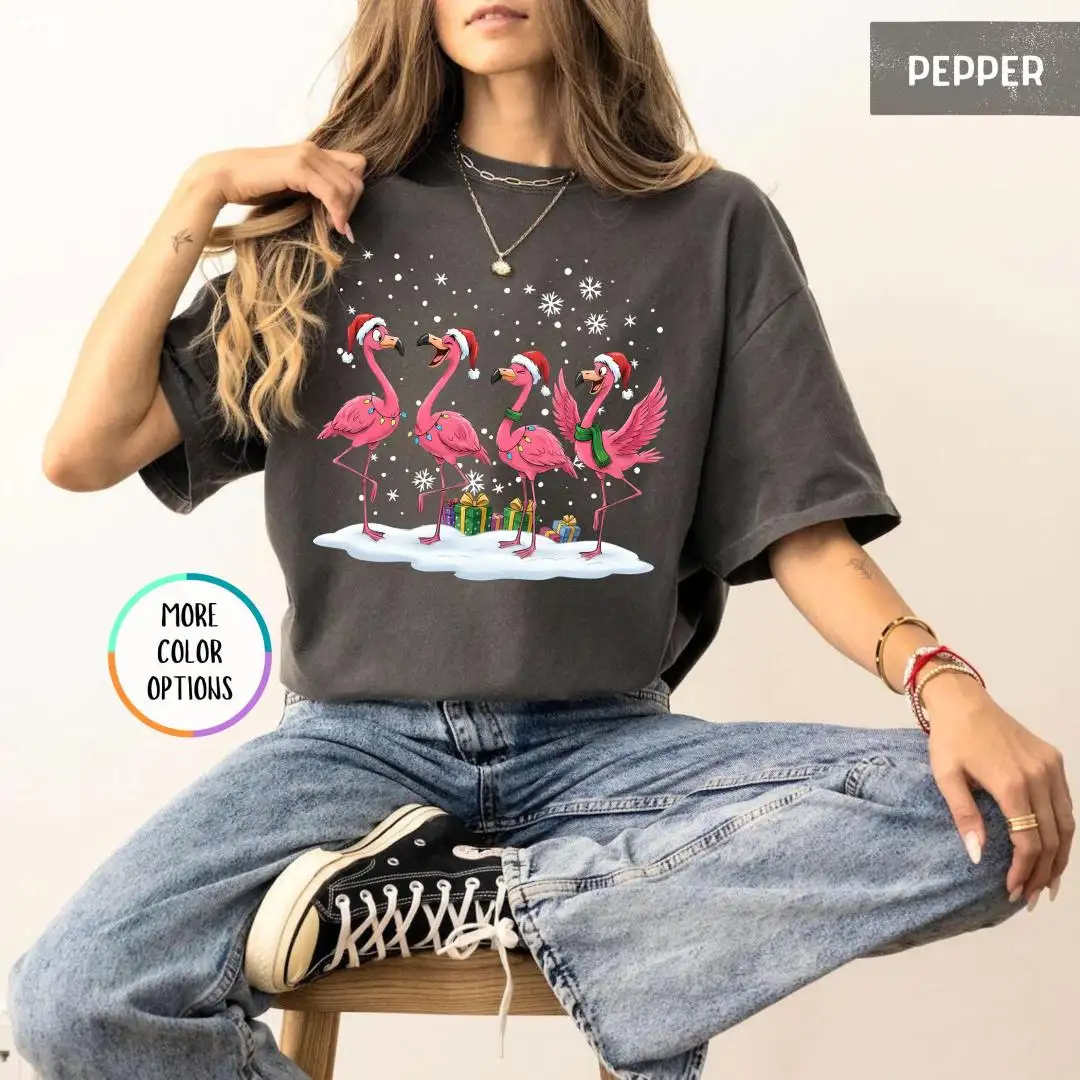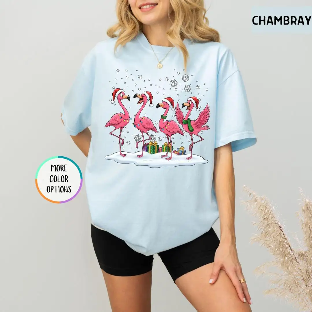 Comfort Colors Flamingo Santa Shirt, Tropical Xmas Shirt, Santa Beach Shirt, Funny Holiday Gift Shirt For Women, Christmas Flamingo Shirt