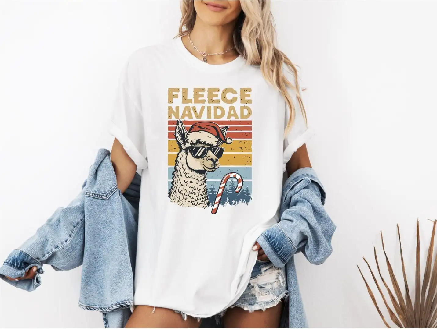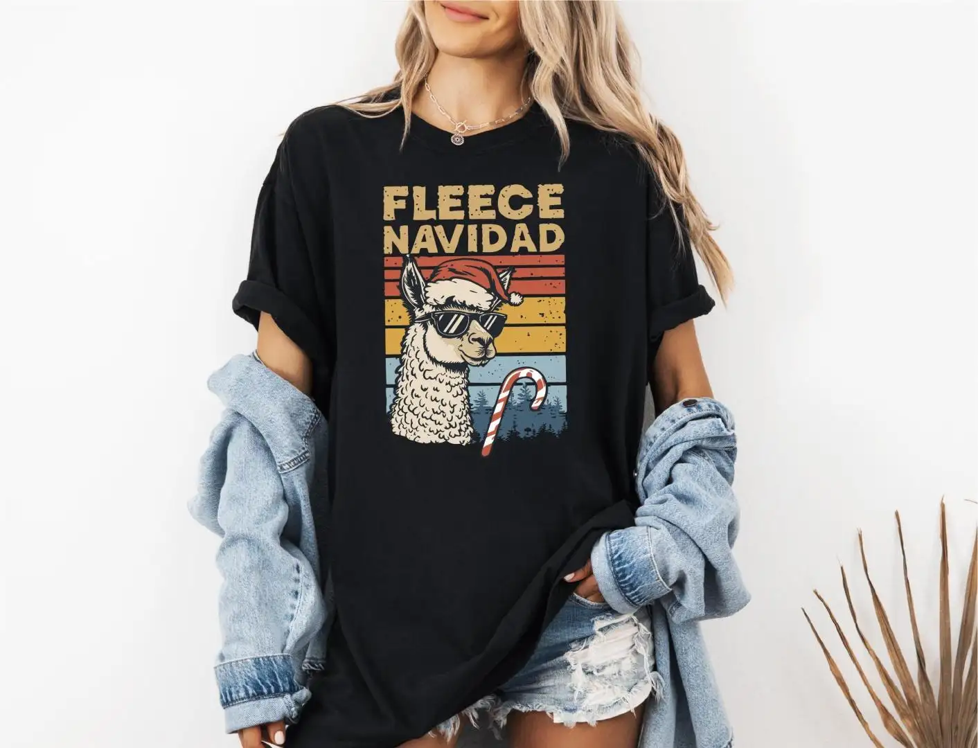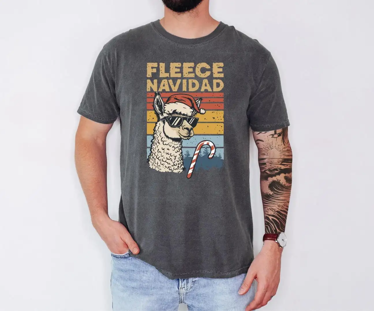 Comfort Colors® Fleece Navidad Shirt, Cozy Christmas T-Shirt, Mexican Christmas Tee, Funny Lama Christmas Tee, Feliz Navidad Shirt