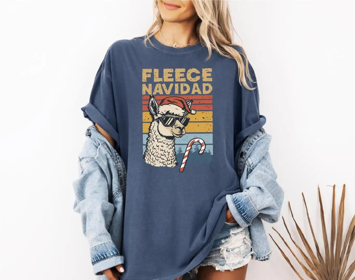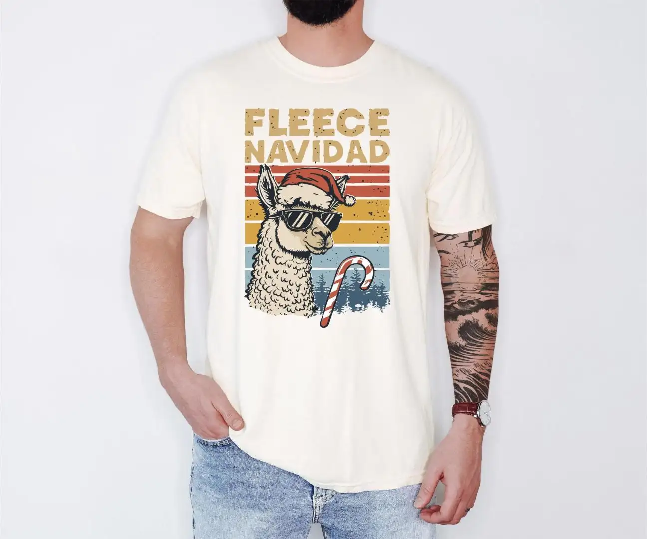 Review Comfort Colors® Fleece Navidad Shirt, Cozy Christmas T-Shirt, Mexican Christmas Tee, Funny Lama Christmas Tee, Feliz Navidad Shirt