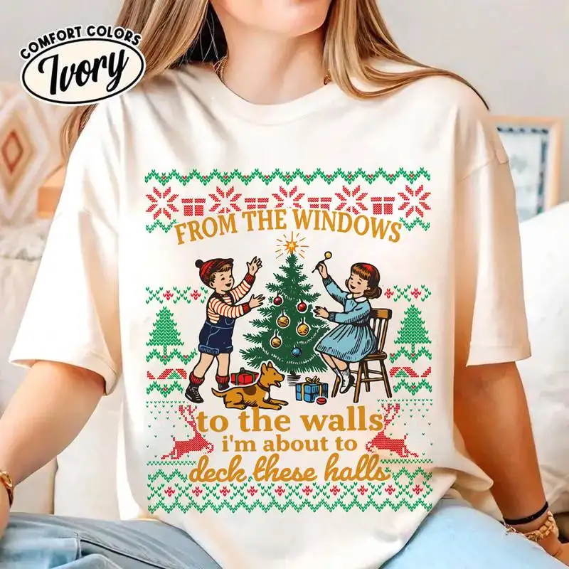 Comfort Colors From The Windows to the Walls I'm About to Deck These Halls Shirt, Xmas Gift, Funny Christmas Shirt, Christmas Family Shirt