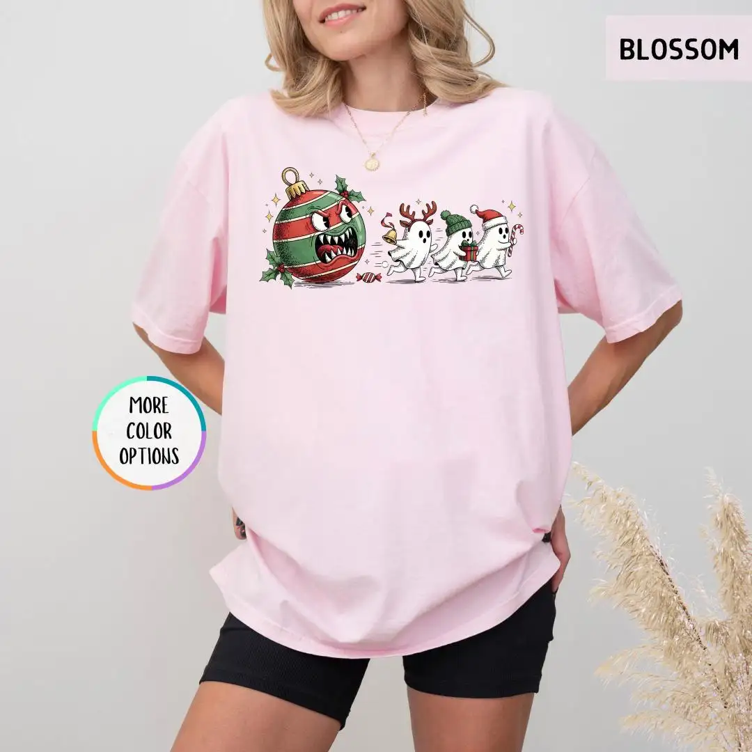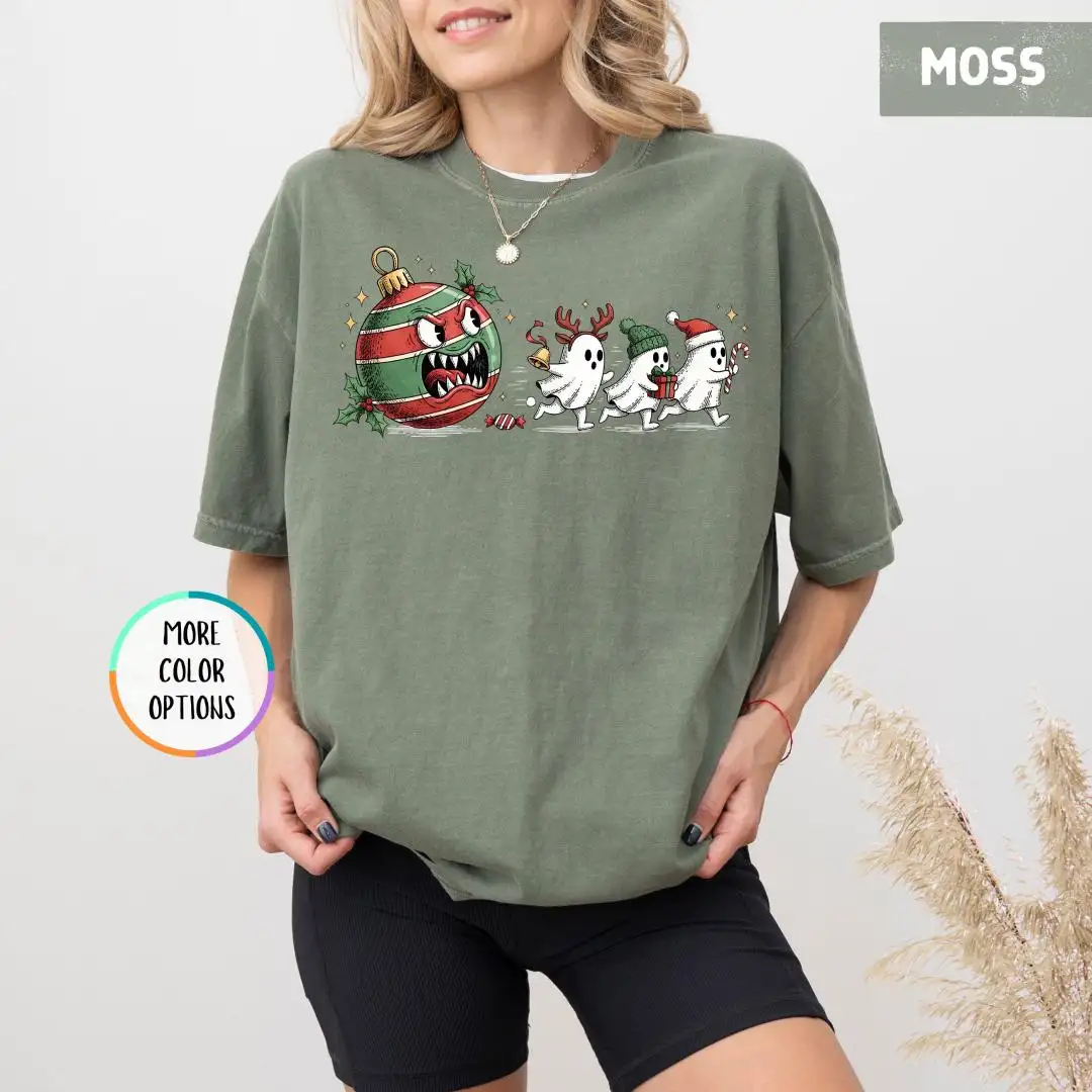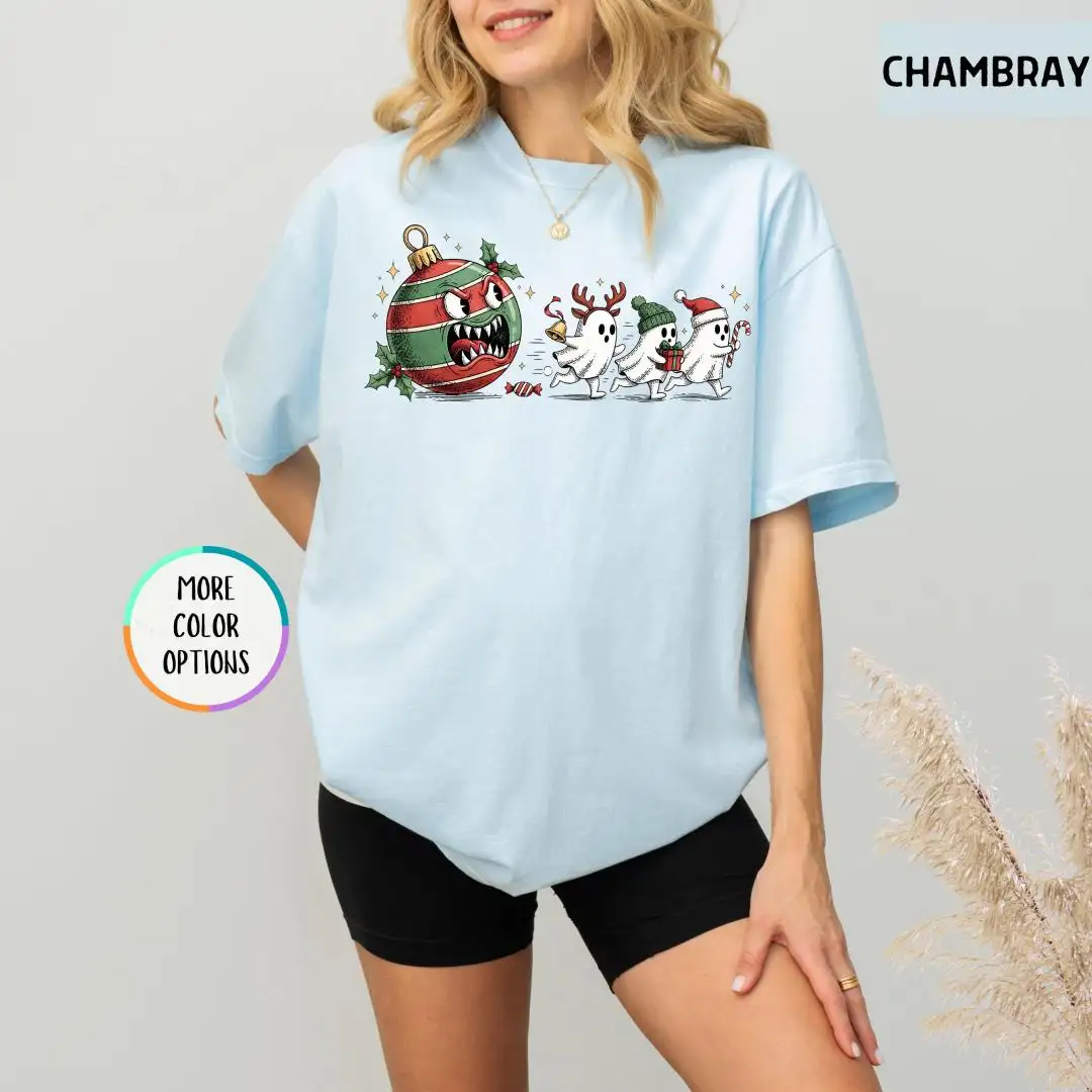 Comfort Colors Funny Christmas Ghost Shirt, Spooky Cute Xmas Shirt, Spooky Holiday Shirt, Festive Ornament Monster T-Shirt, Ghost Chase Tee