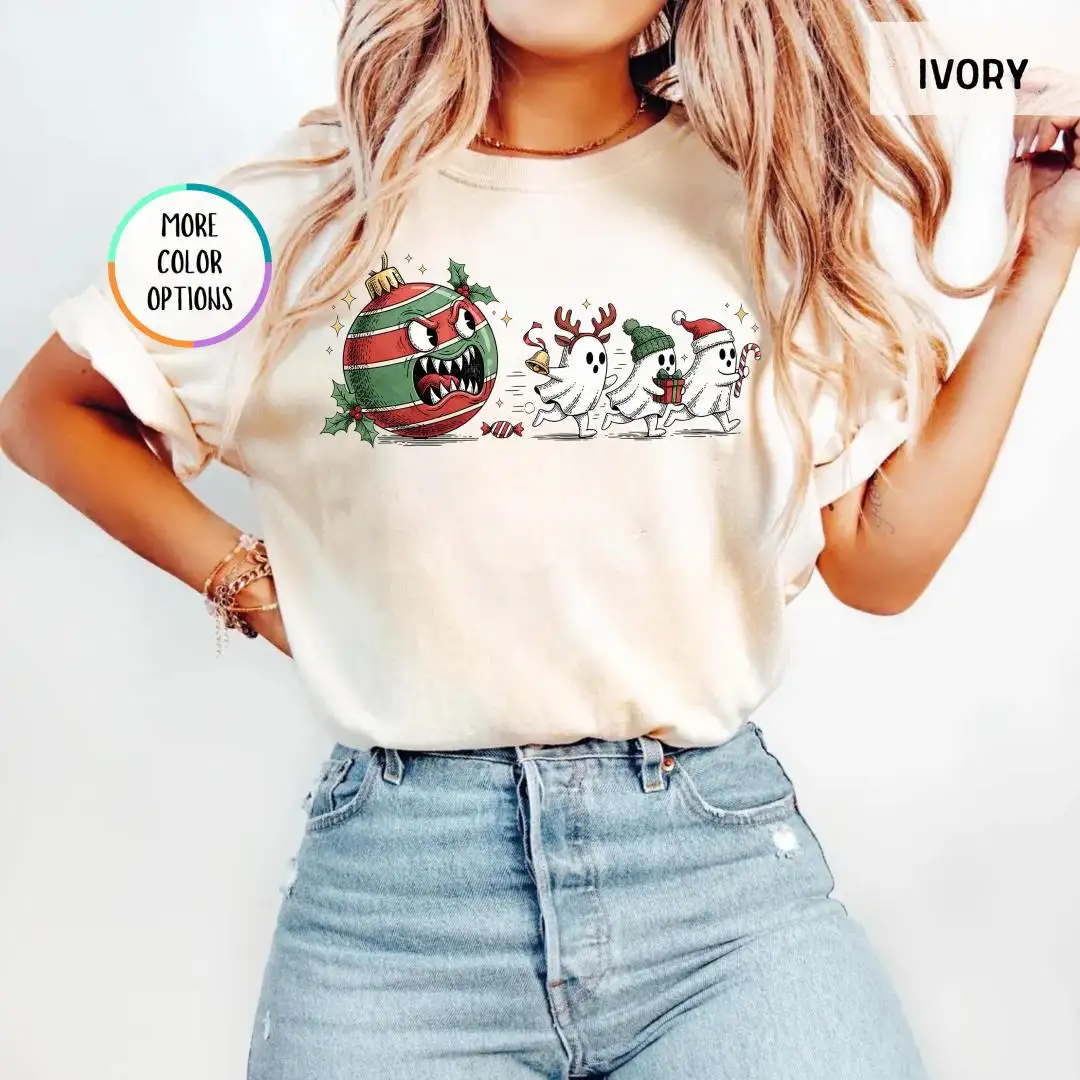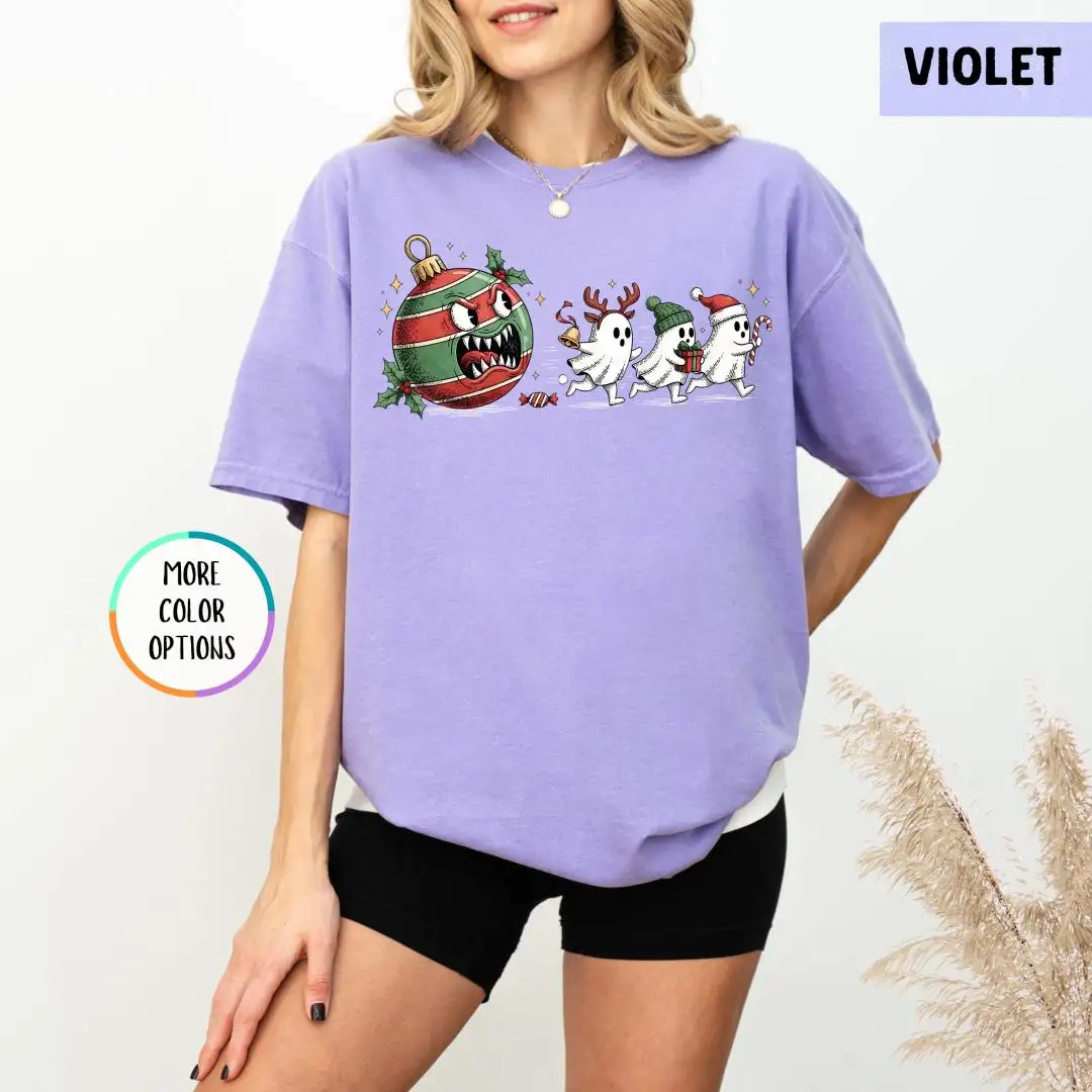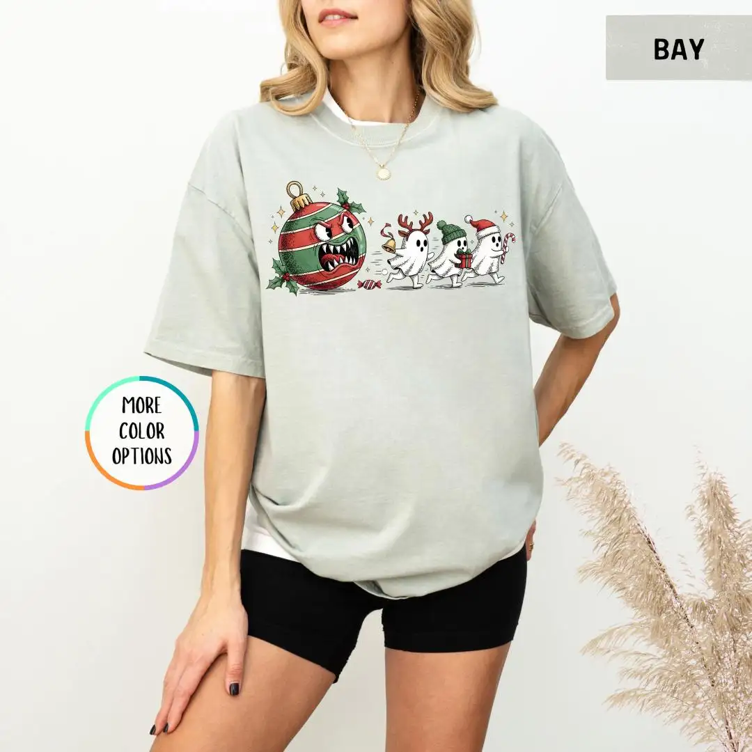 Comfort Colors Funny Christmas Ghost Shirt, Spooky Cute Xmas Shirt, Spooky Holiday Shirt, Festive Ornament Monster T-Shirt, Ghost Chase Tee