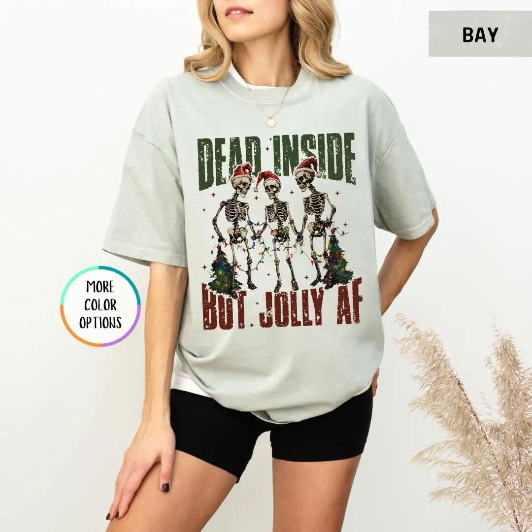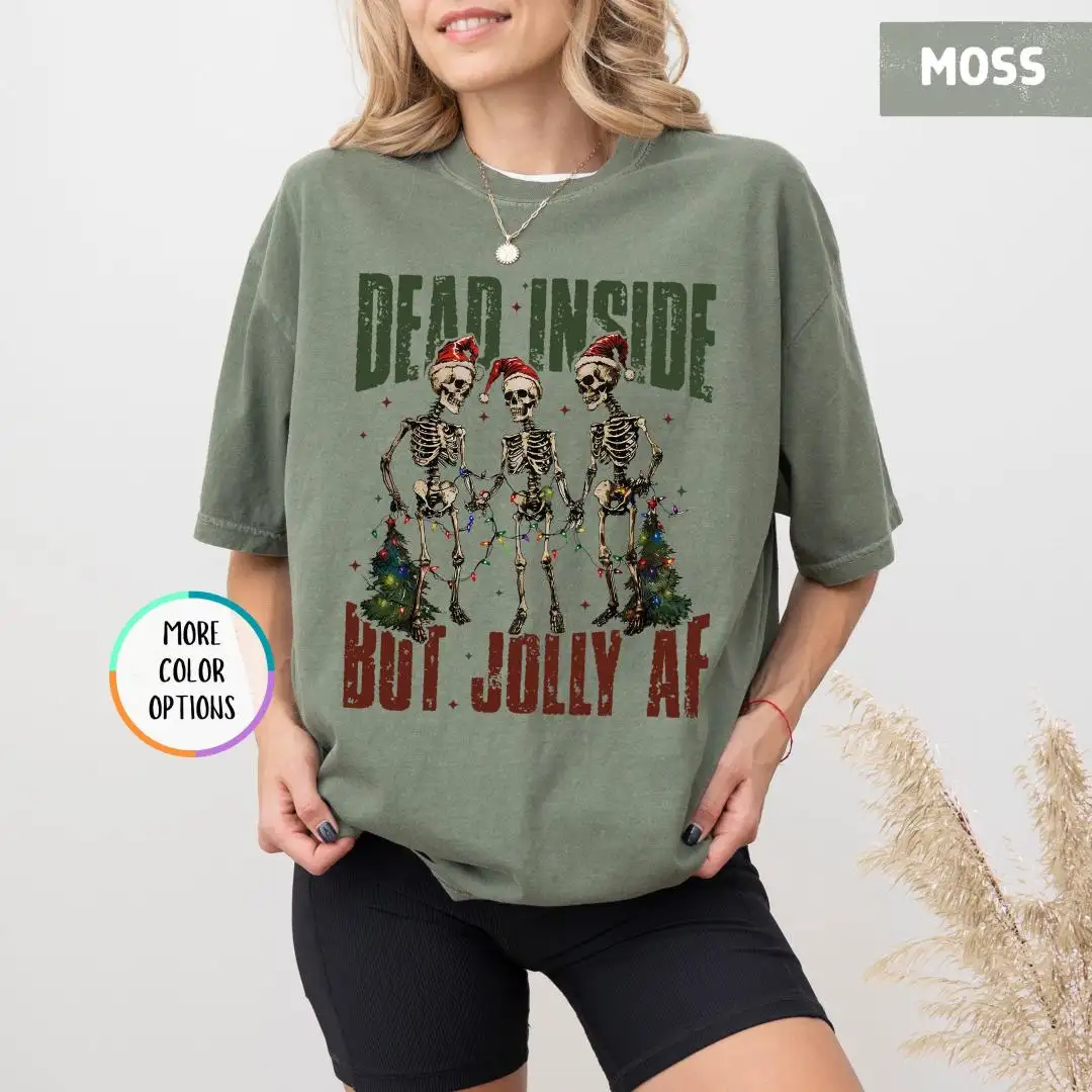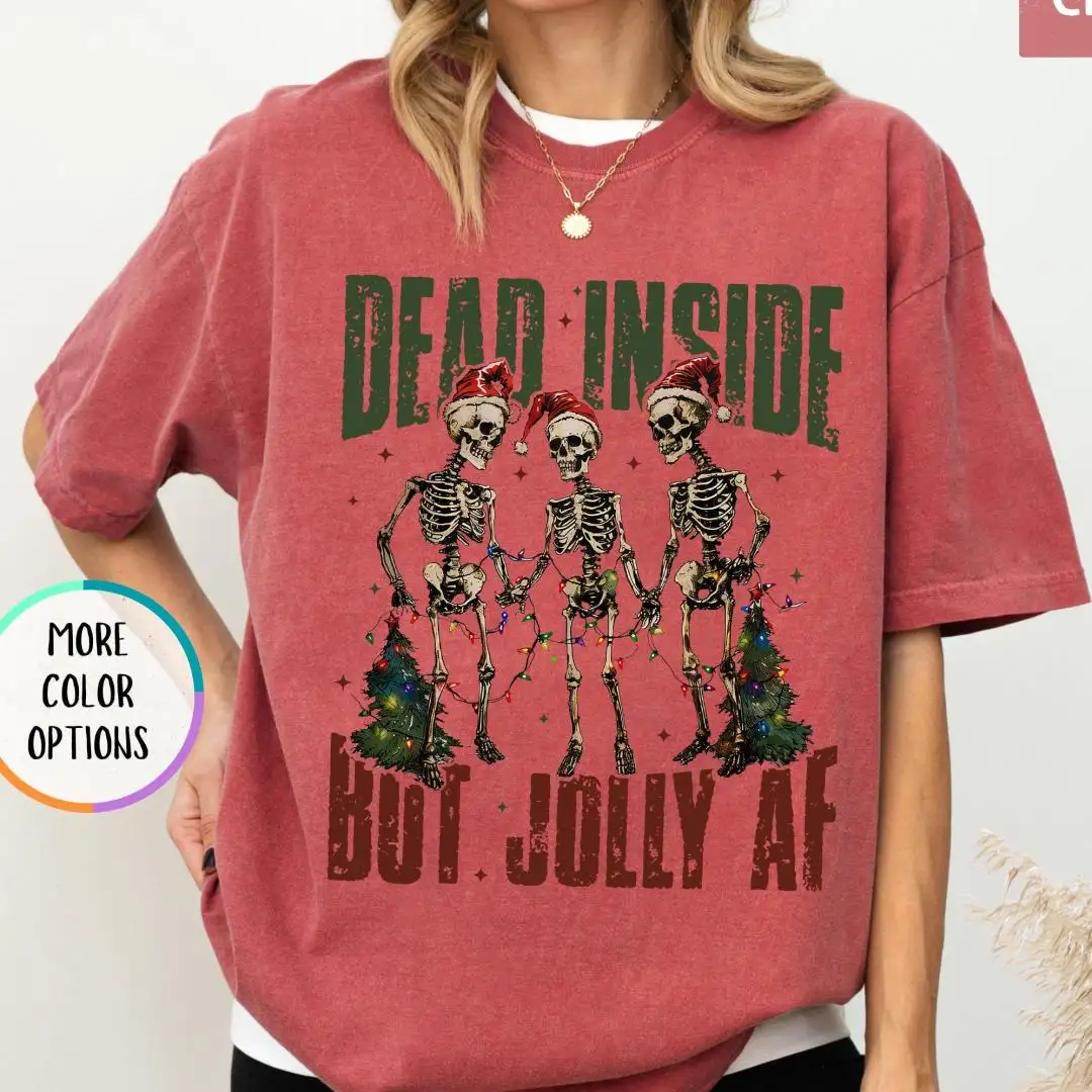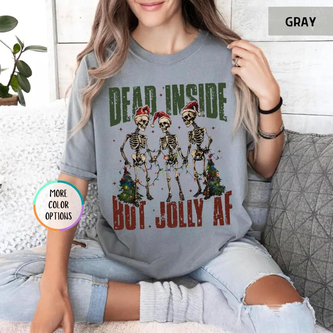 Comfort Colors Funny Christmas Shirt, Spooky Cute Xmas Gift, Dark Humor Holiday Top, Dead Inside Jolly AF Skeleton Tee, Grunge Retro Vibe