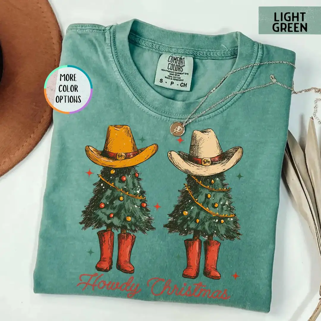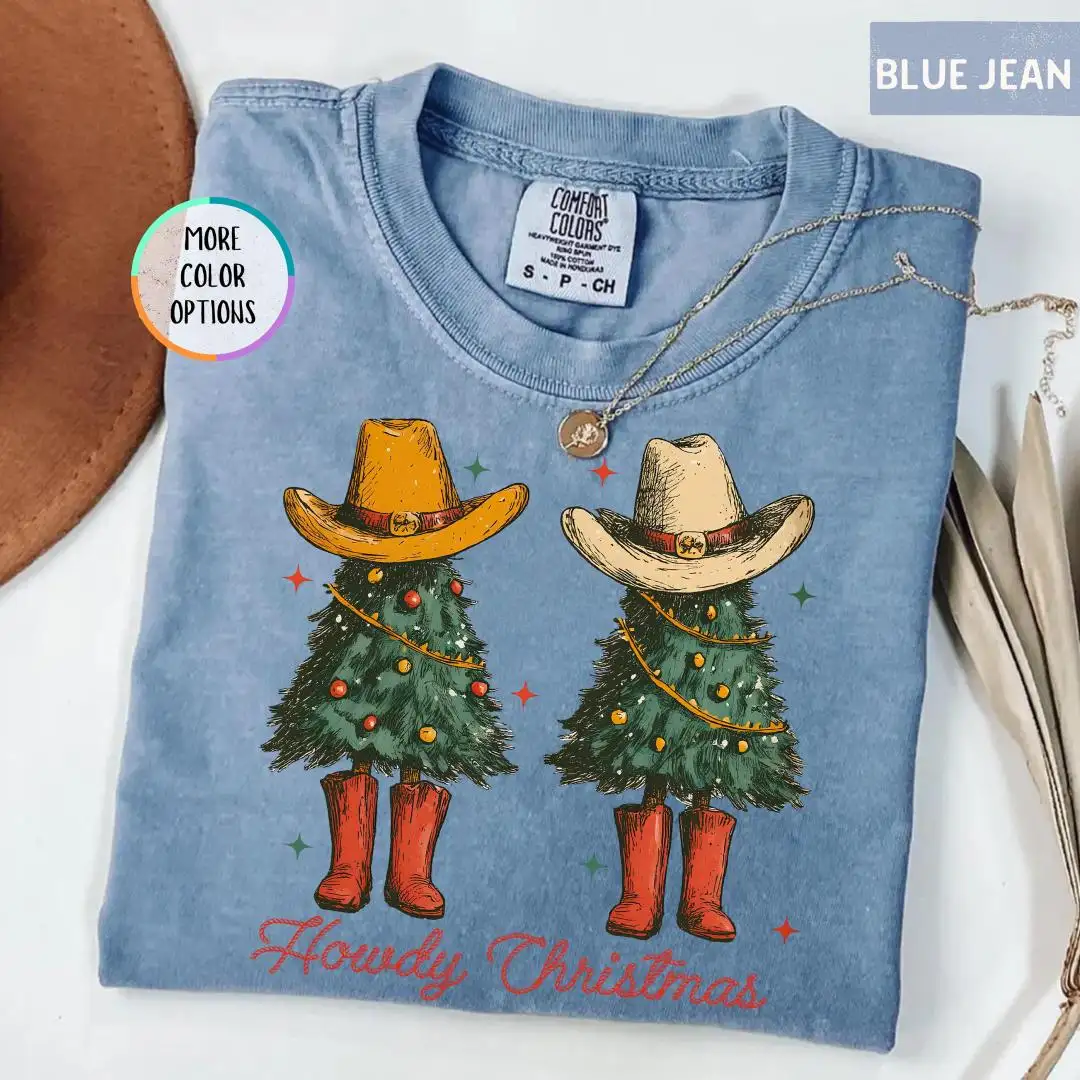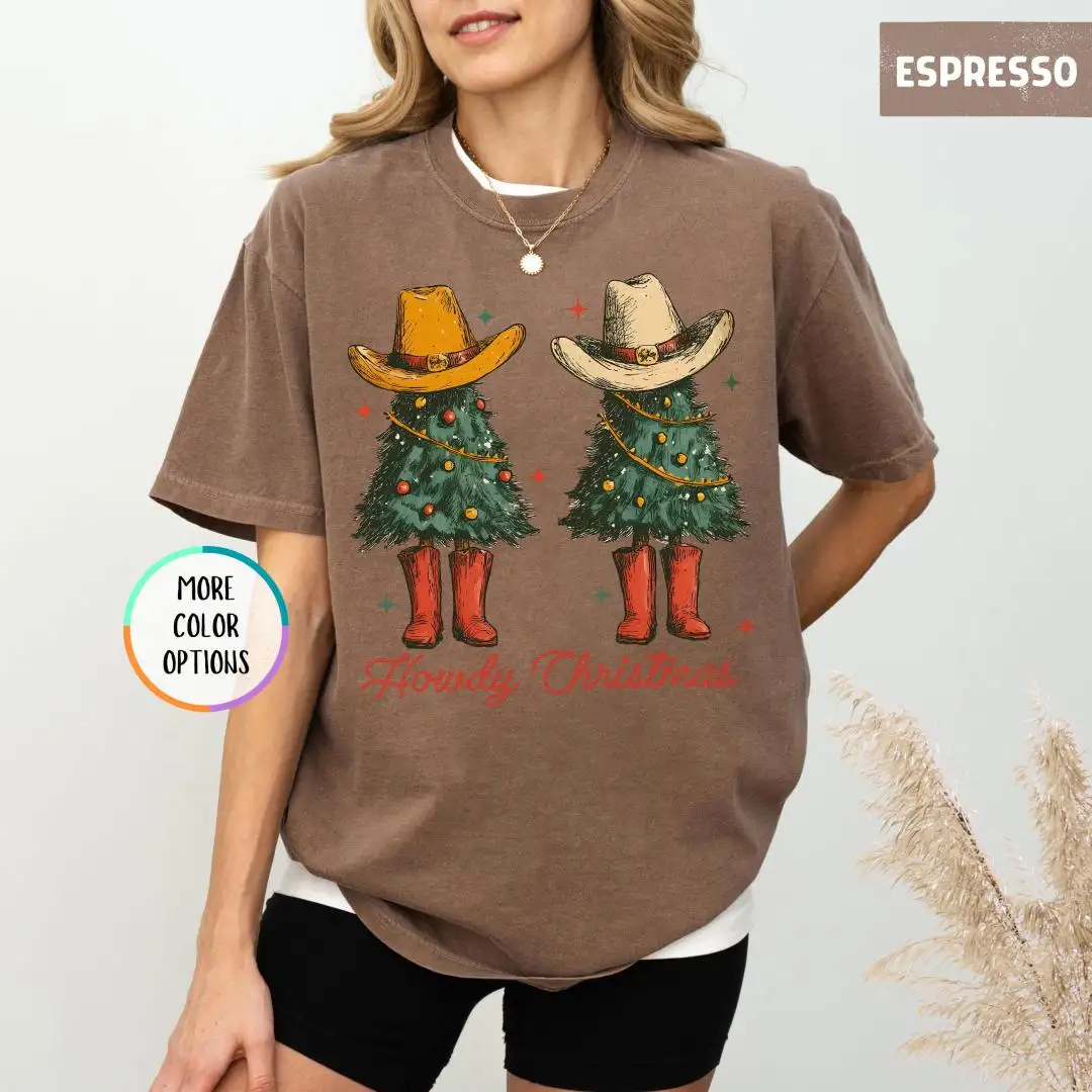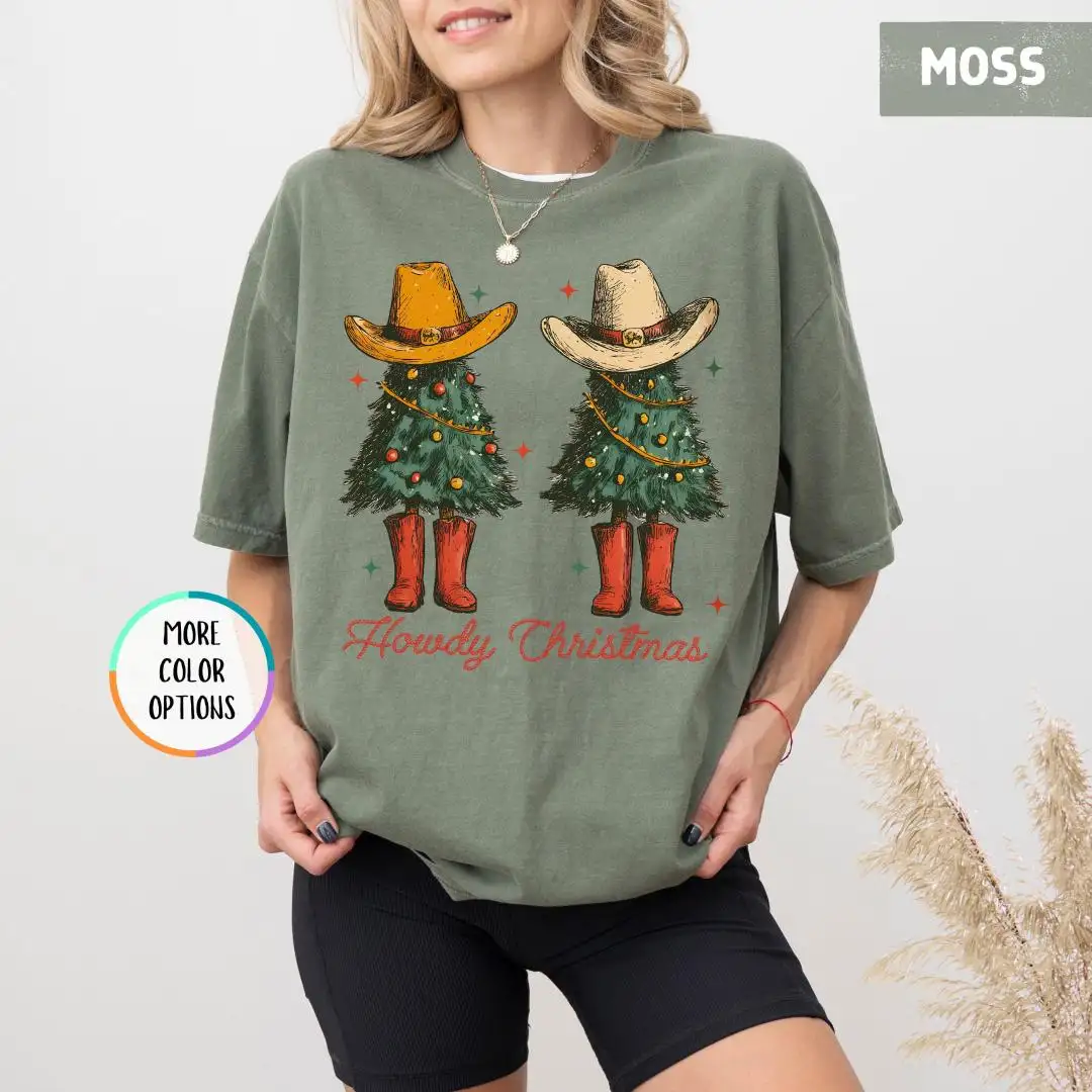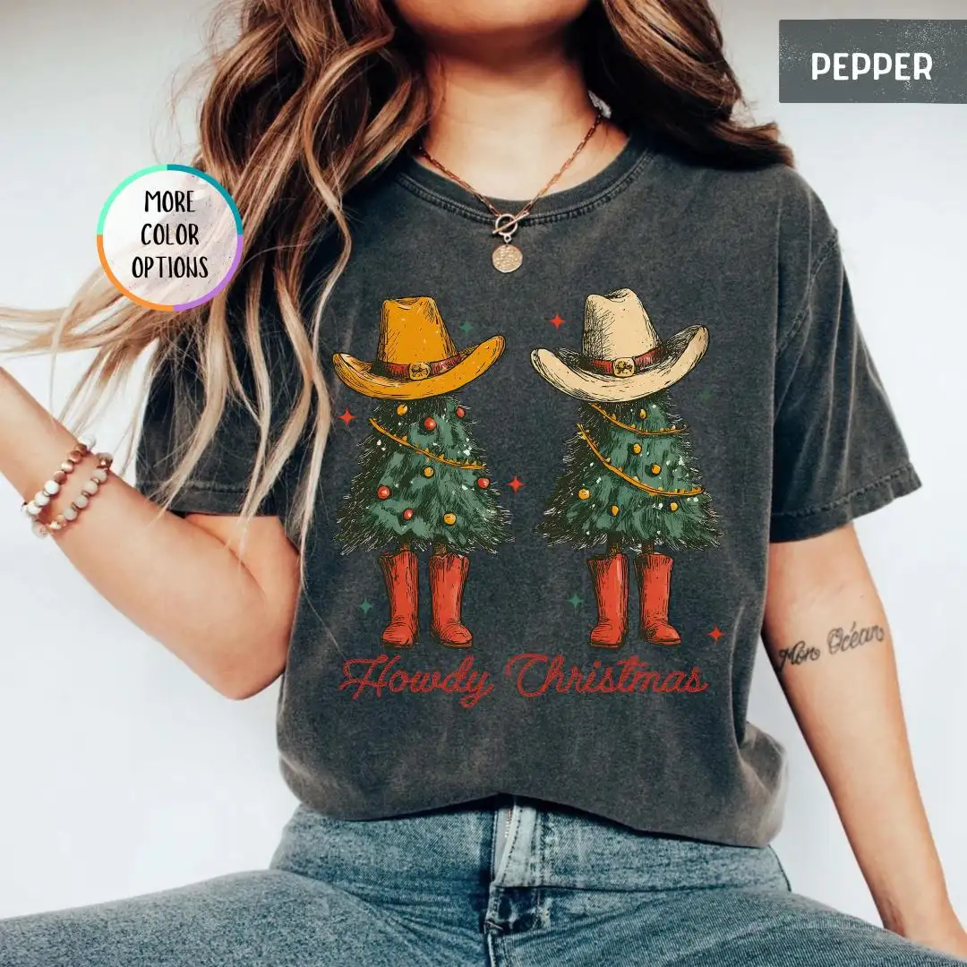 Review Comfort Colors Howdy Christmas Shirt, Western Christmas Shirt, Rustic Xmas Gift for Her, Country Cowgirl Holiday Tee with Tree and Hat