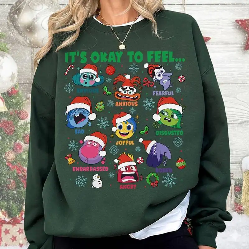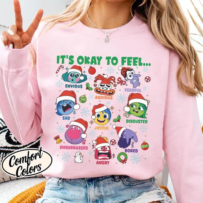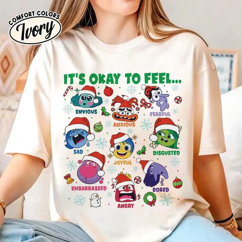 Comfort Colors Inside Out Christmas Shirt, It's Okay To Feel All The Feels Tee, Inside Out Movie Christmas Shirt, Disneyland Trip Tee 02