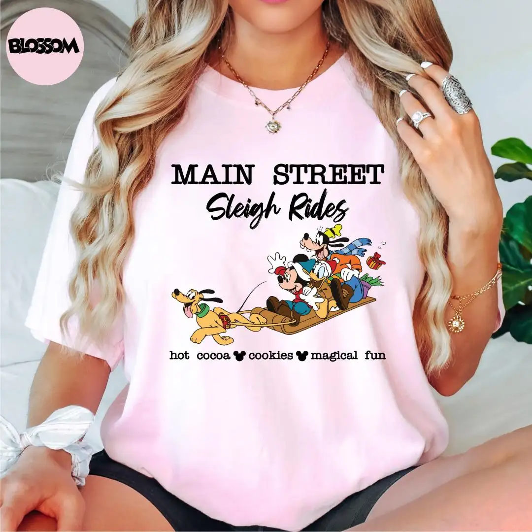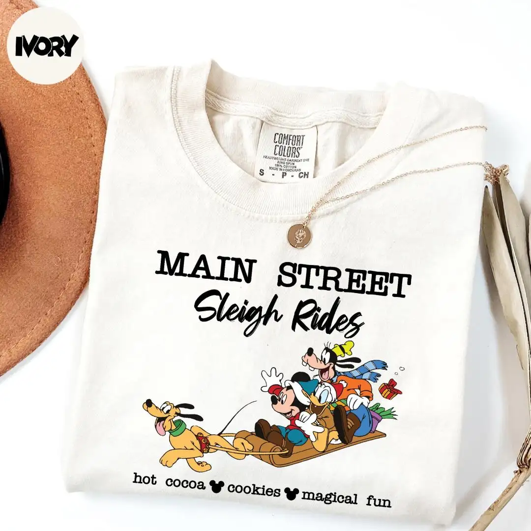 Comfort Colors® Main Street Sleigh Rides Shirt, Disney Fun Winter Shirt, Mickey and Friends Christmas Shirt, Disney Christmas Vibes Shirt