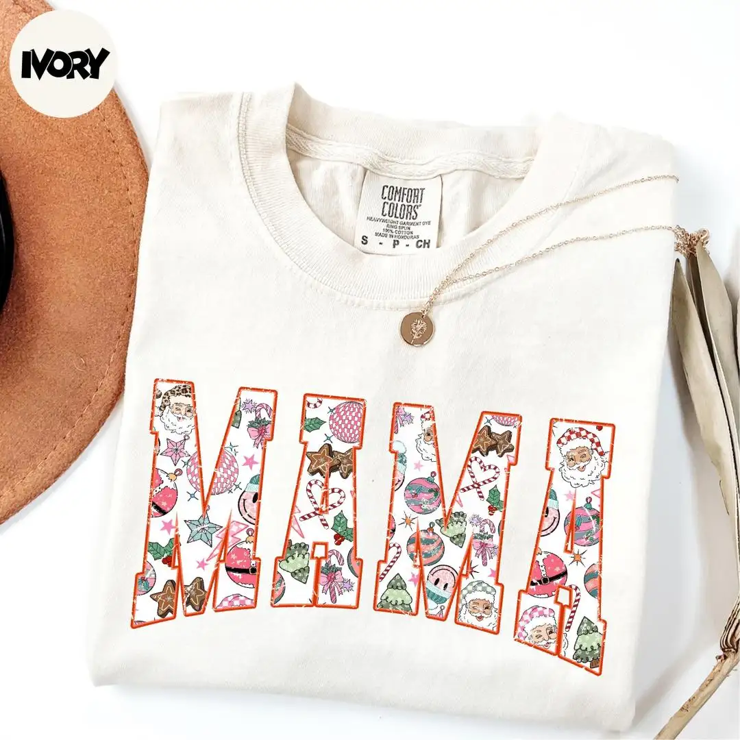Review Comfort Colors® Mama Christmas Shirt, Merry Christmas Shirt, Xmas Mama Shirt, Christmas Mom Shirt, Christmas Gift for Mom, Retro Mama Shirt