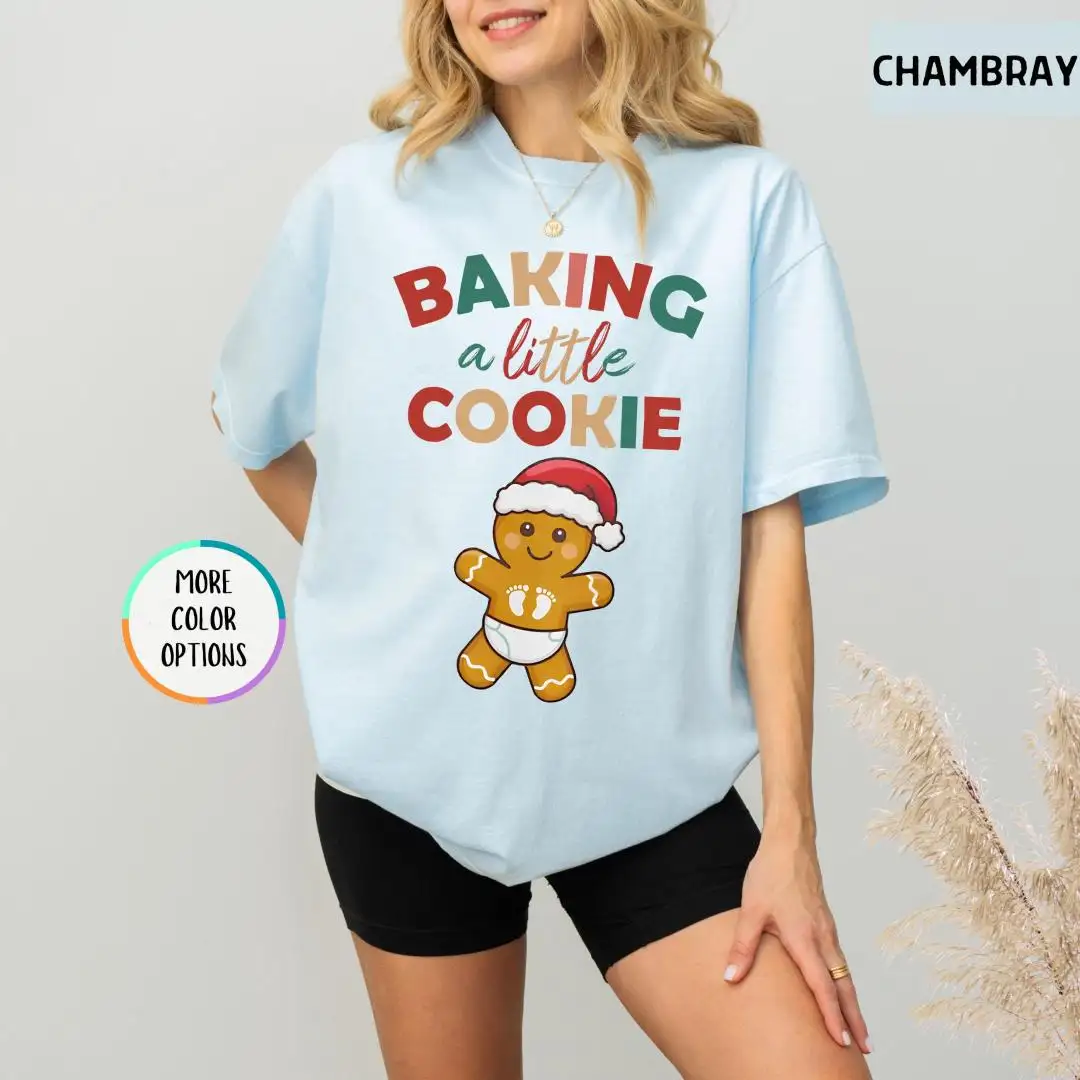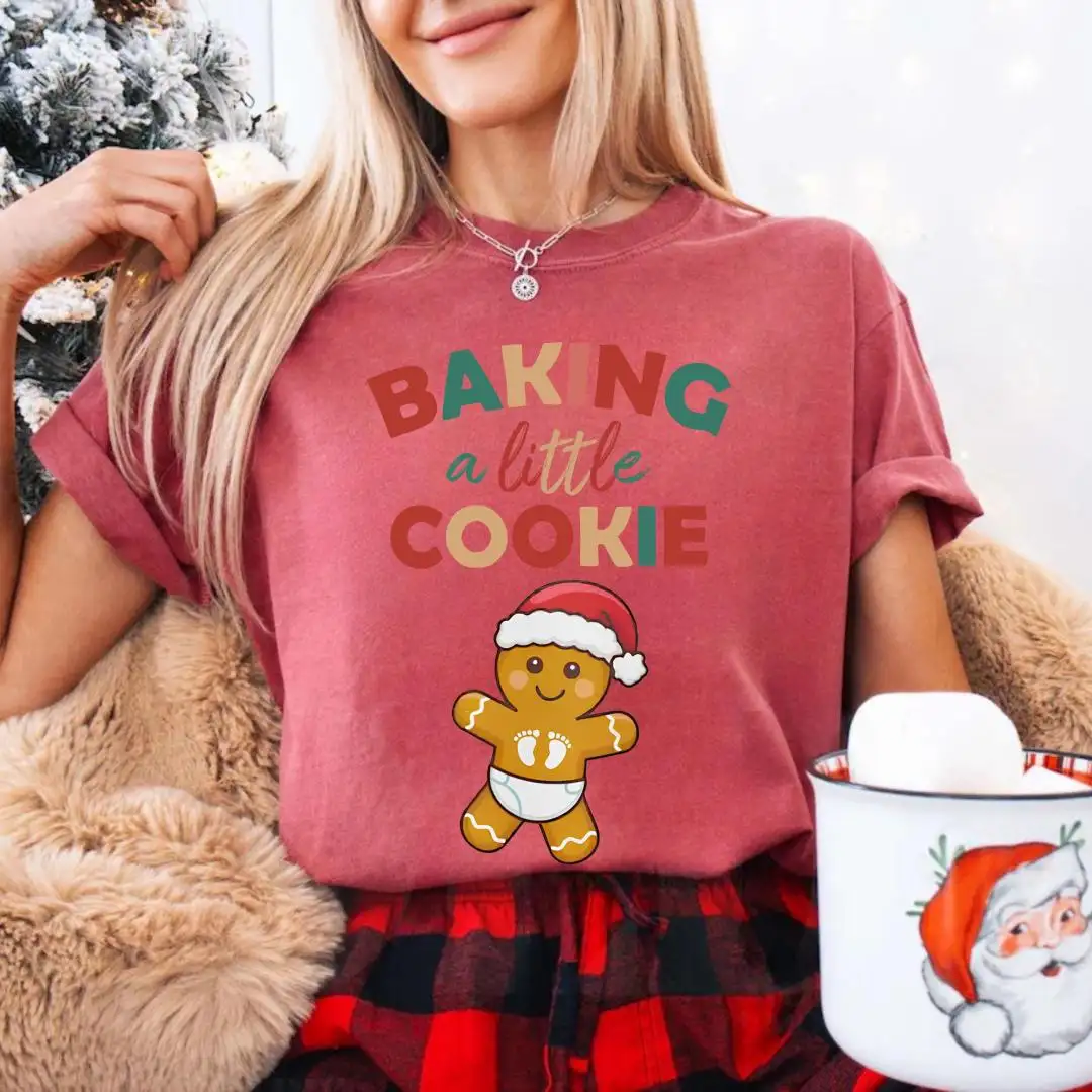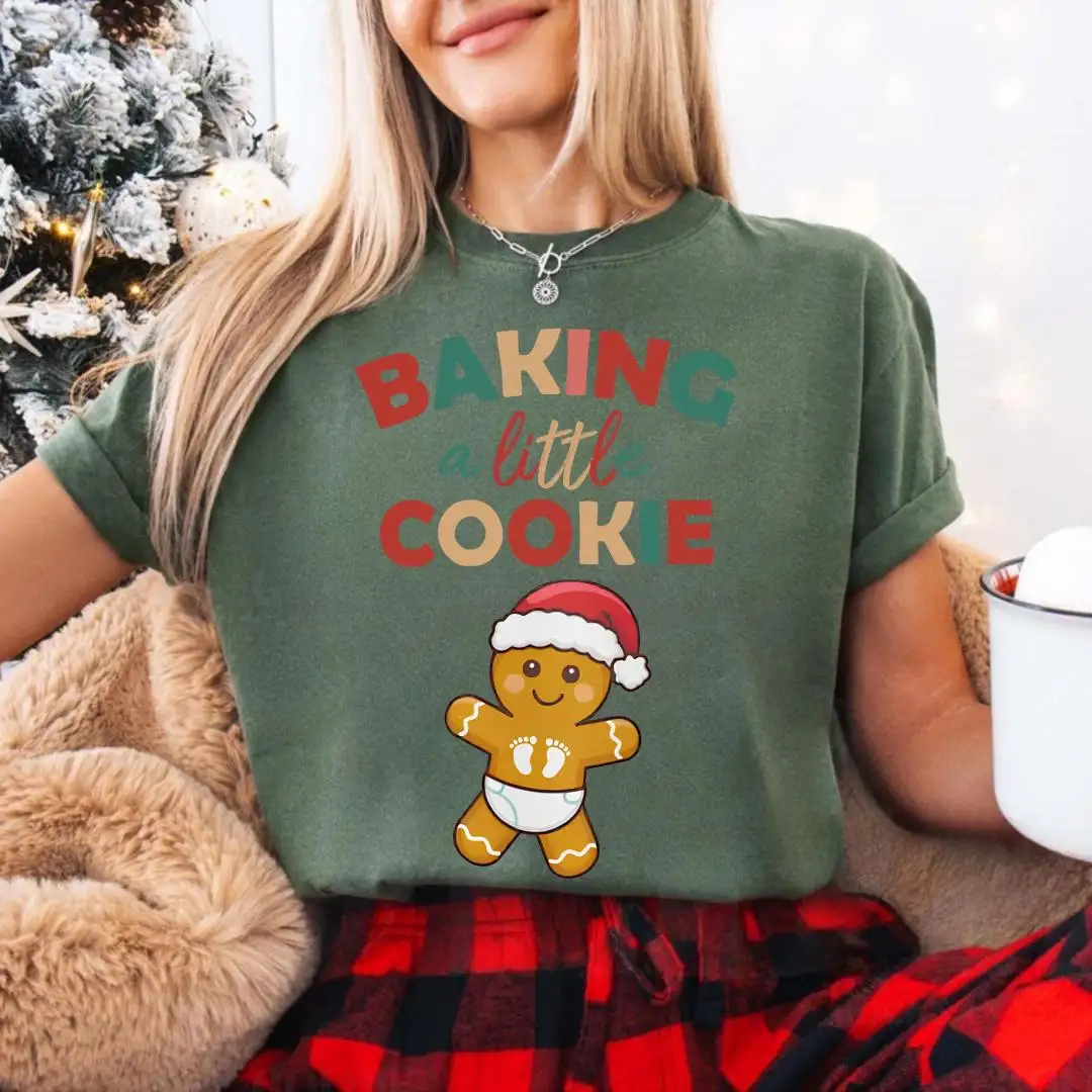 Comfort Colors® Maternity Christmas Shirt, Baby Gingerbread, Baby Reveal Gift, Xmas Pregnancy Announcement Tee, Baking A Little Cookie Tee
